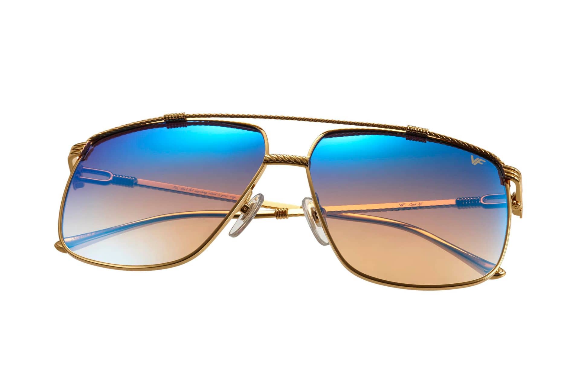 The very first collaboration between founder Corey Shapiro and his son Cash Shapiro. It has always been a dream of theirs to design a frame together, and now it's finally here. For the first time ever, Vintage Frames has a guest designer. The young boy of 9 years old helped draw the lines, create lenses, and put the final design together. Unique to this project, Cash chose to go with a full 24KT gold frame including a gold temple tip. As always, we added a special little touch on the inside. The frame comes both in a regular and XL version.