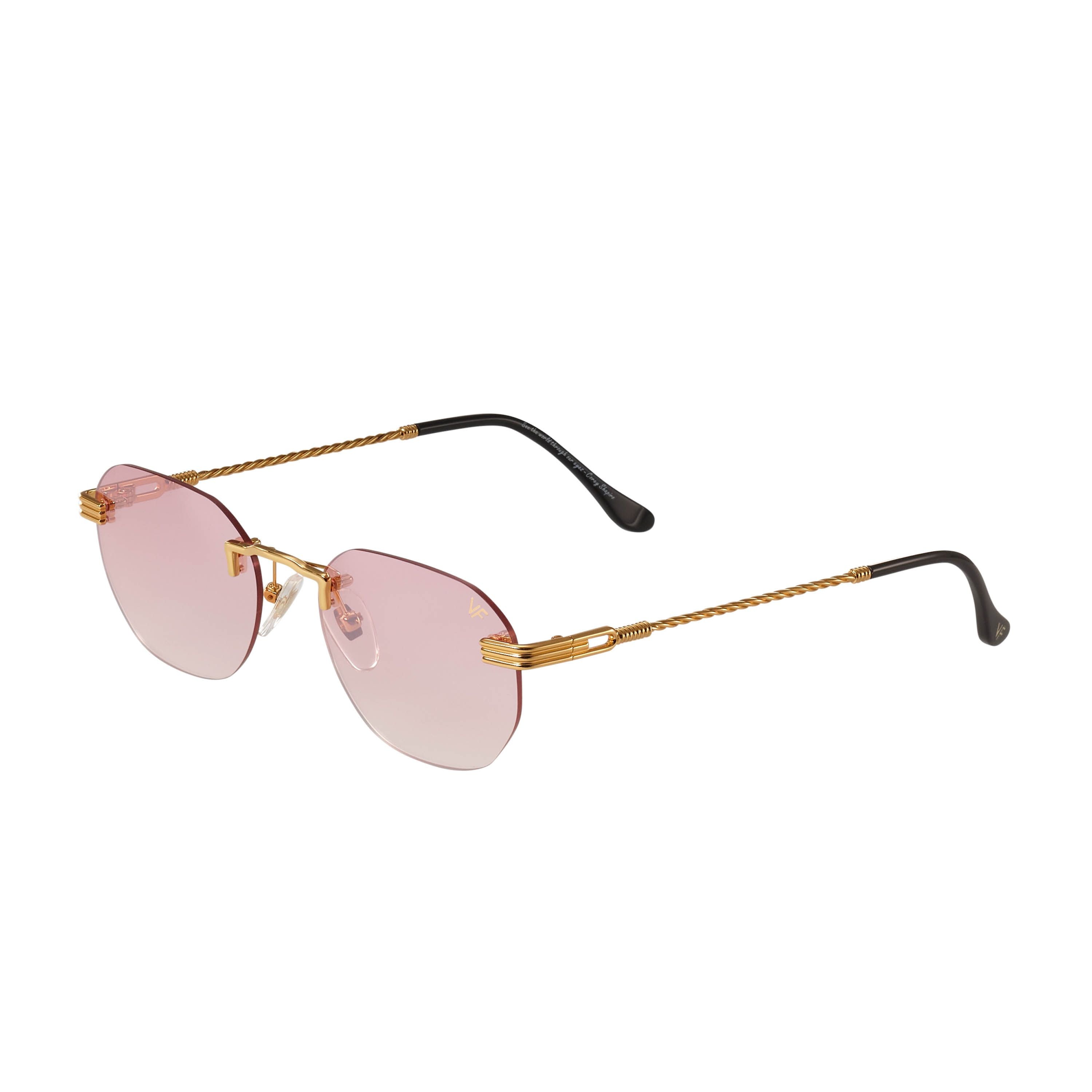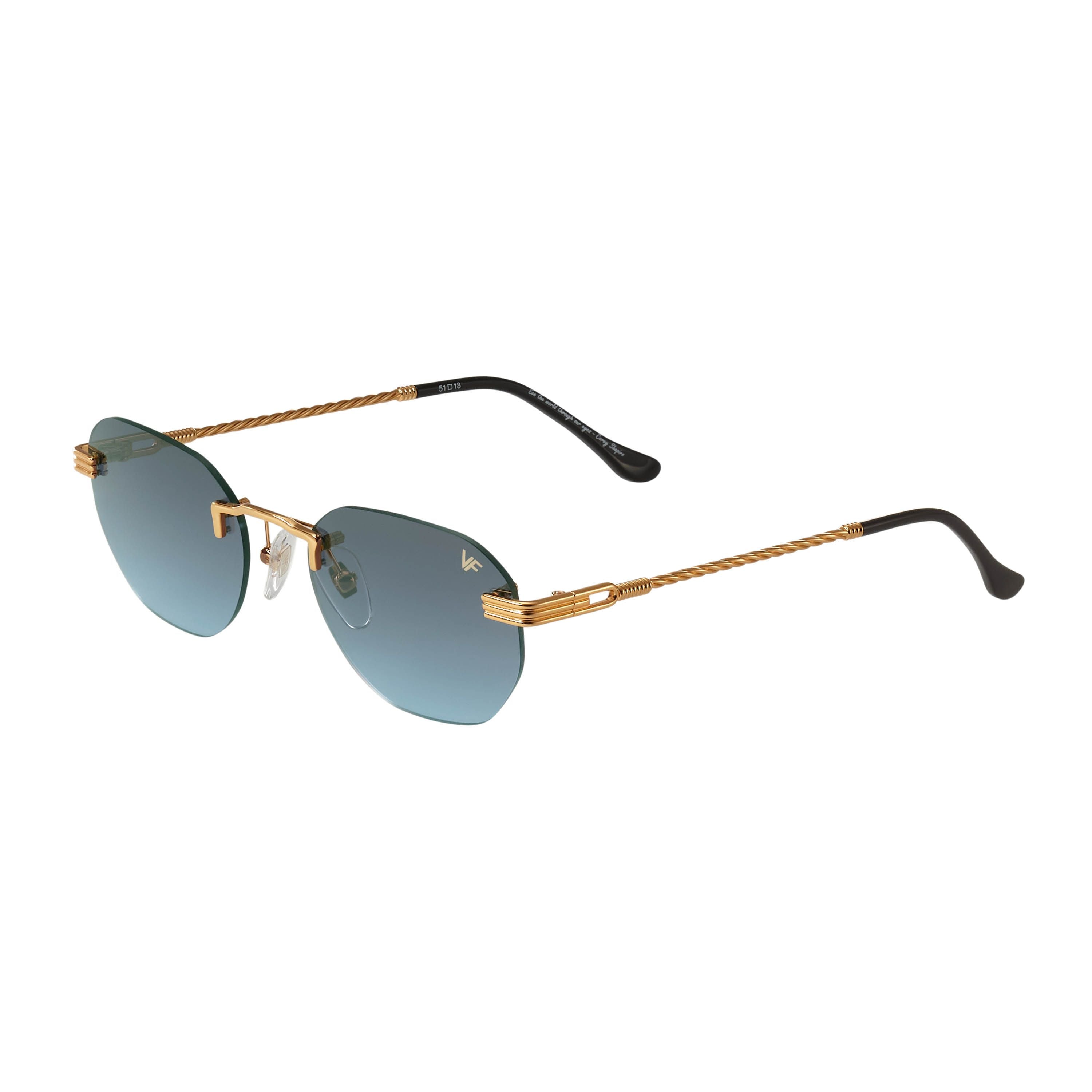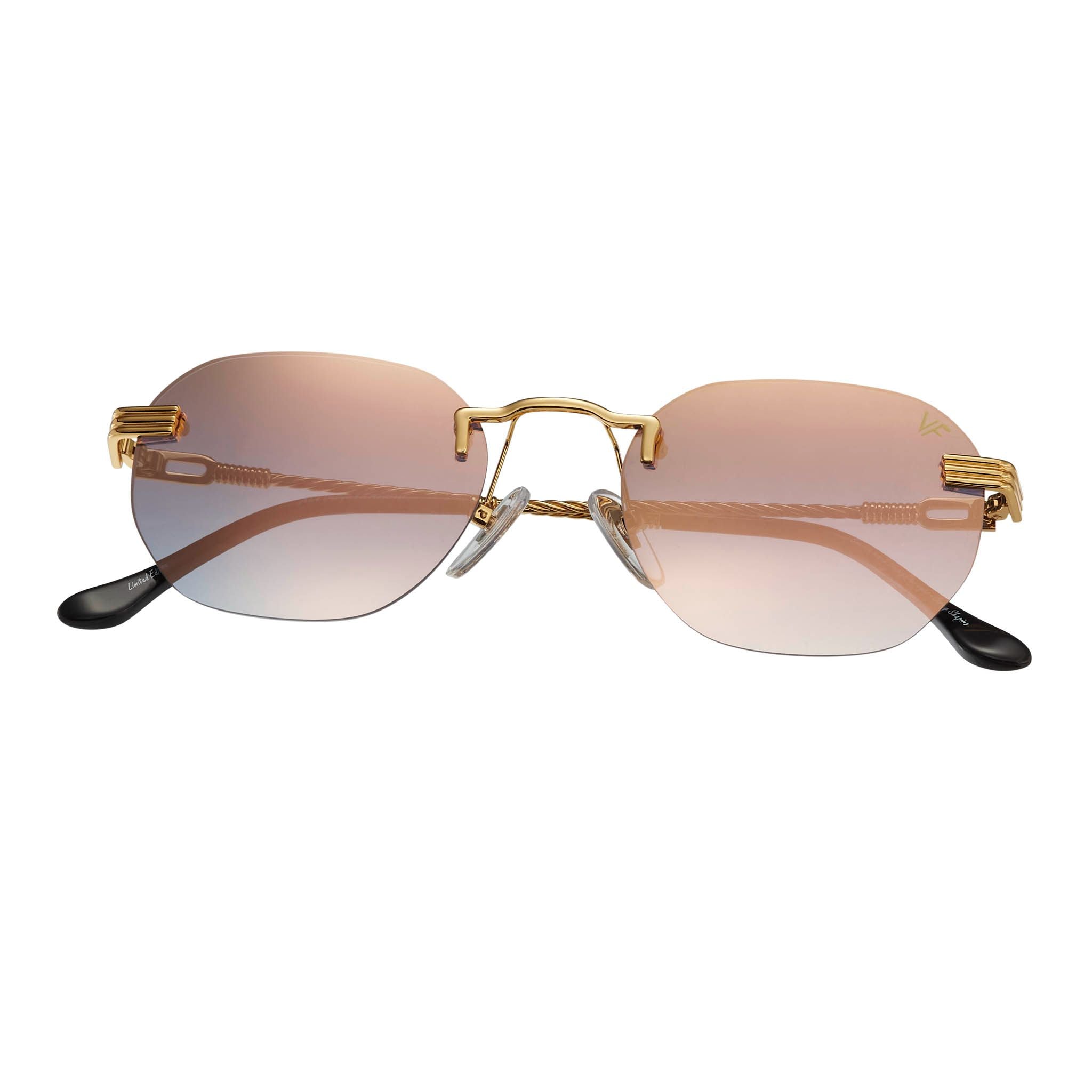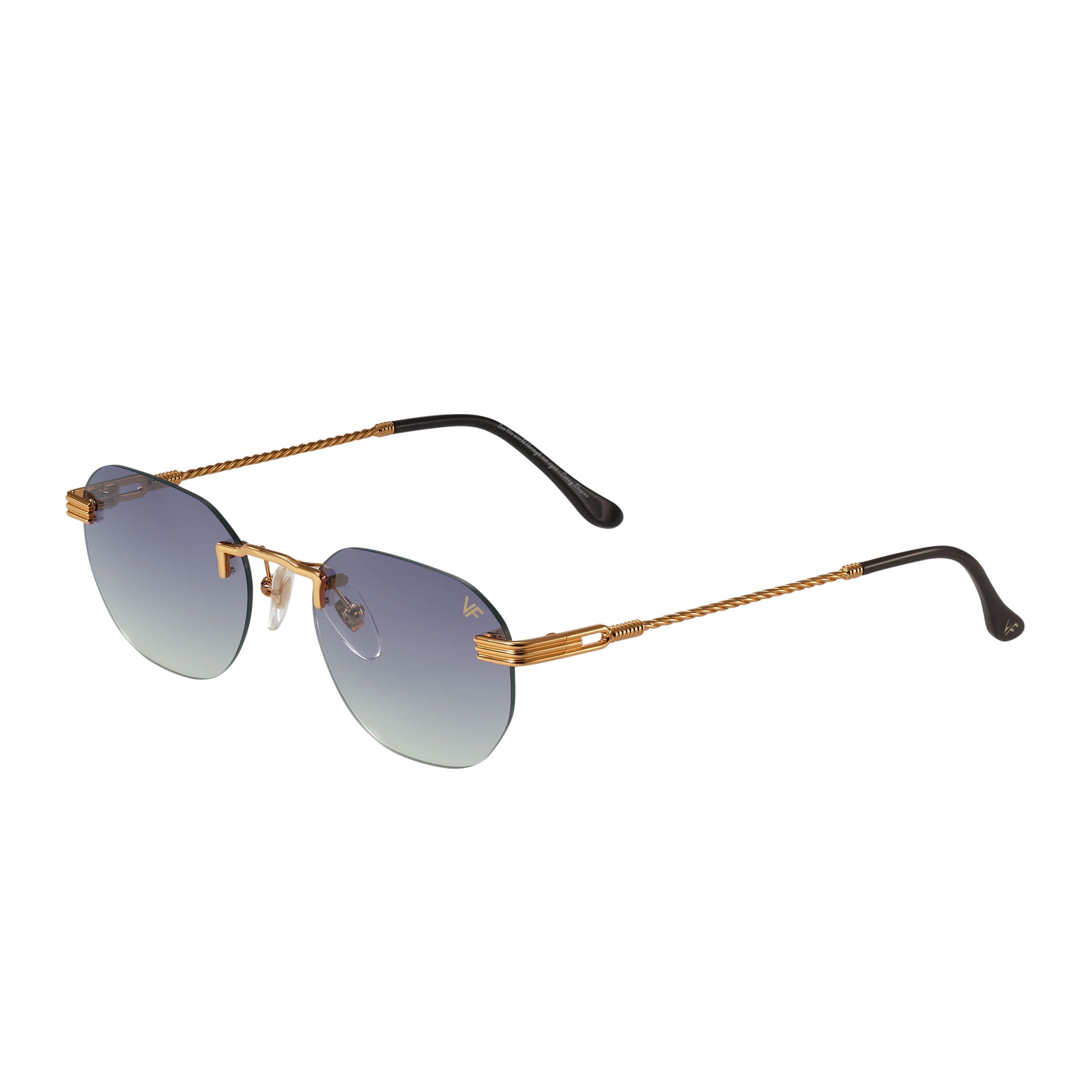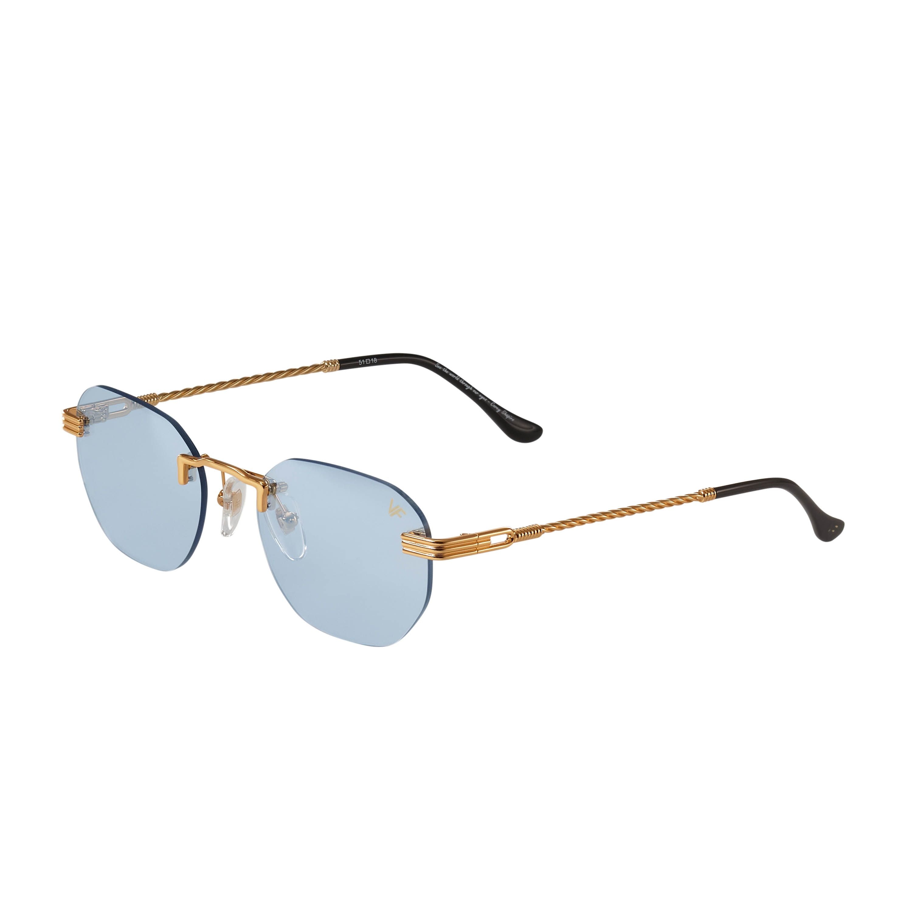 The fastest selling frame of all time is now available in a rimless style. The Detroit Player drill mount has 24kt gold nose bridge and our classic rope detailed arms. Available in an array of our iconic sun lenses and is also available for prescription.