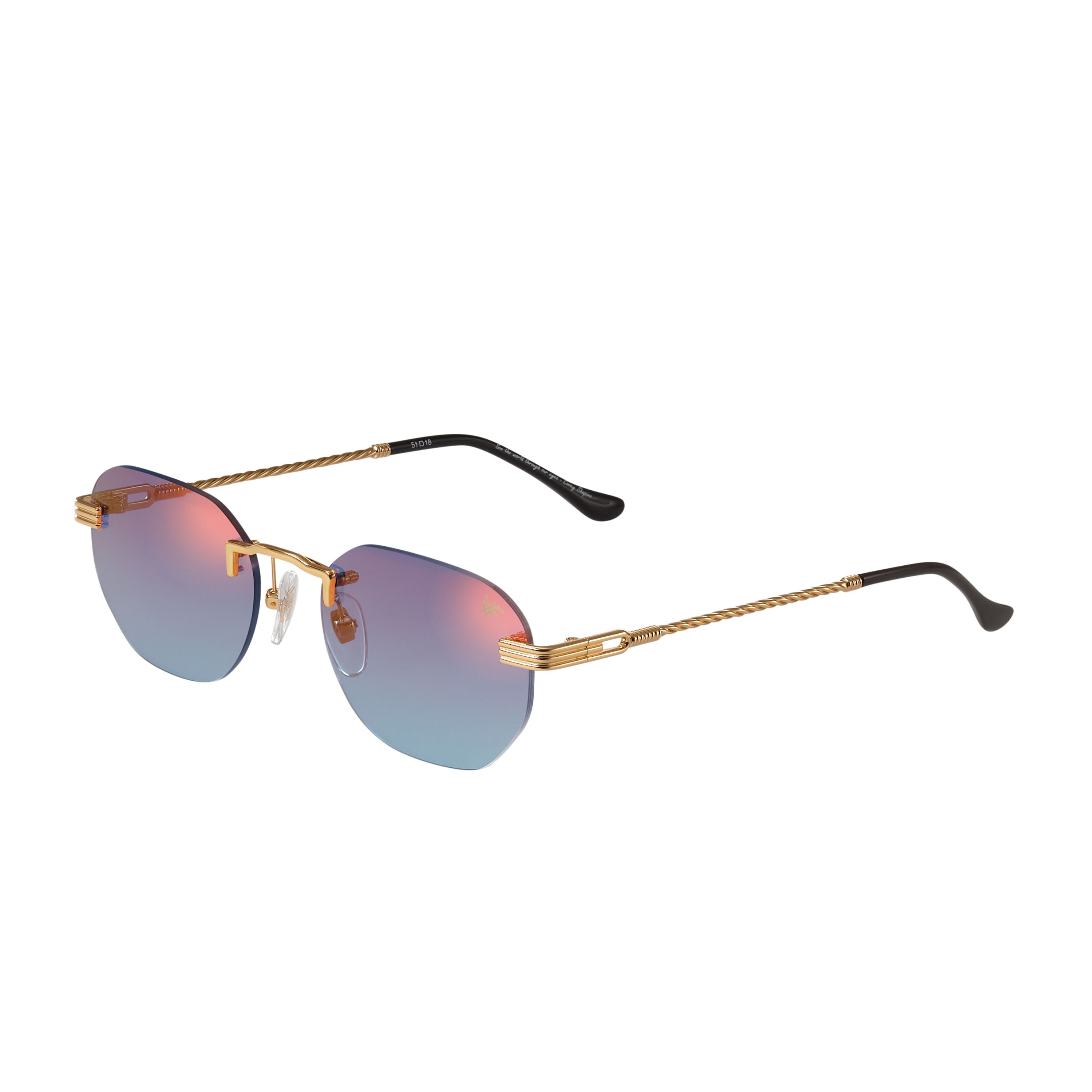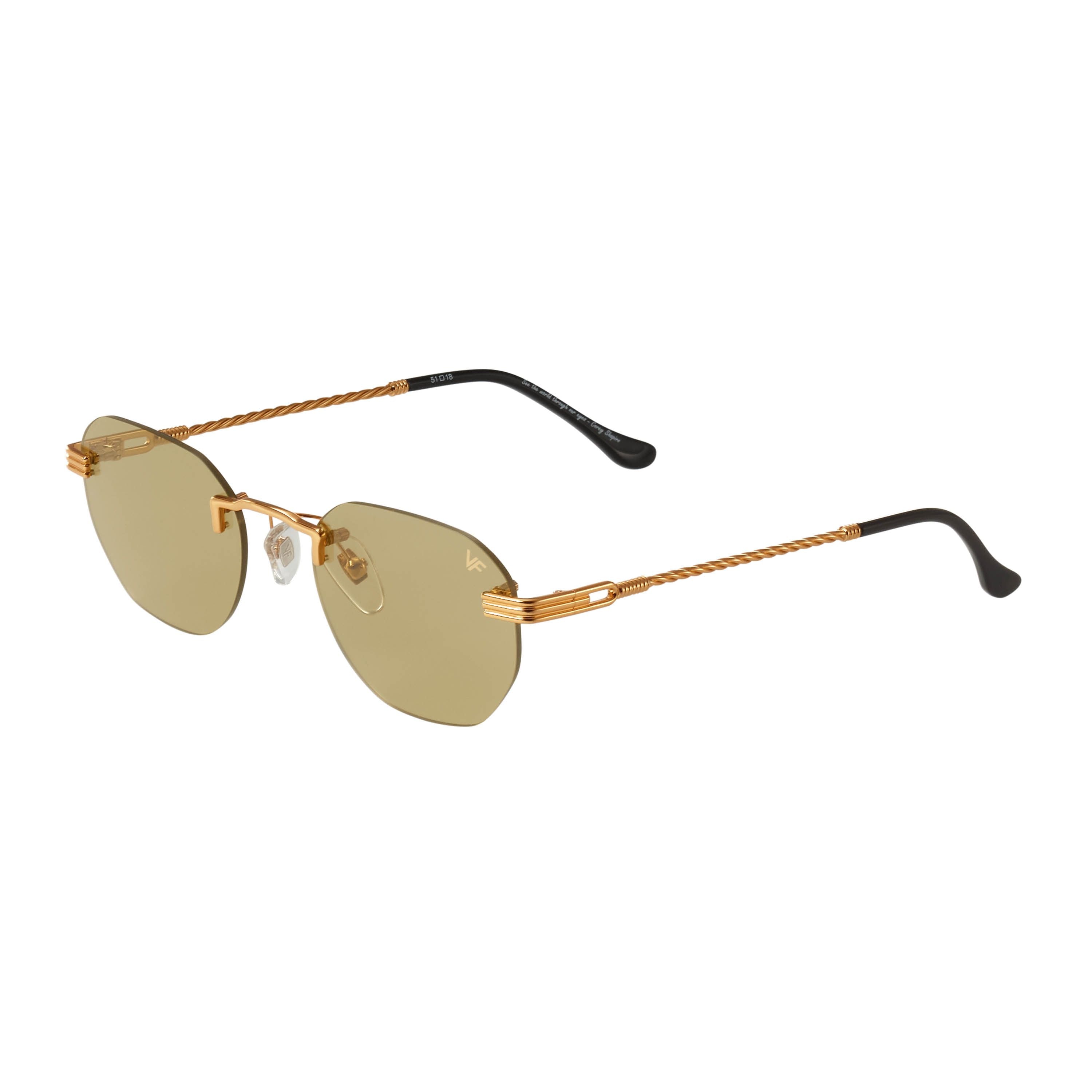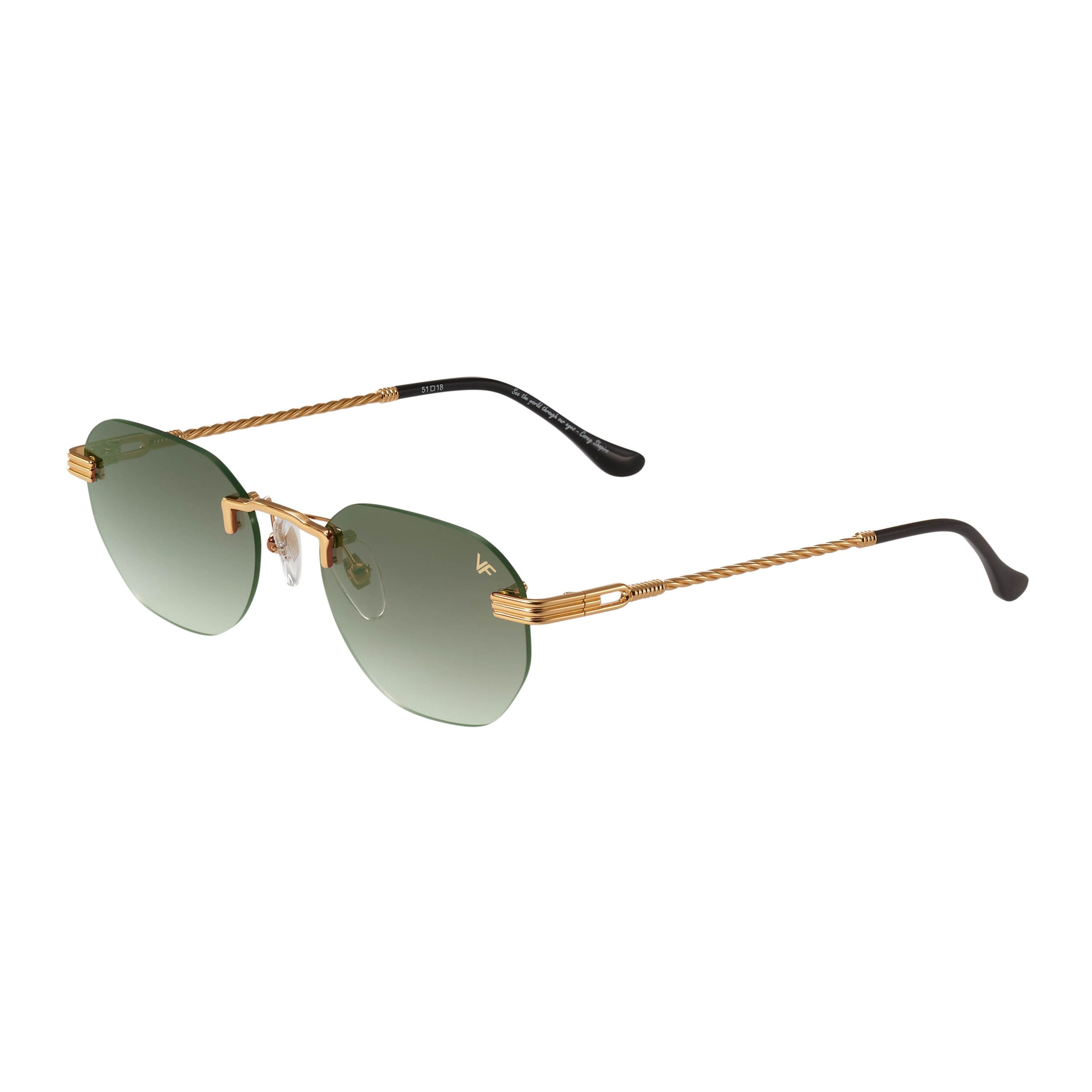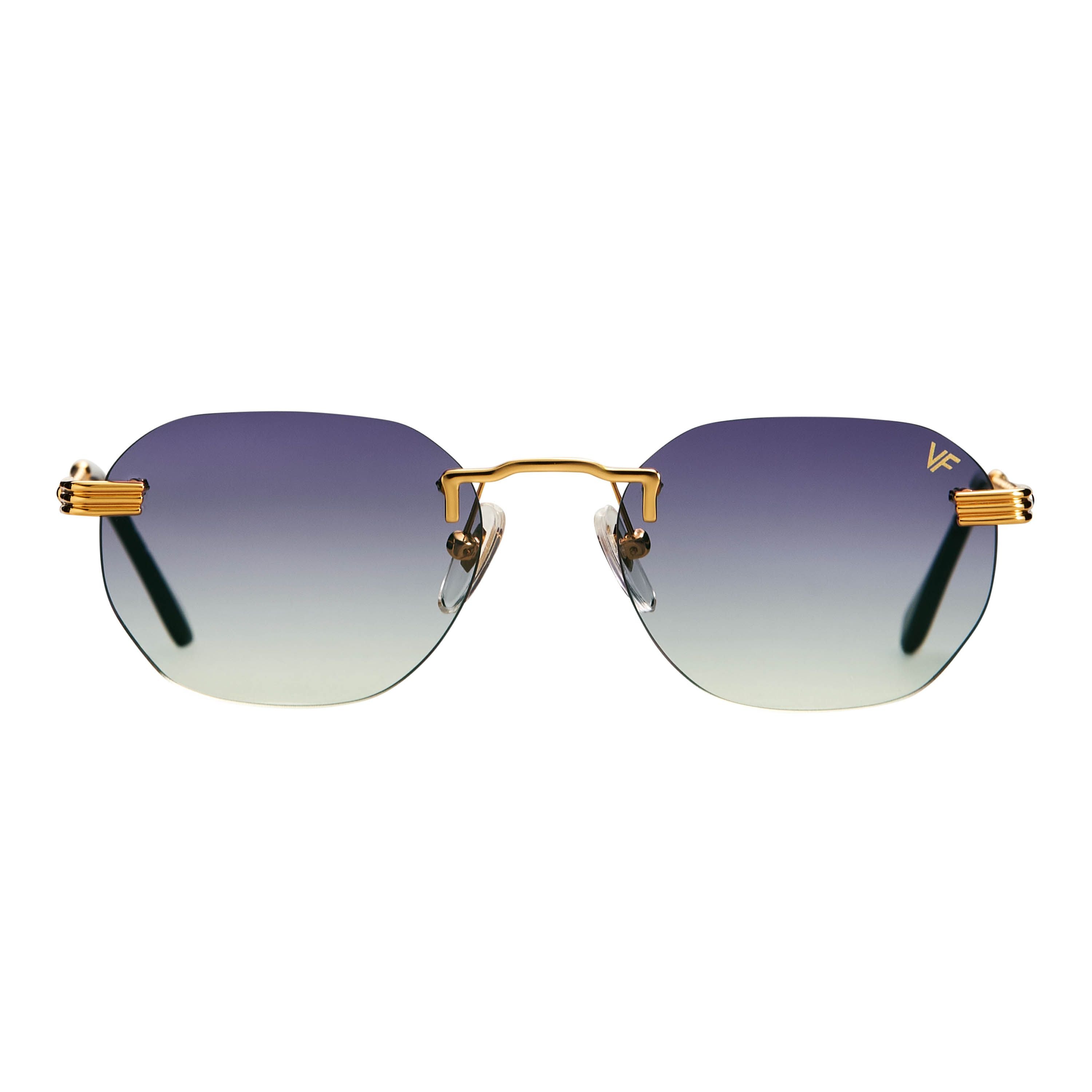 The fastest selling frame of all time is now available in a rimless style. The Detroit Player drill mount has 24kt gold nose bridge and our classic rope detailed arms. Available in an array of our iconic sun lenses and is also available for prescription.