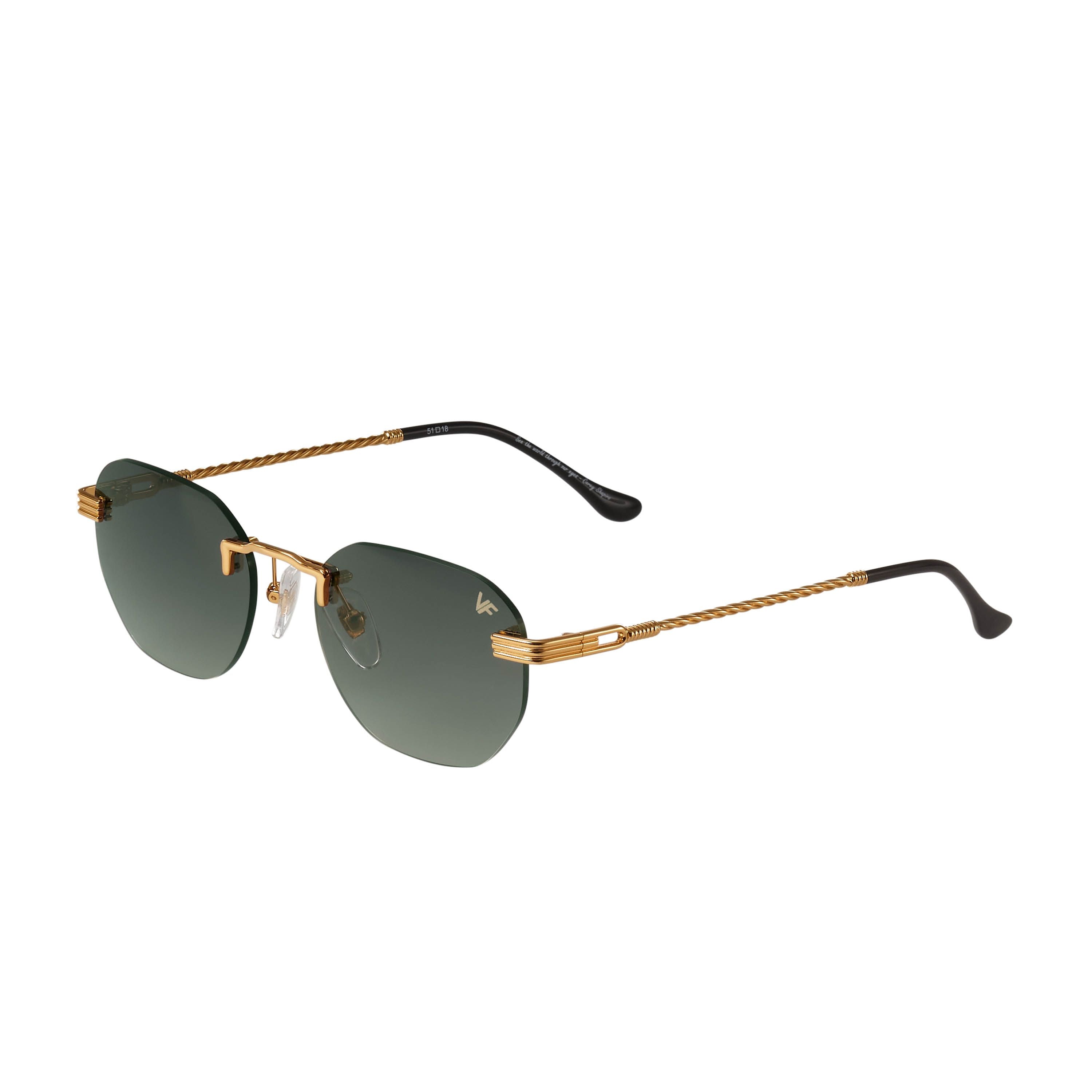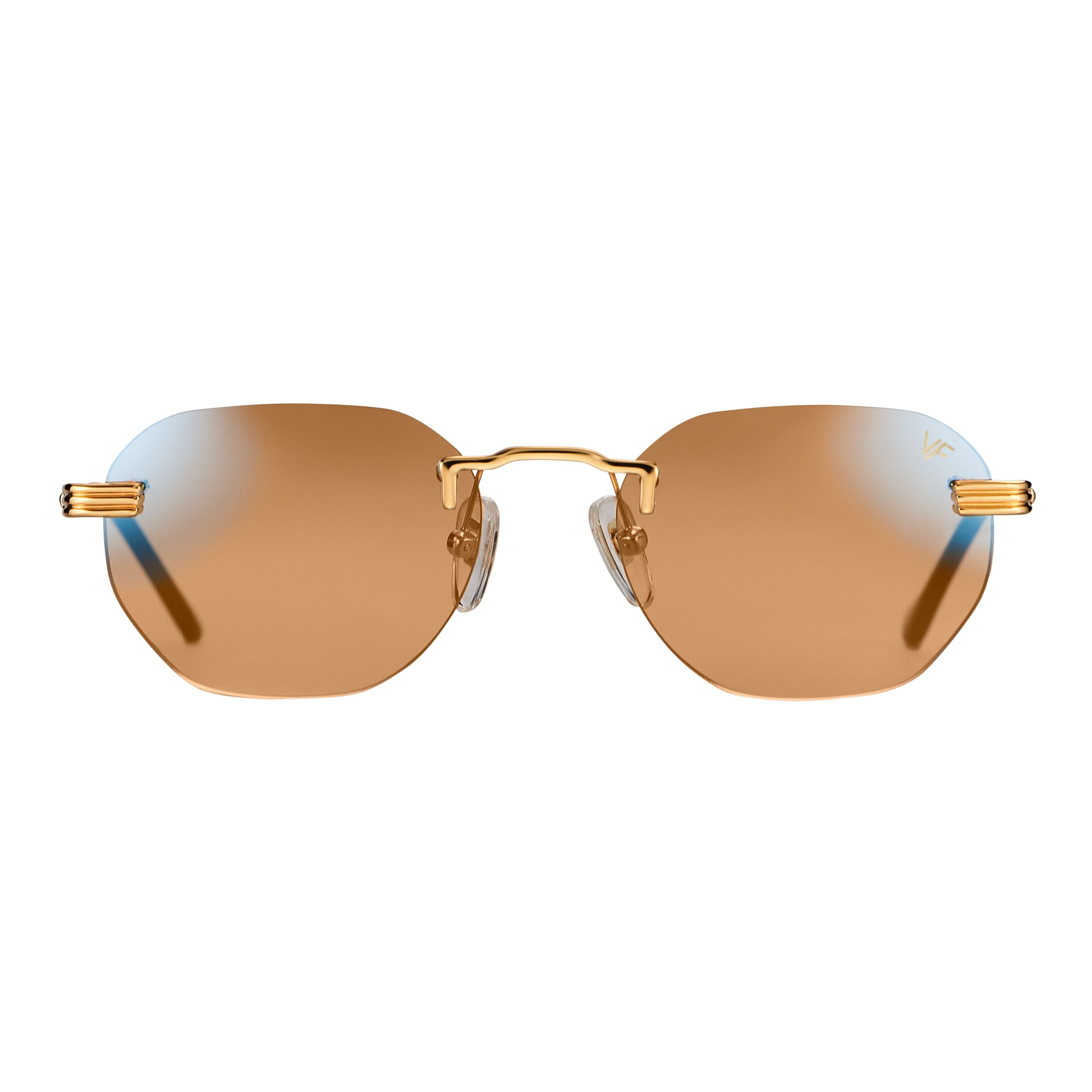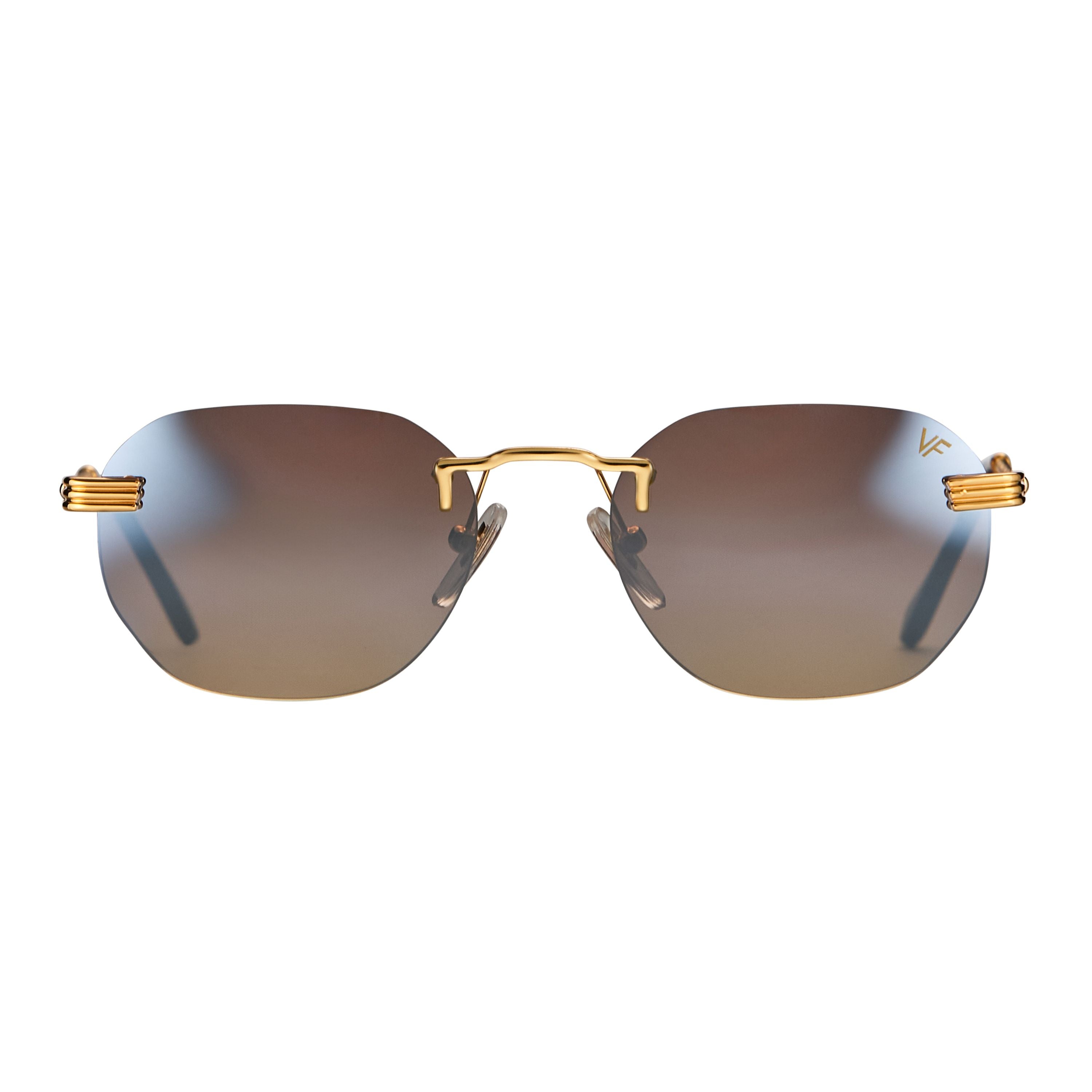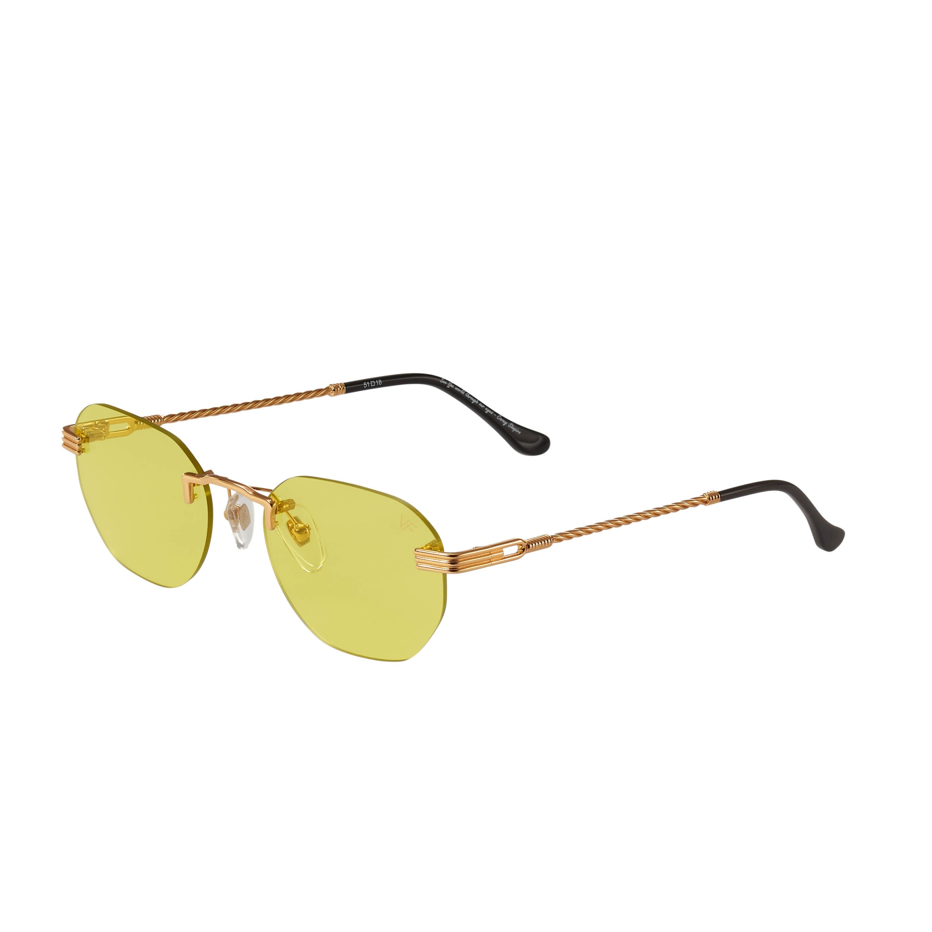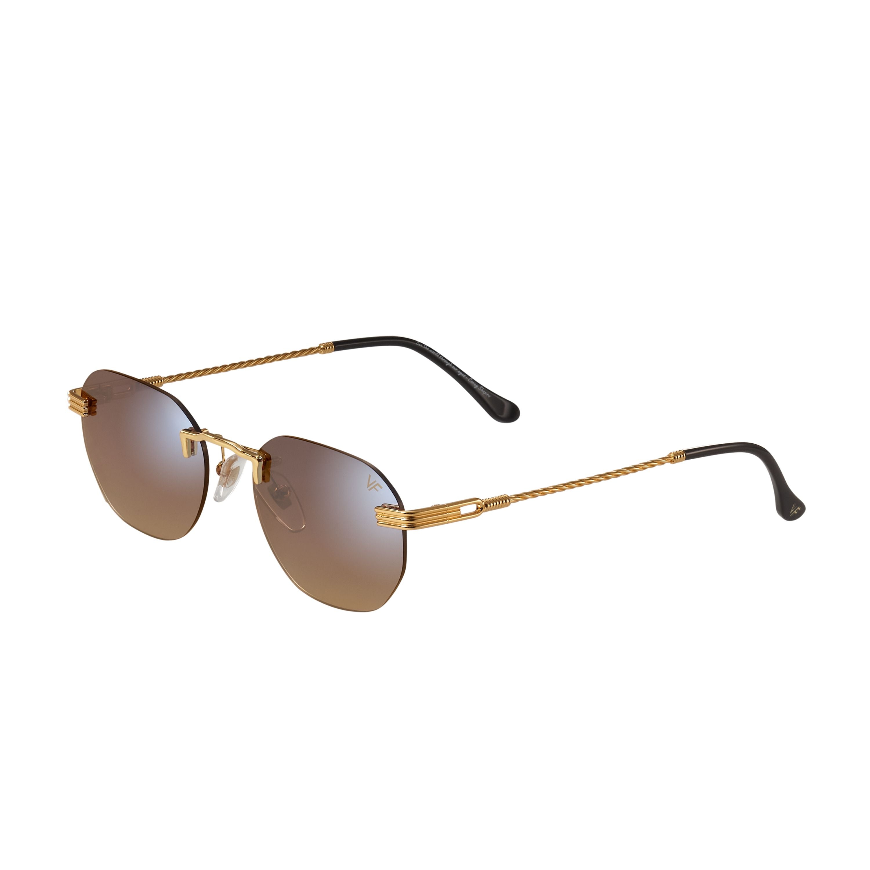 The fastest selling frame of all time is now available in a rimless style. The Detroit Player drill mount has 24kt gold nose bridge and our classic rope detailed arms. Available in an array of our iconic sun lenses and is also available for prescription.