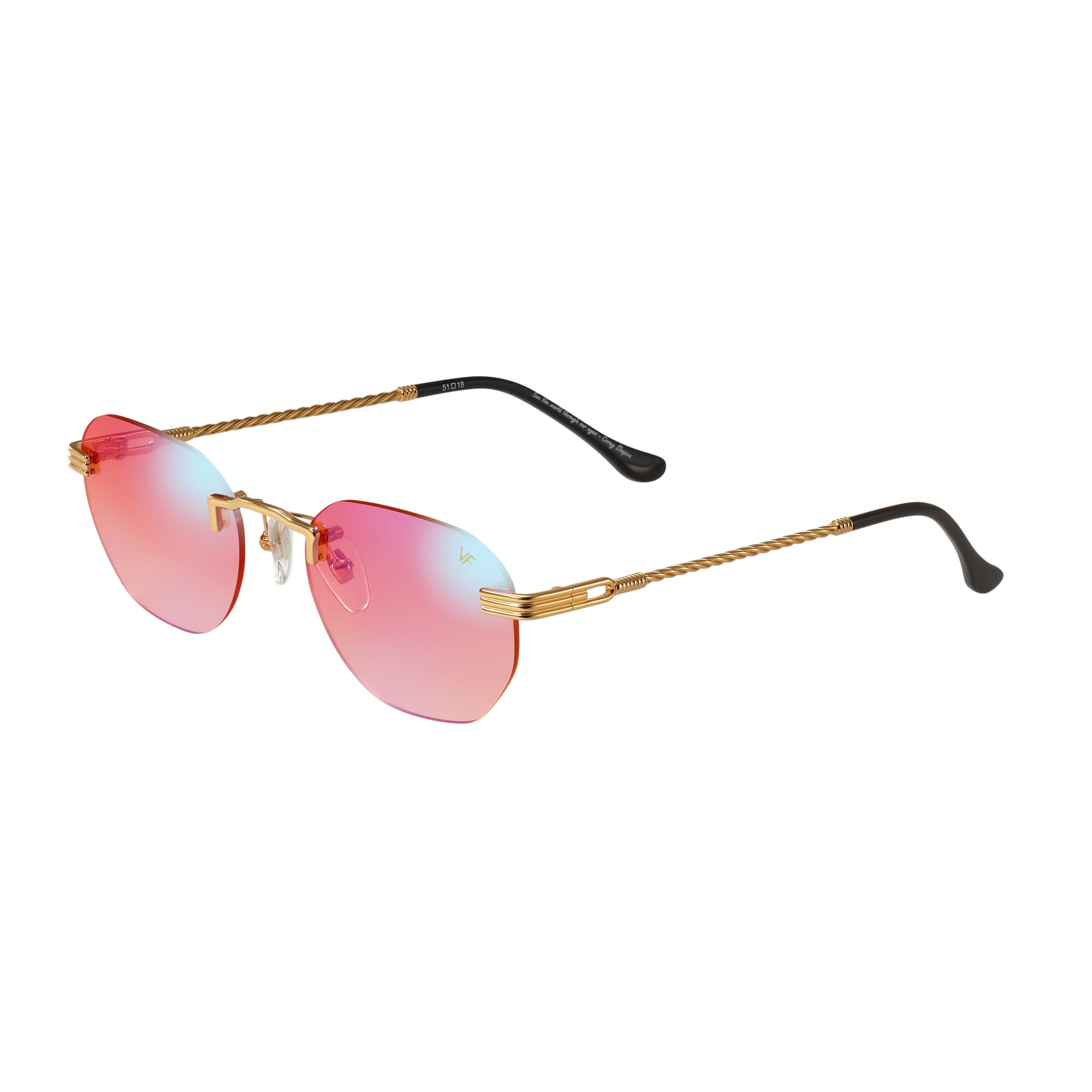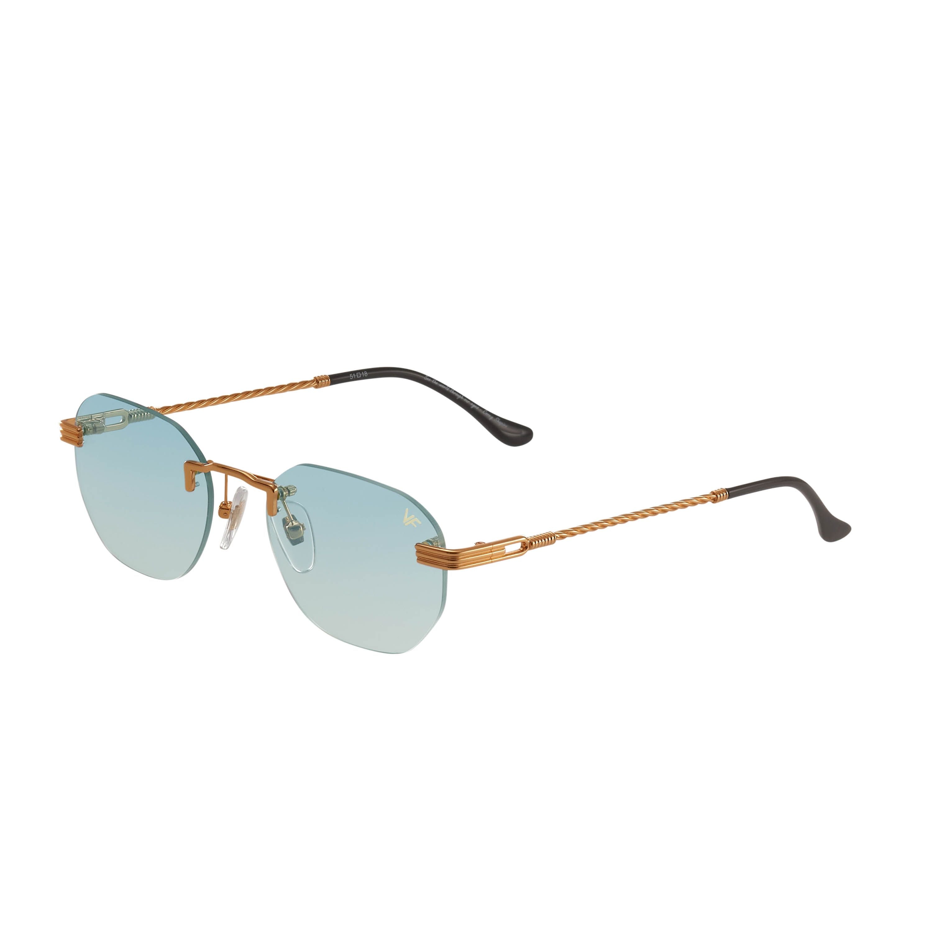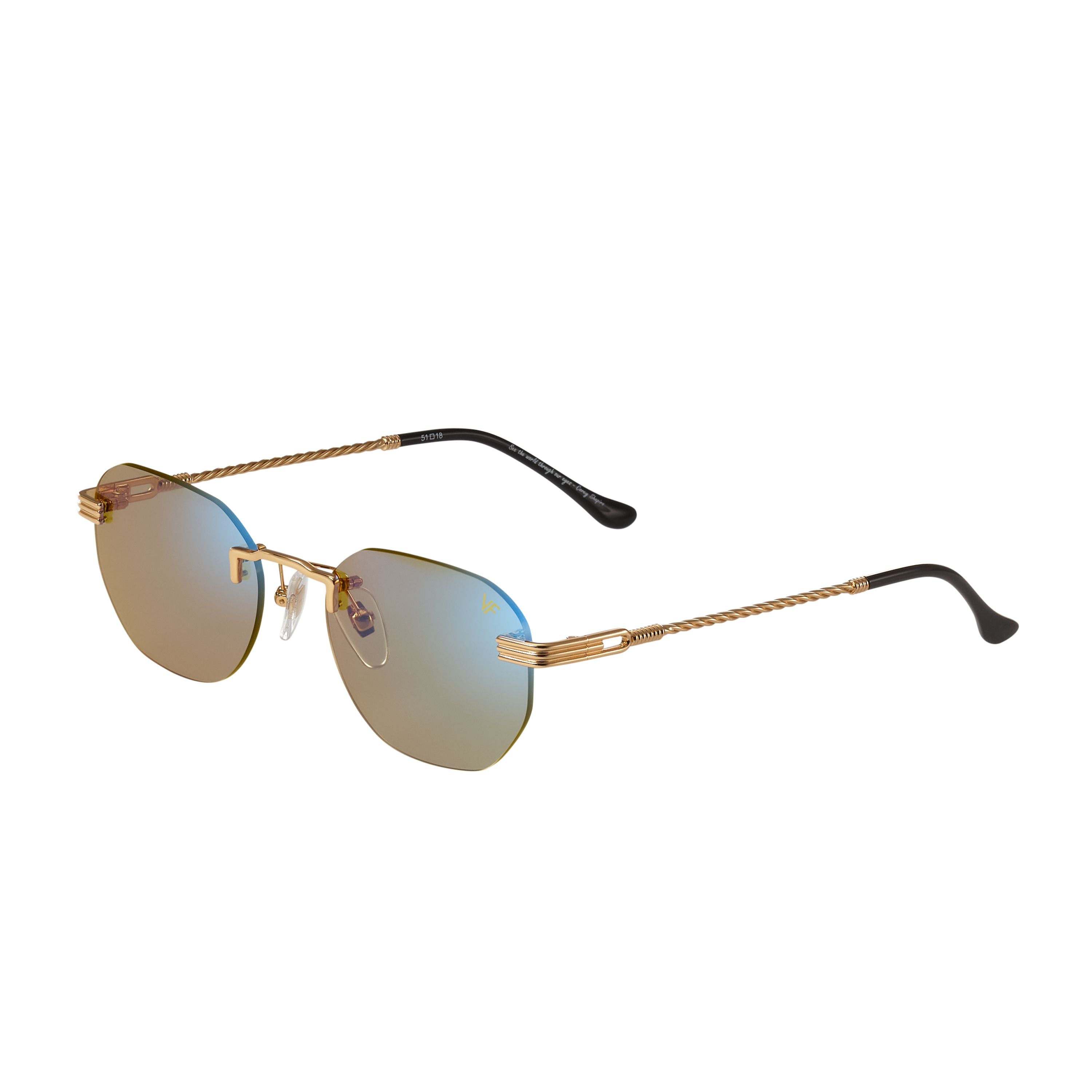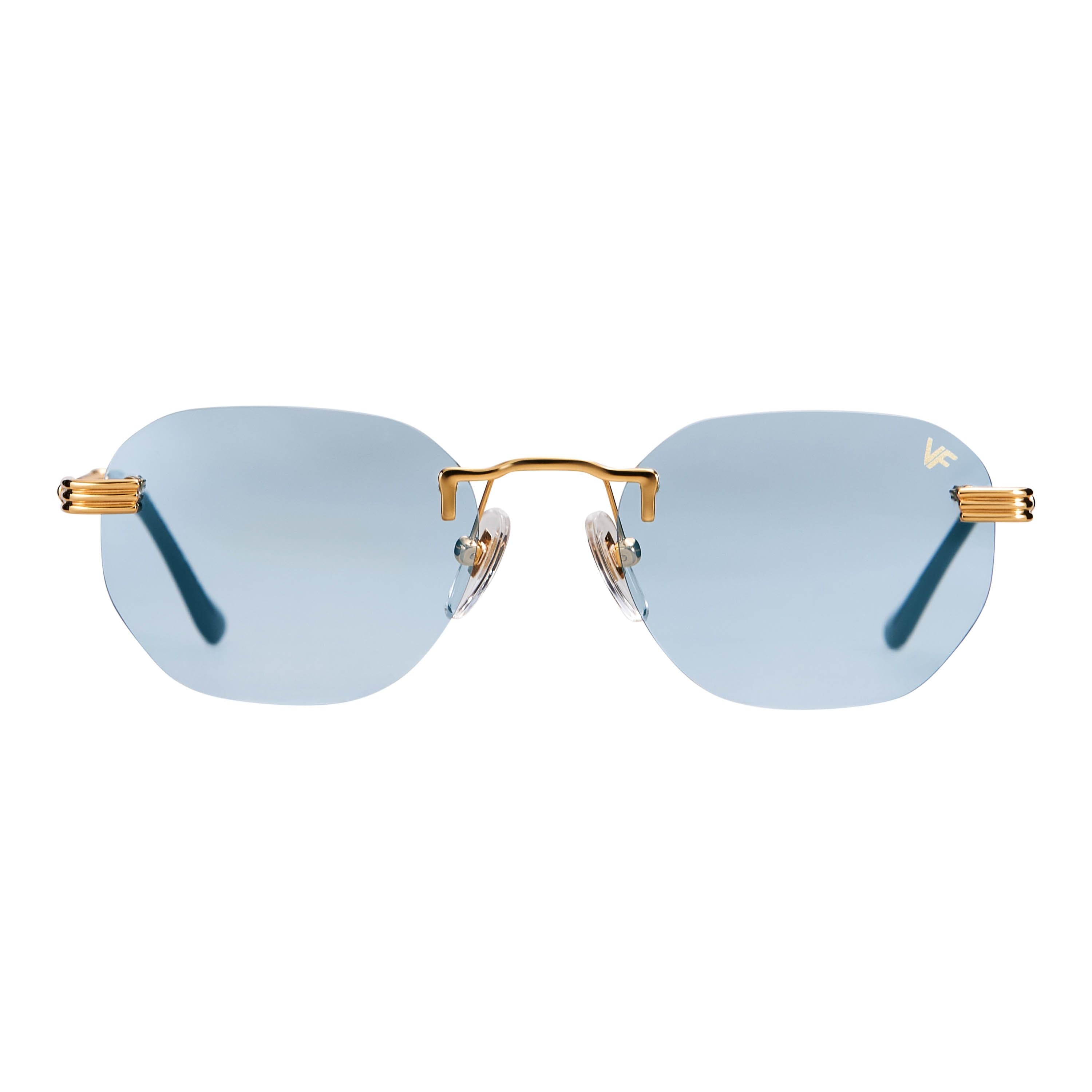 The fastest selling frame of all time is now available in a rimless style. The Detroit Player drill mount has 24kt gold nose bridge and our classic rope detailed arms. Available in an array of our iconic sun lenses and is also available for prescription.