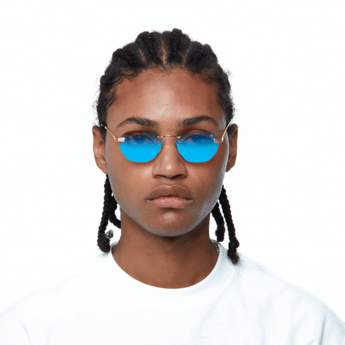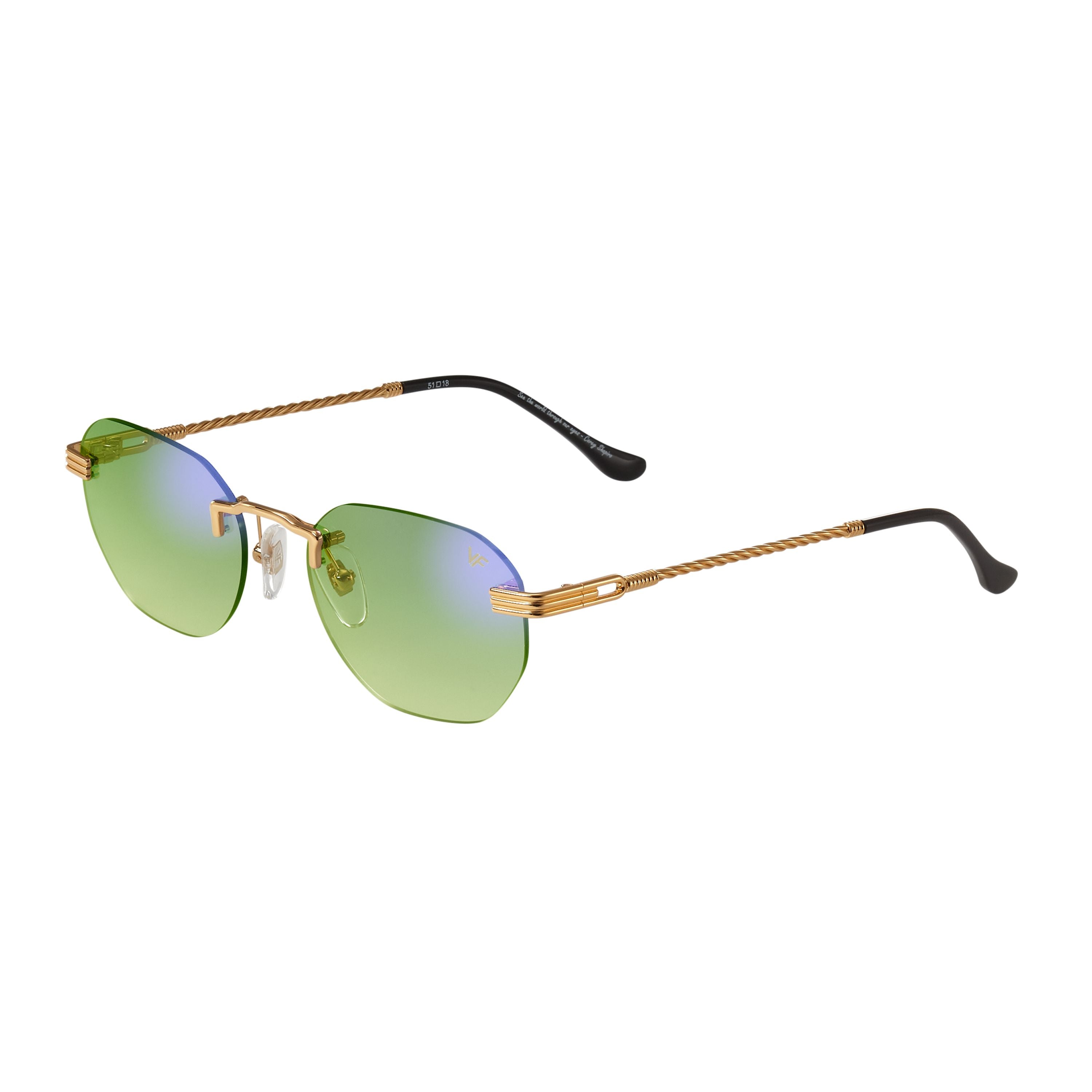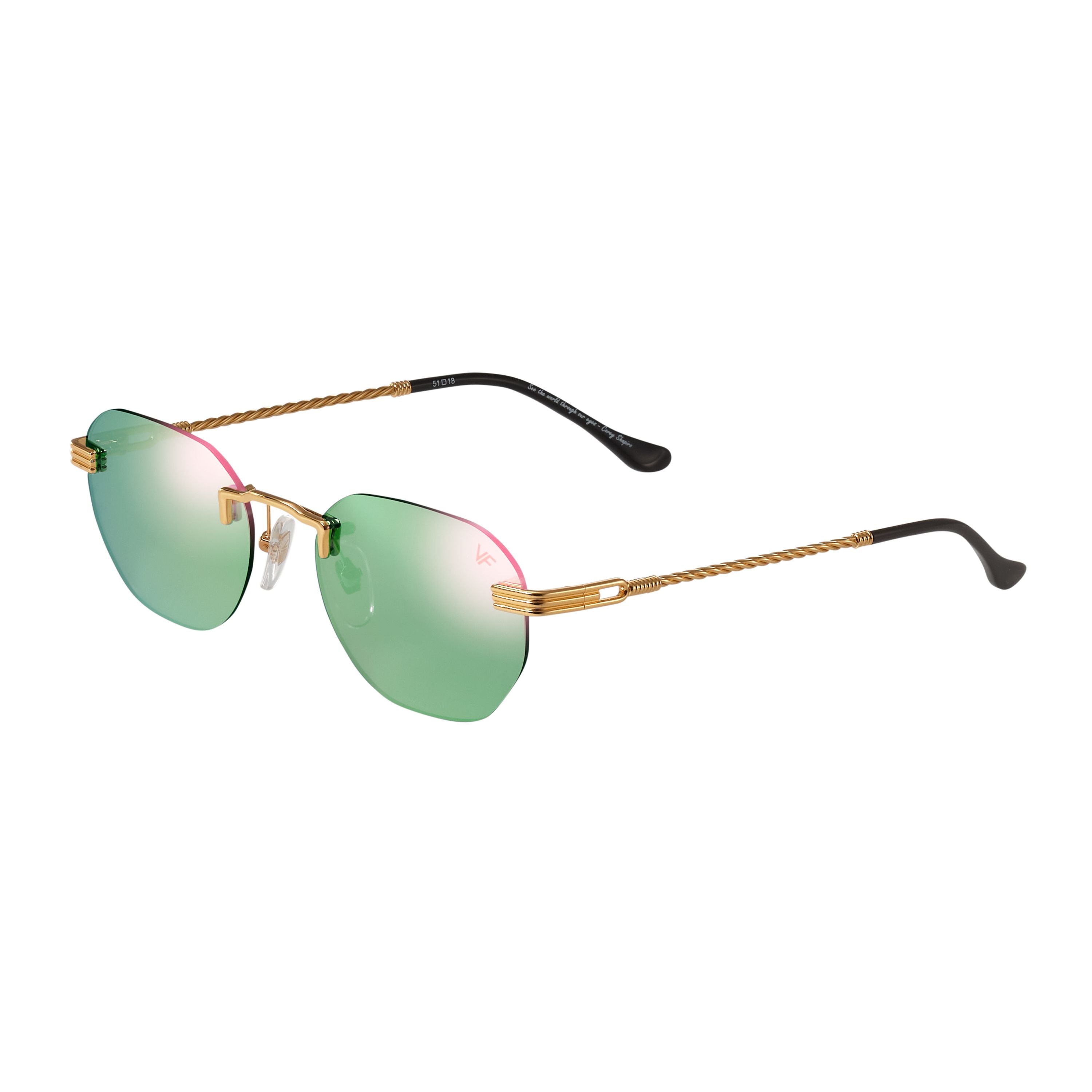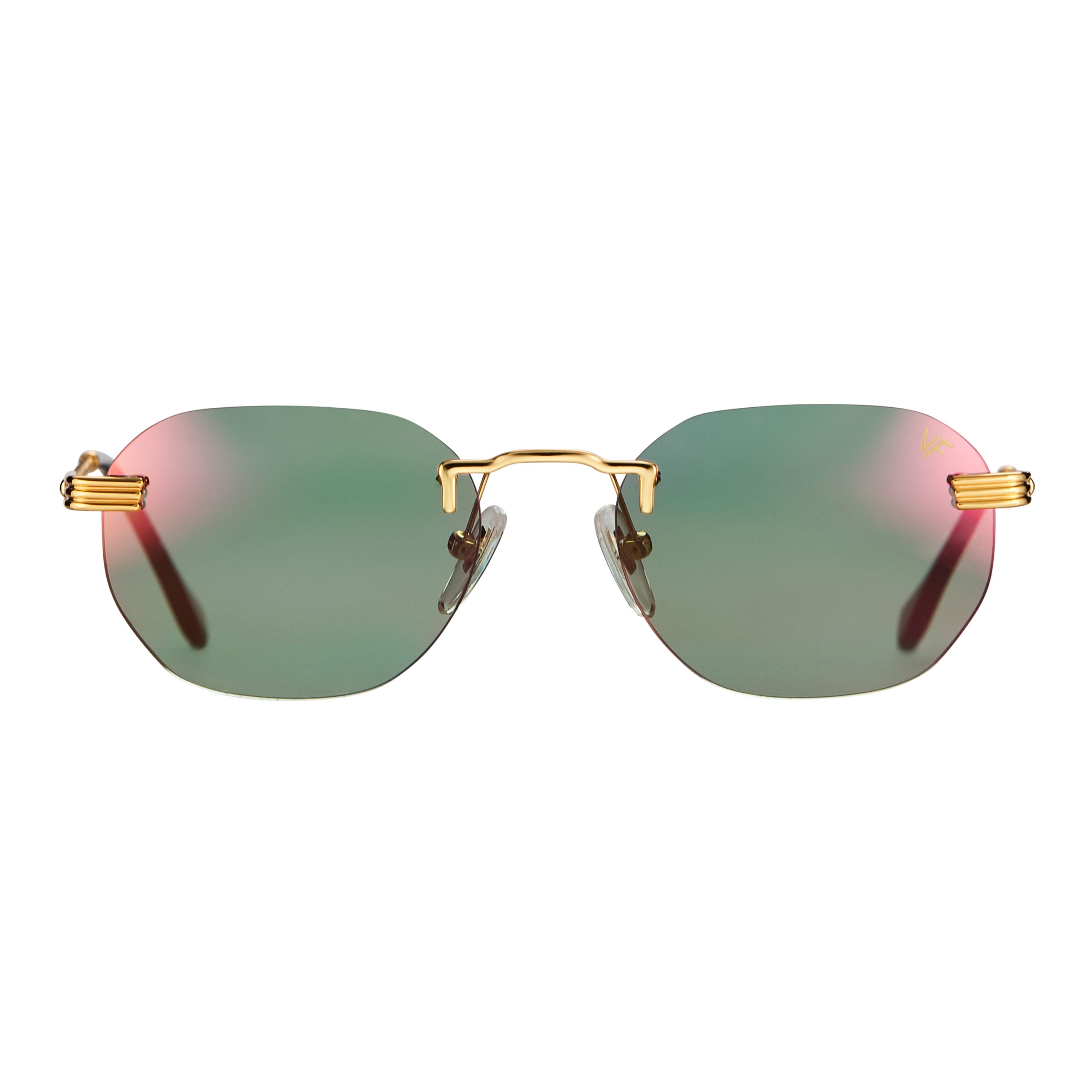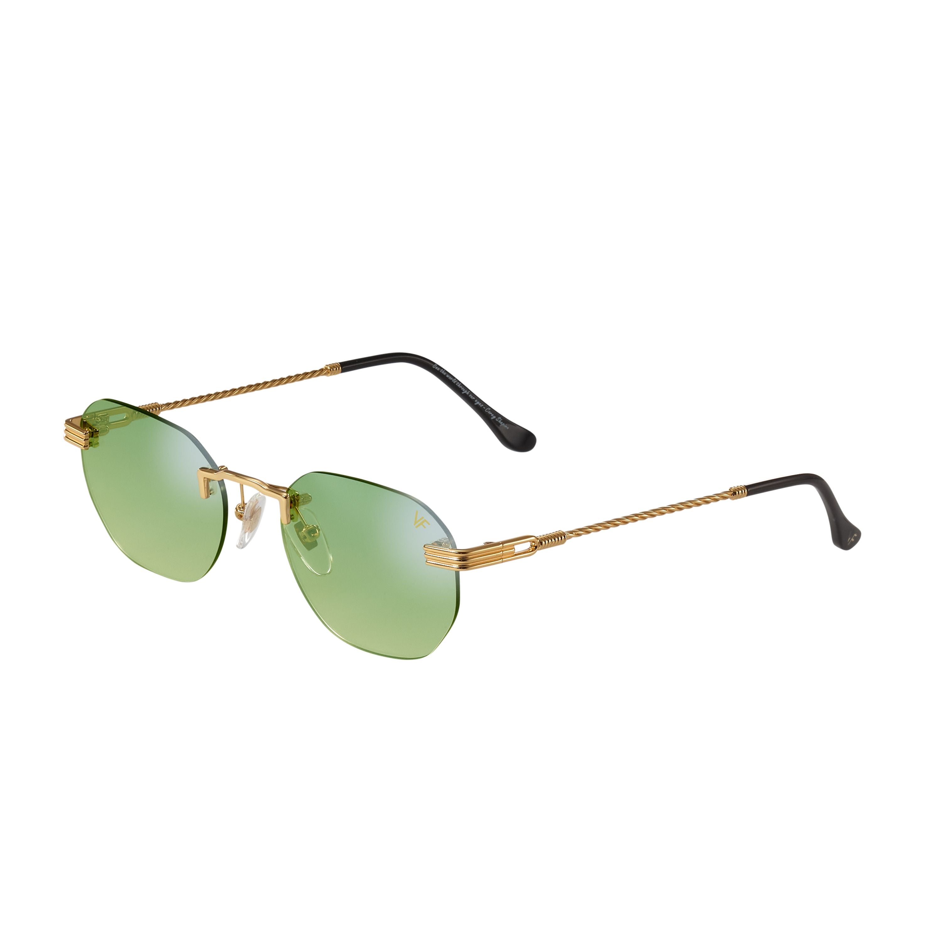 The fastest selling frame of all time is now available in a rimless style. The Detroit Player drill mount has 24kt gold nose bridge and our classic rope detailed arms. Available in an array of our iconic sun lenses and is also available for prescription.