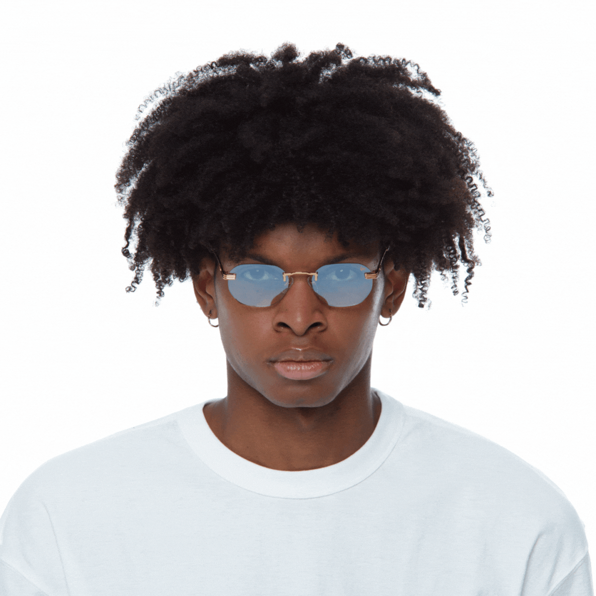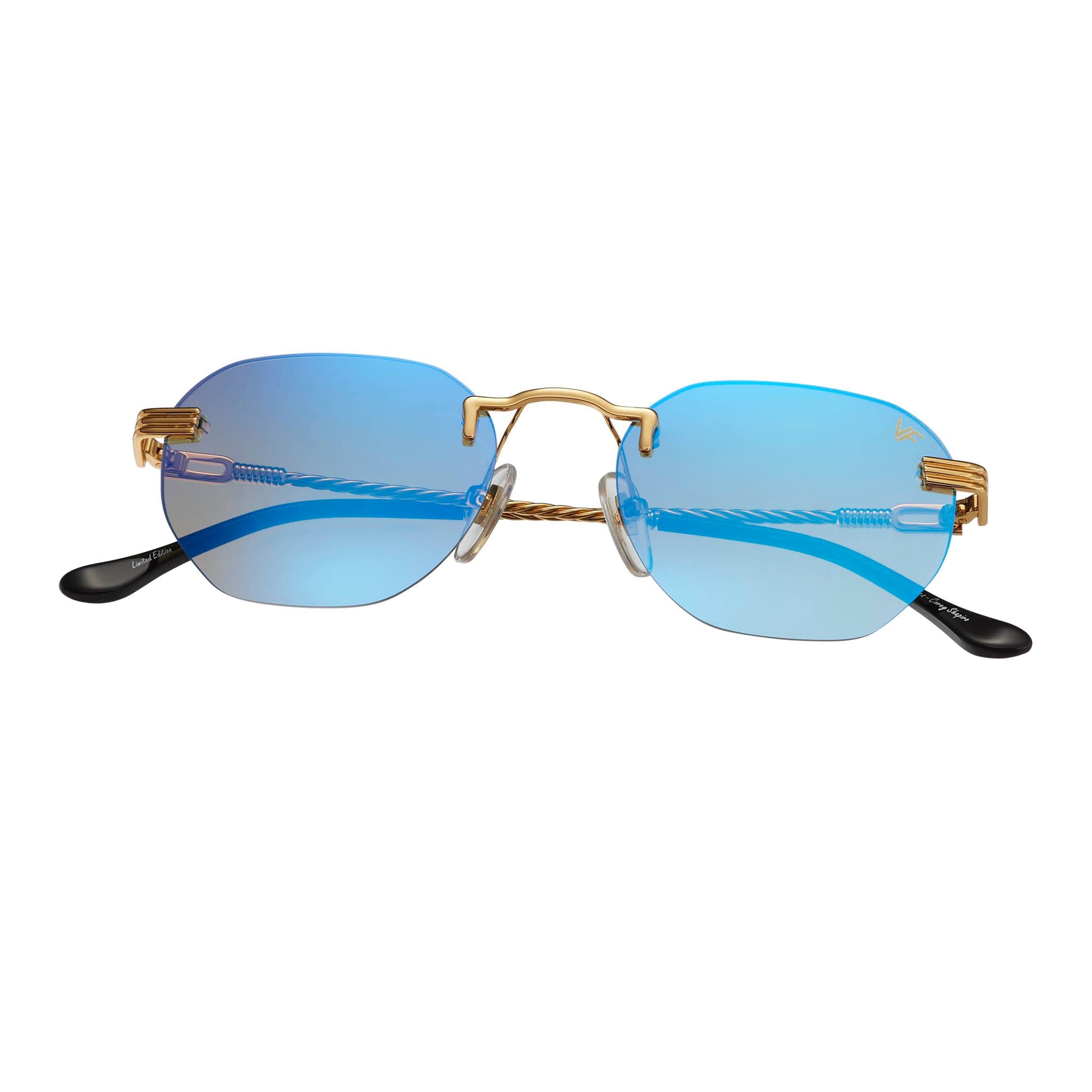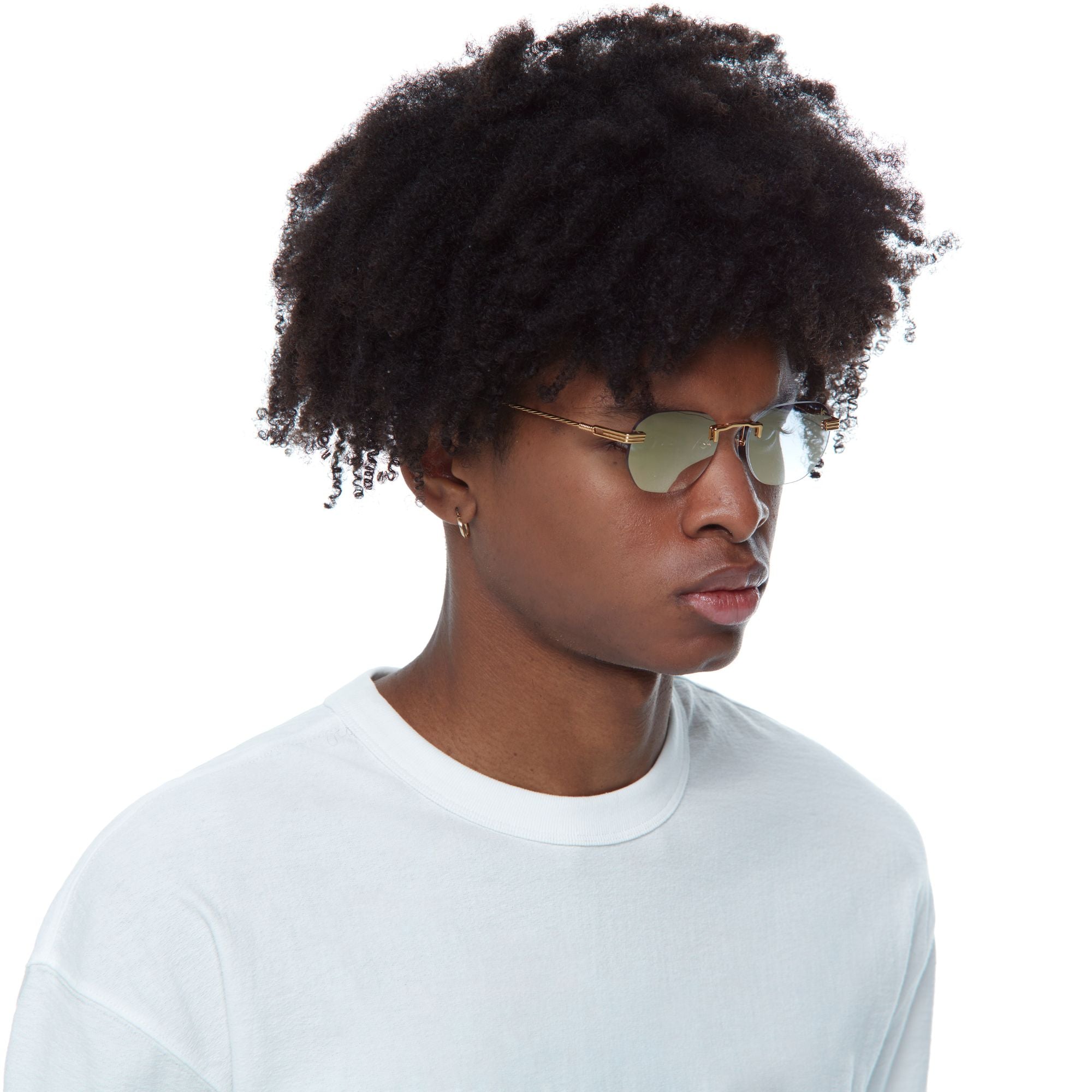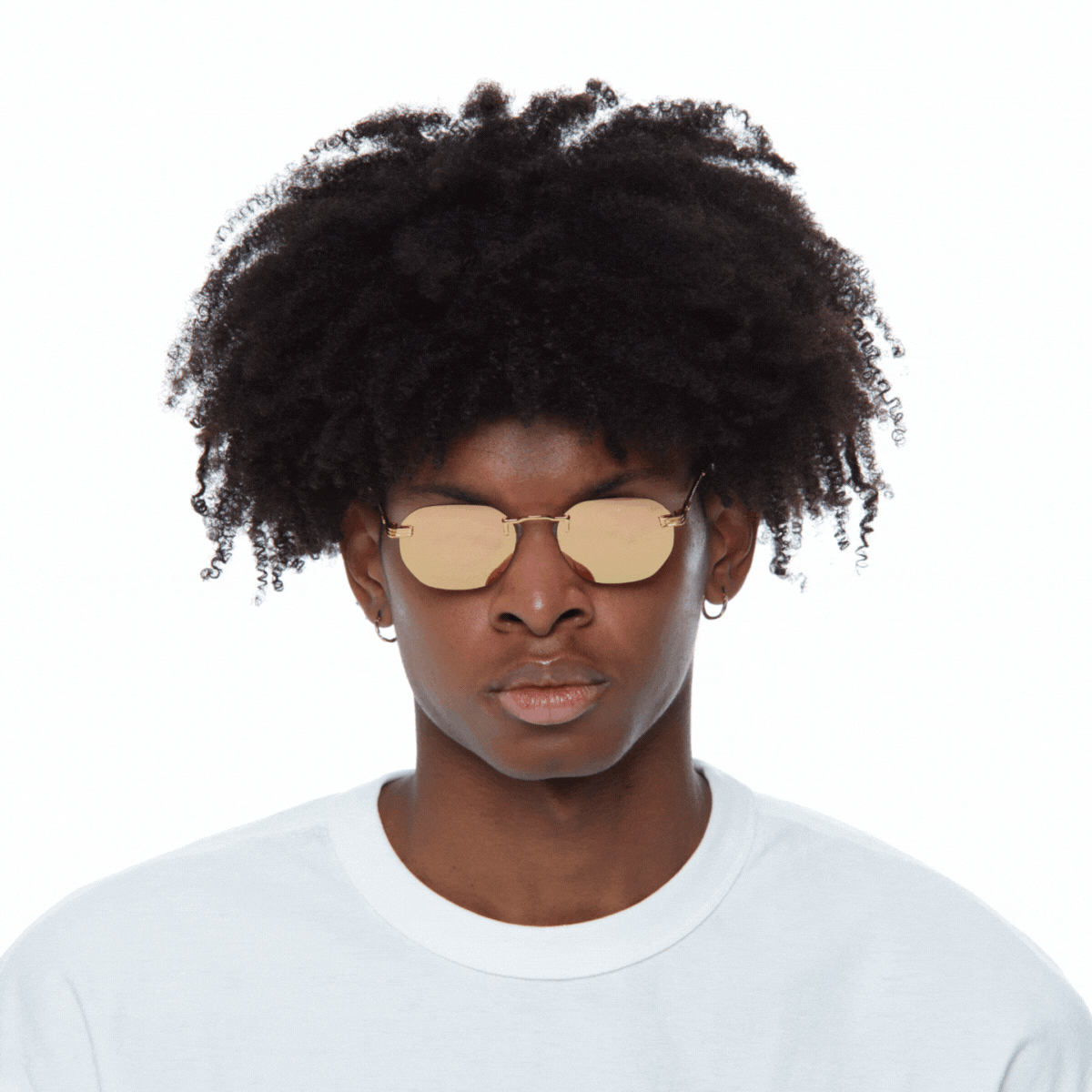 The fastest selling frame of all time is now available in a rimless style. The Detroit Player drill mount has 24kt gold nose bridge and our classic rope detailed arms. Available in an array of our iconic sun lenses and is also available for prescription.