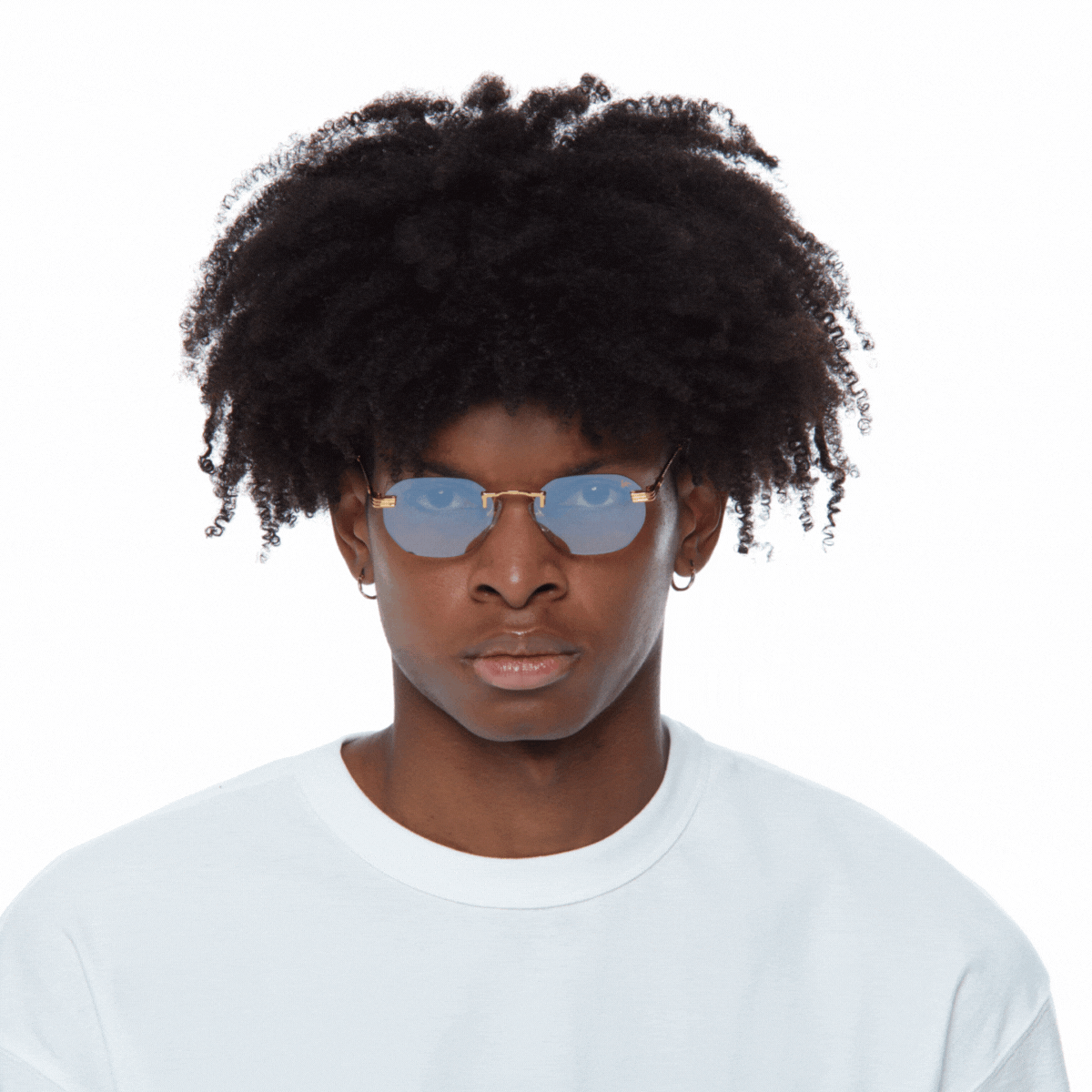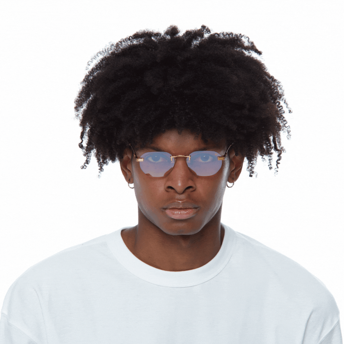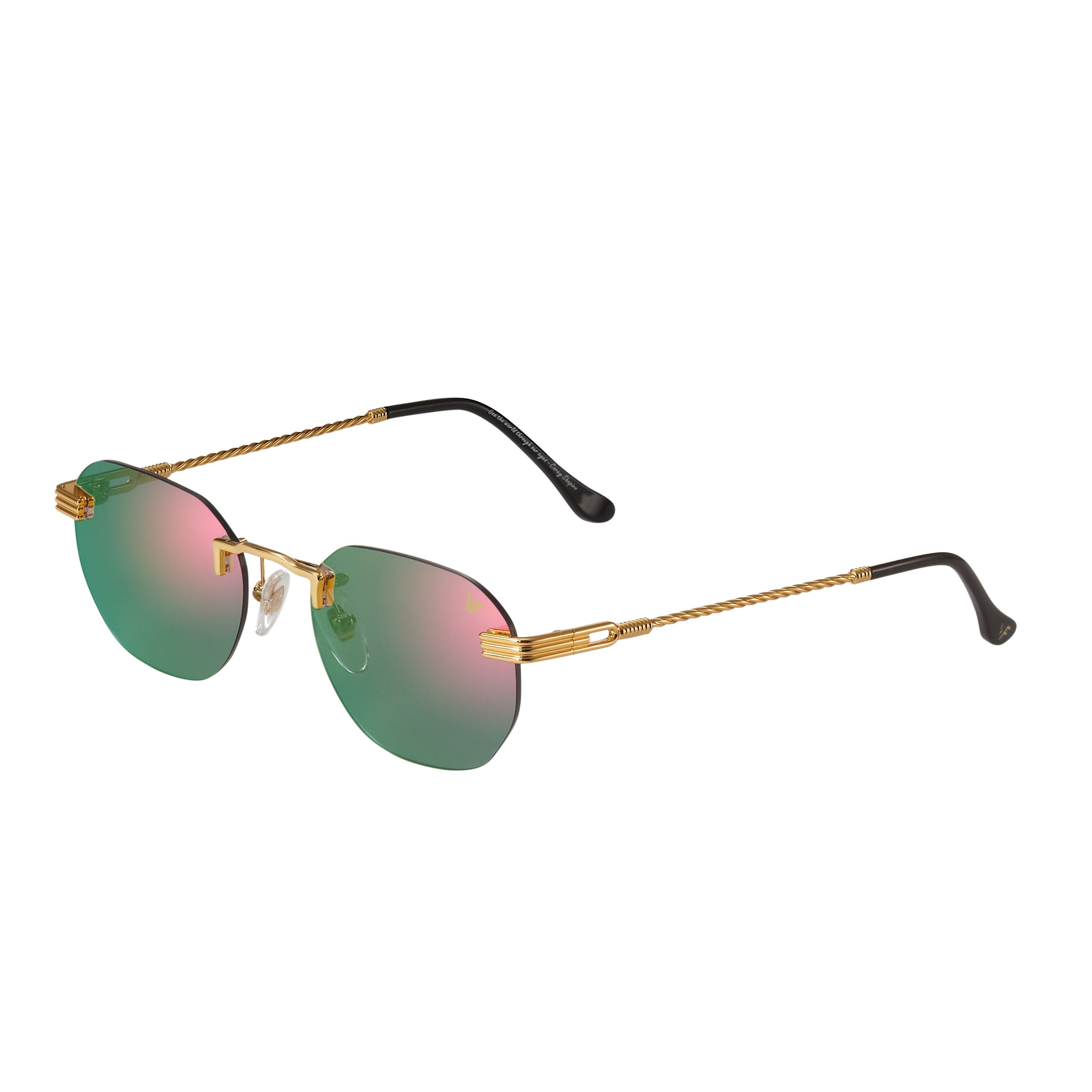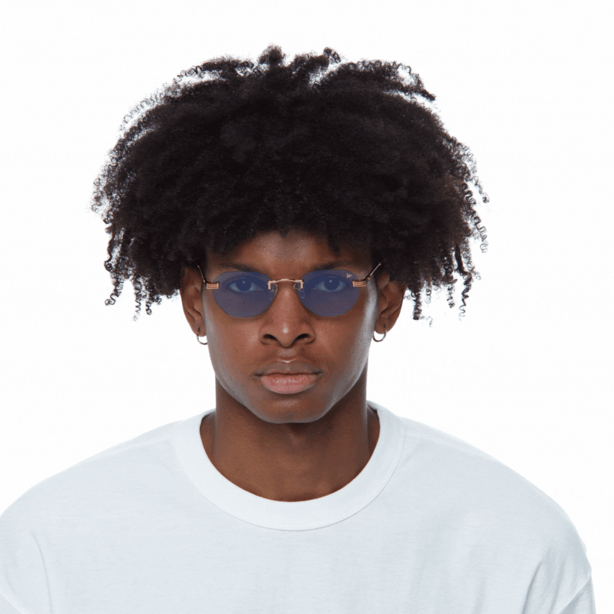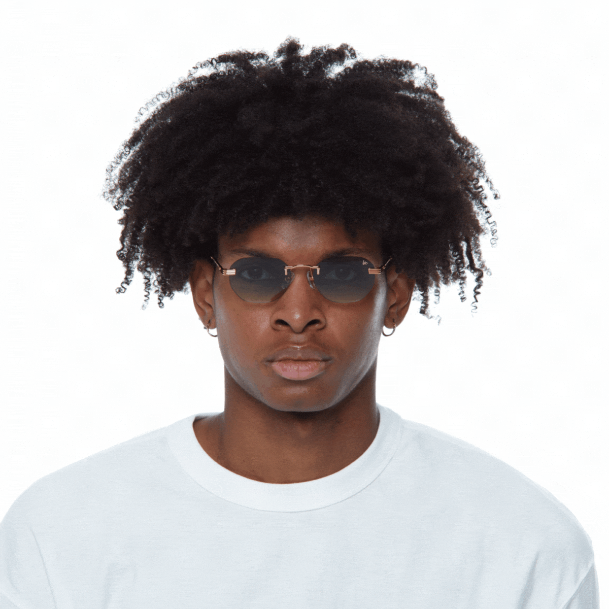 The fastest selling frame of all time is now available in a rimless style. The Detroit Player drill mount has 24kt gold nose bridge and our classic rope detailed arms. Available in an array of our iconic sun lenses and is also available for prescription.