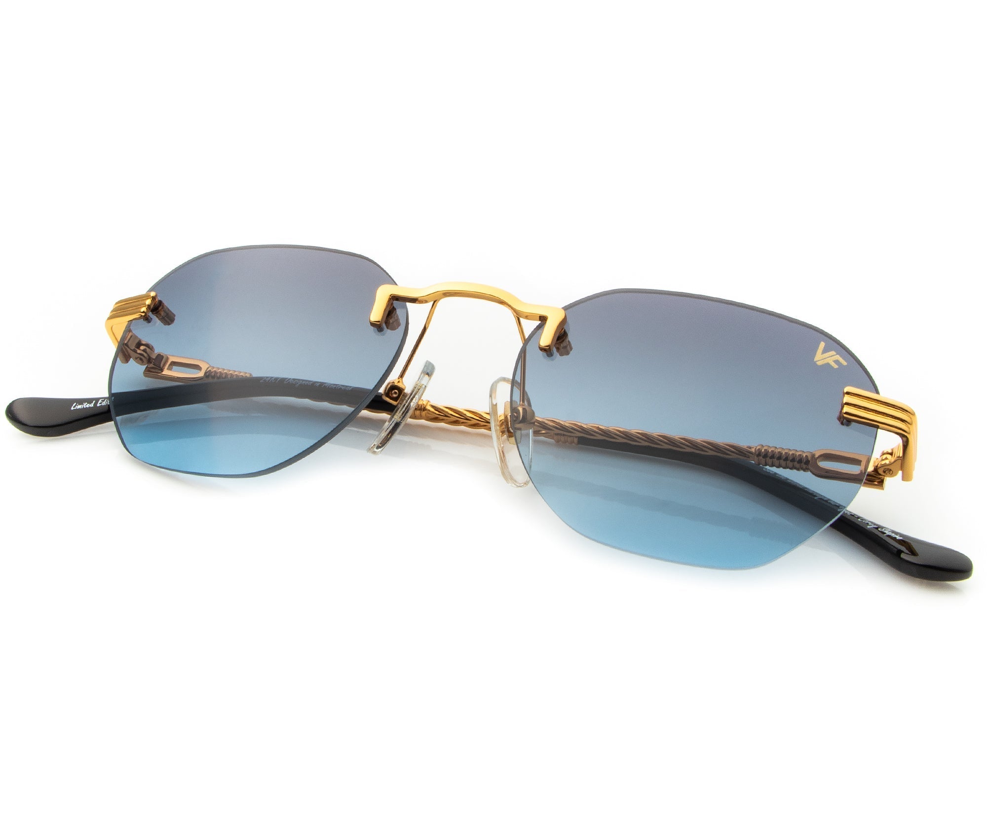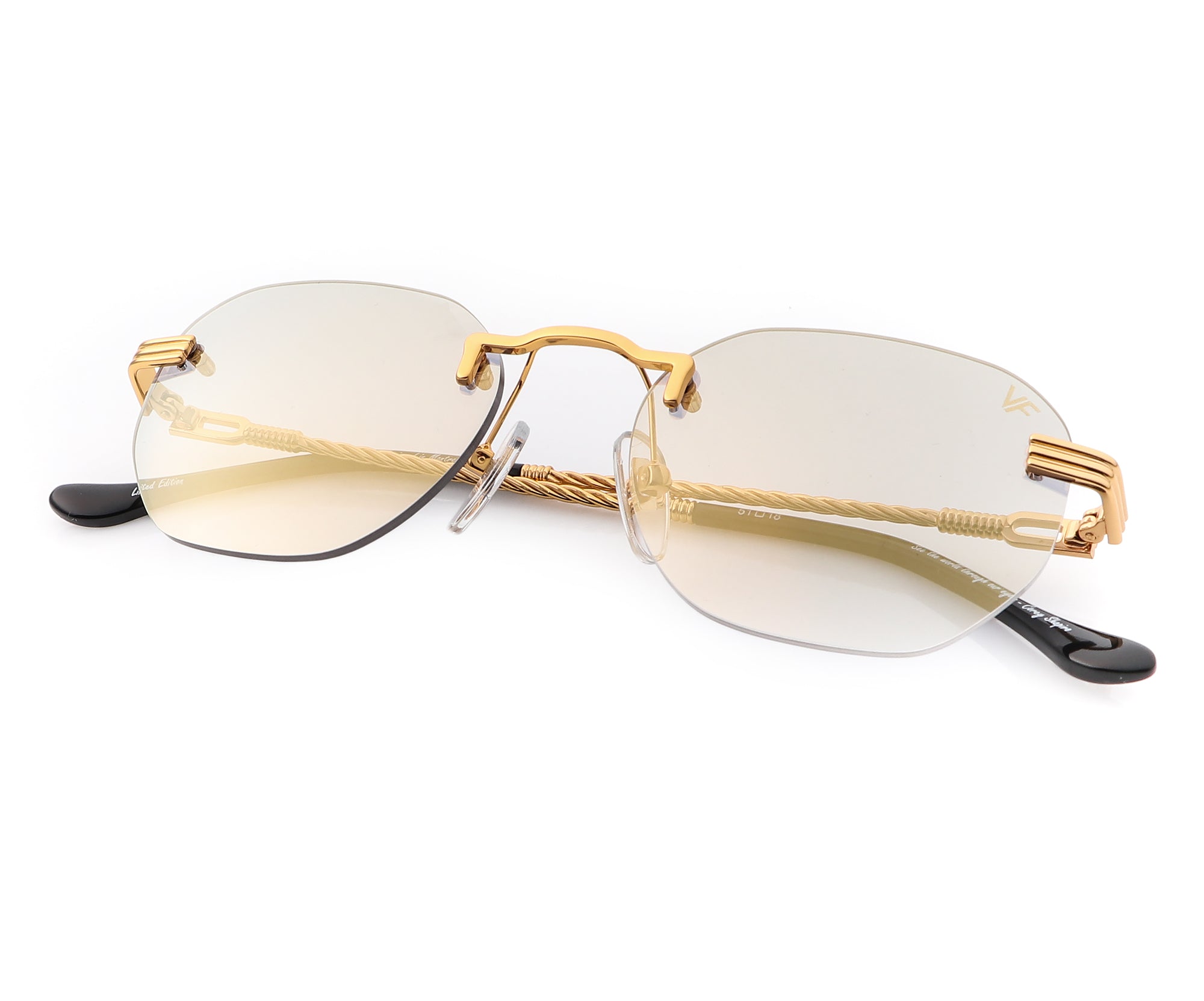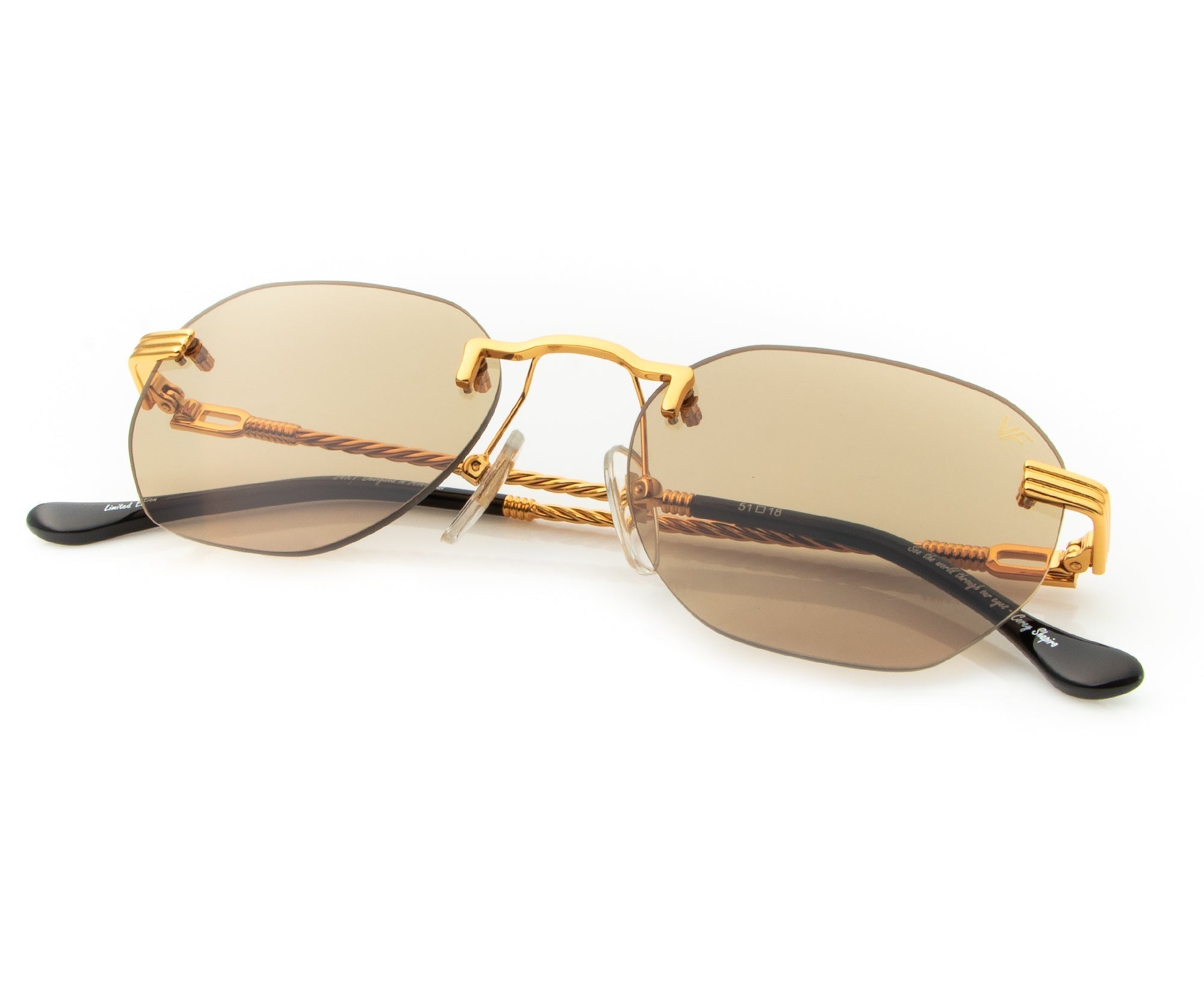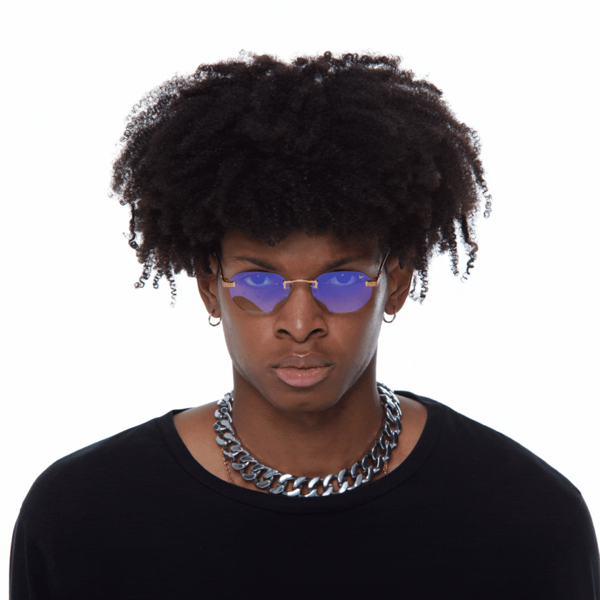 The fastest selling frame of all time is now available in a rimless style. The Detroit Player drill mount has 24kt gold nose bridge and our classic rope detailed arms. Available in an array of our iconic sun lenses and is also available for prescription.