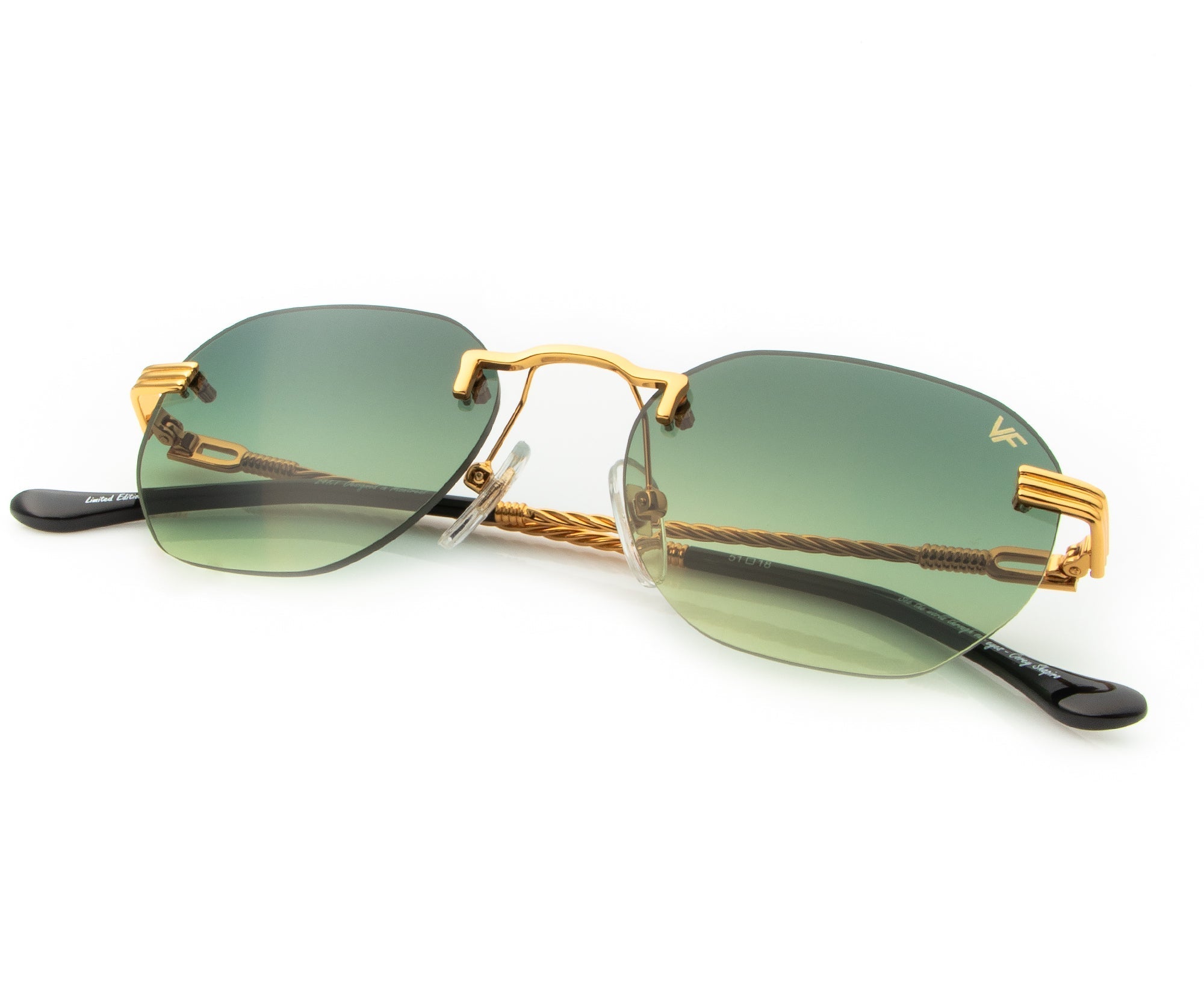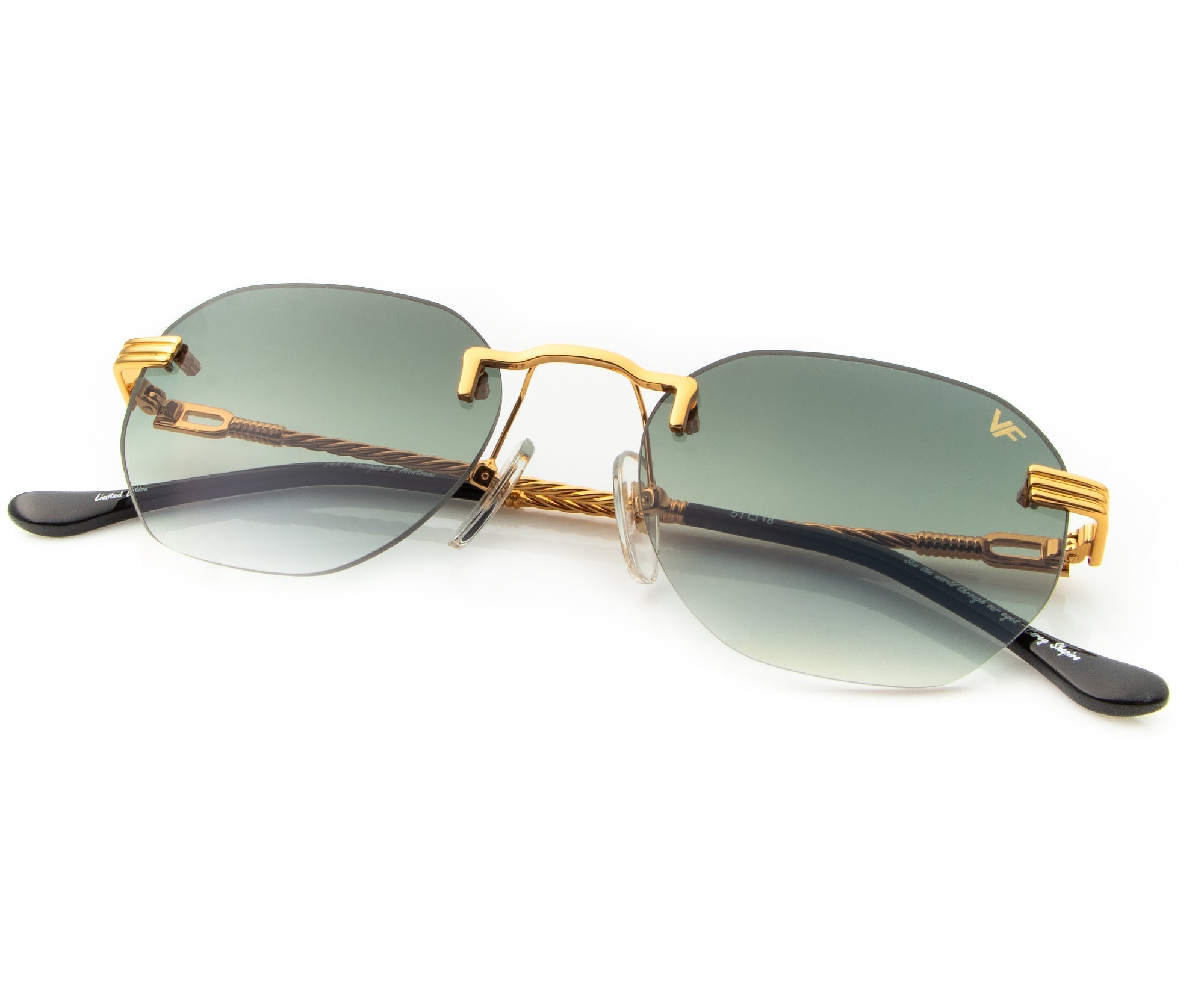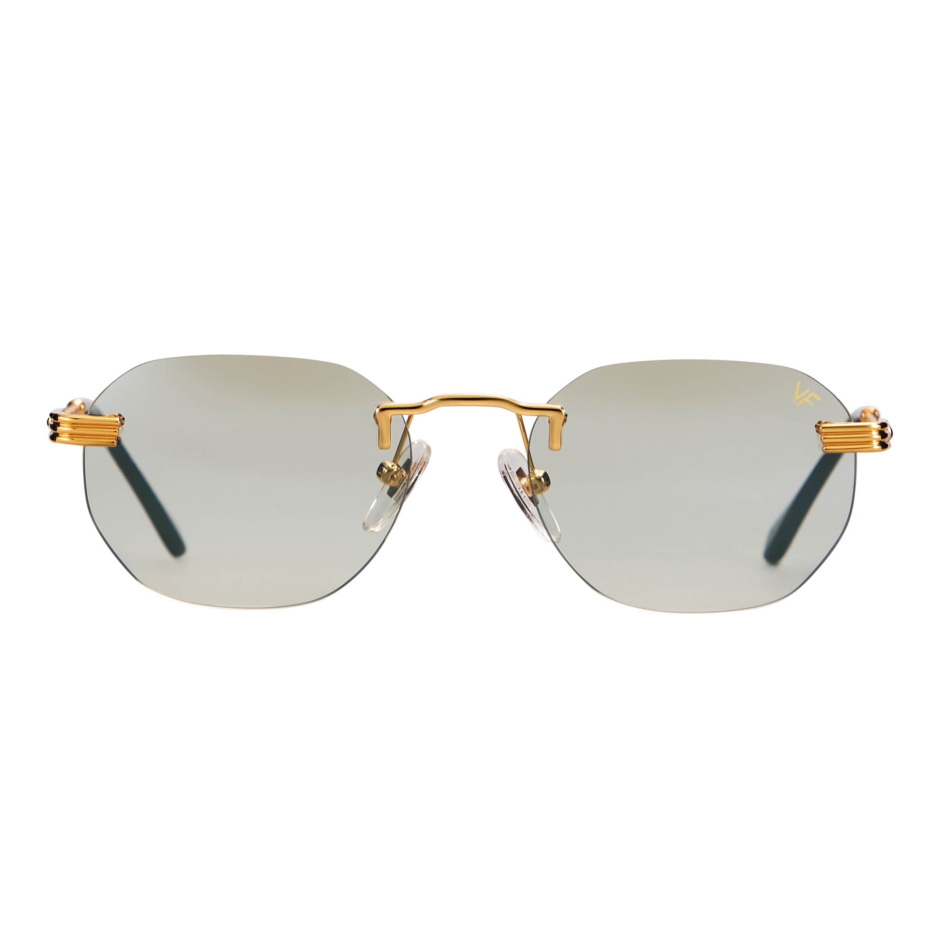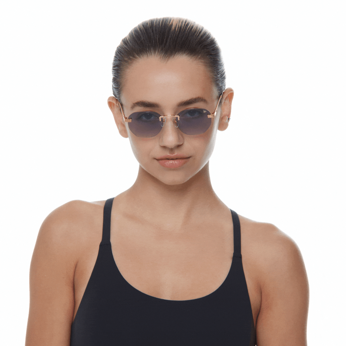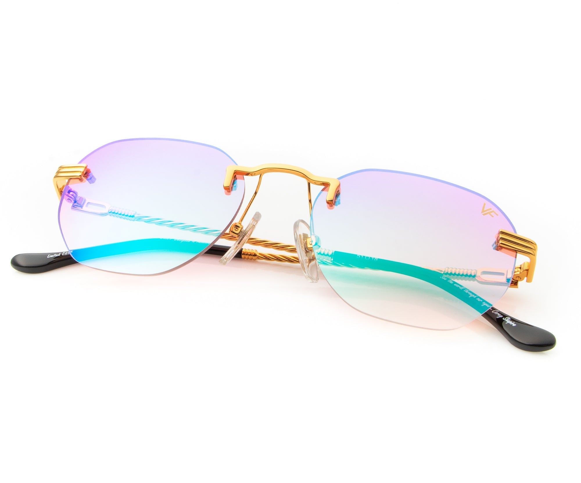 The fastest selling frame of all time is now available in a rimless style. The Detroit Player drill mount has 24kt gold nose bridge and our classic rope detailed arms. Available in an array of our iconic sun lenses and is also available for prescription.