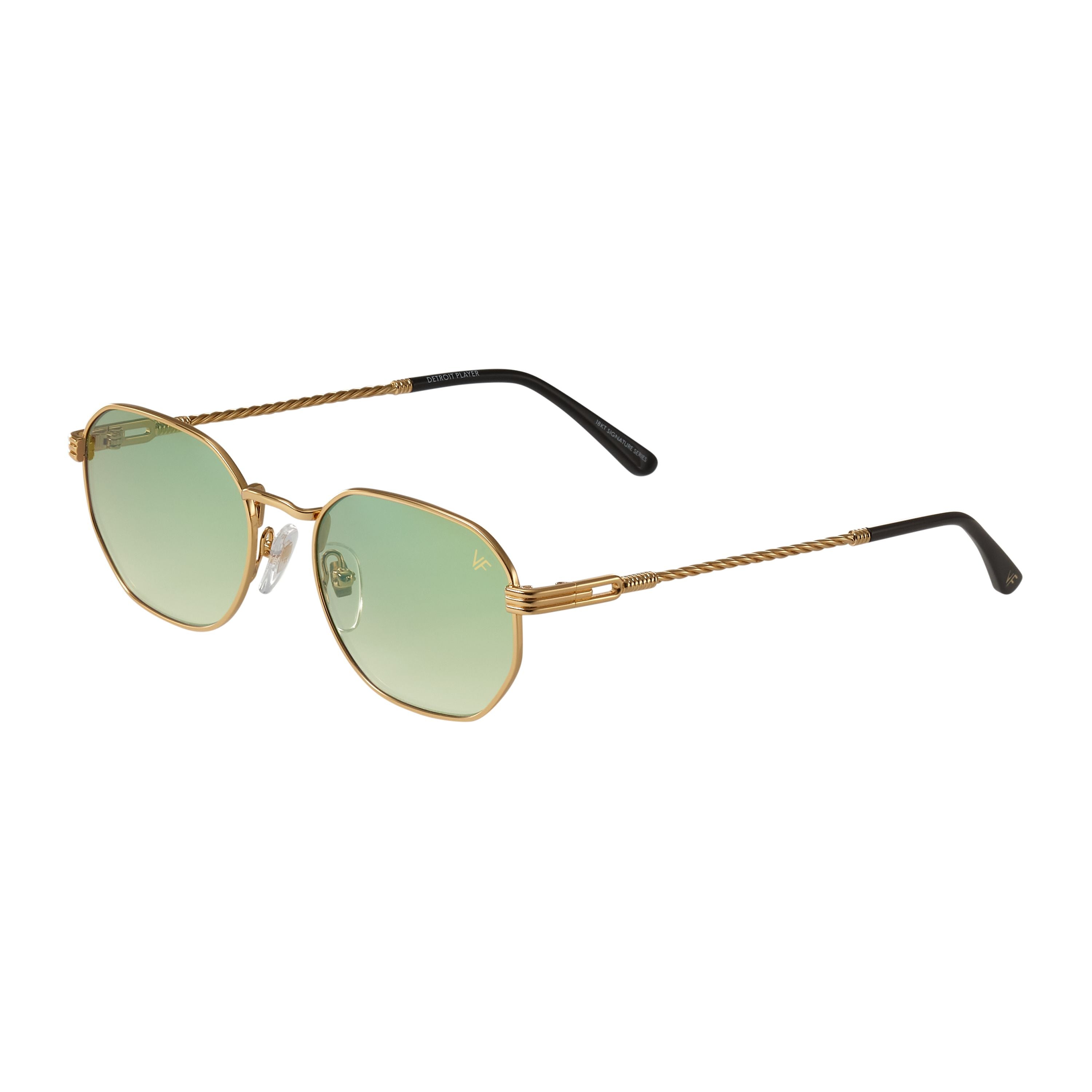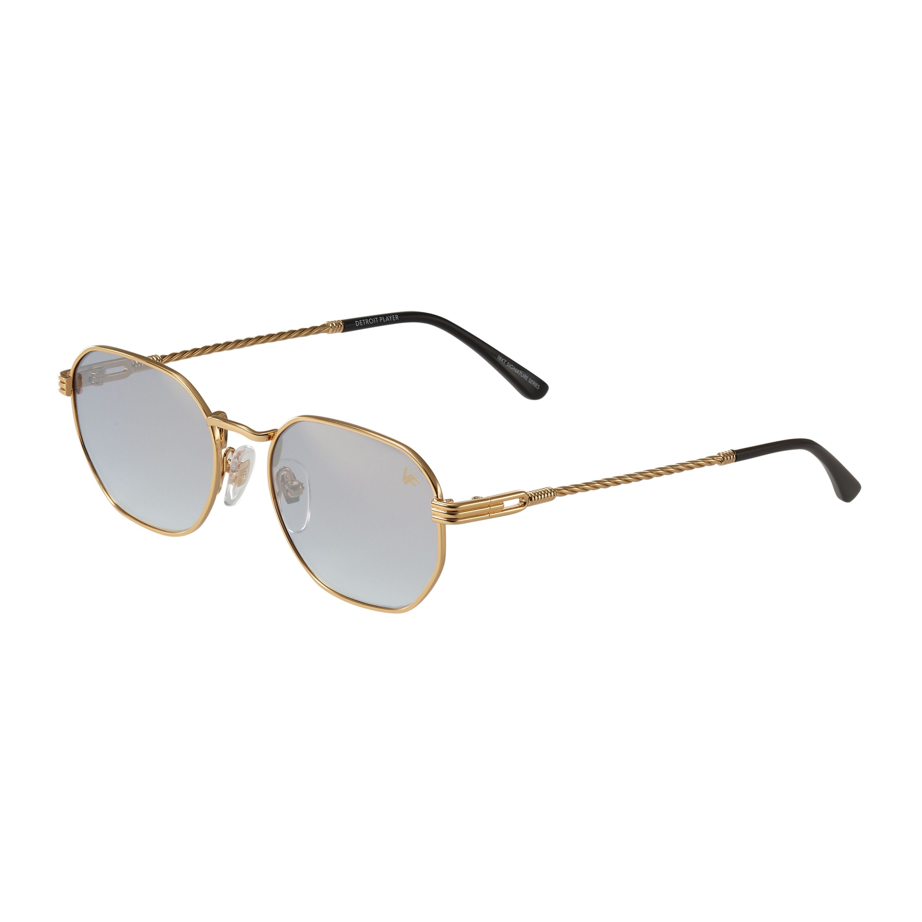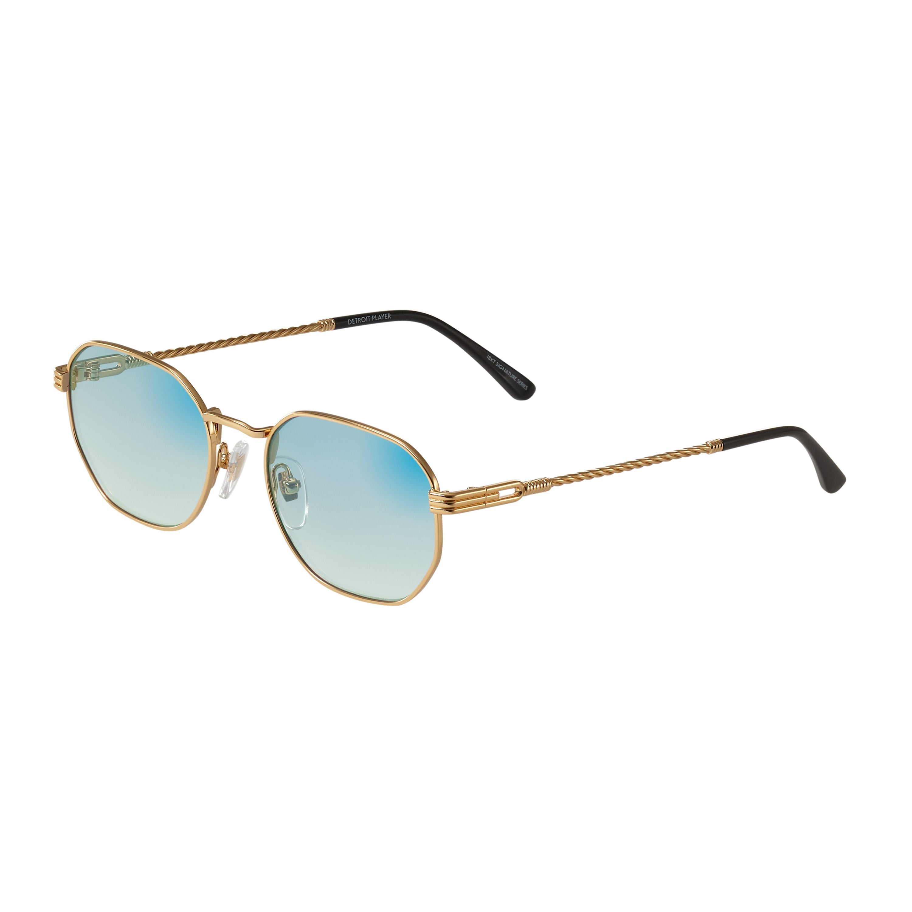 Made using vintage machinery and techniques, the Detroit Player Signature Series features an 18KT yellow gold frame and is available in several lens options. Vintage Frames Company pays homage to its vintage archive by mixing historical fashion references with today's pop culture to create timeless collections of sunglasses and eyewear. The Detroit Player Signature Series is a unisex style and can be worn to elevate any look; from day to night.