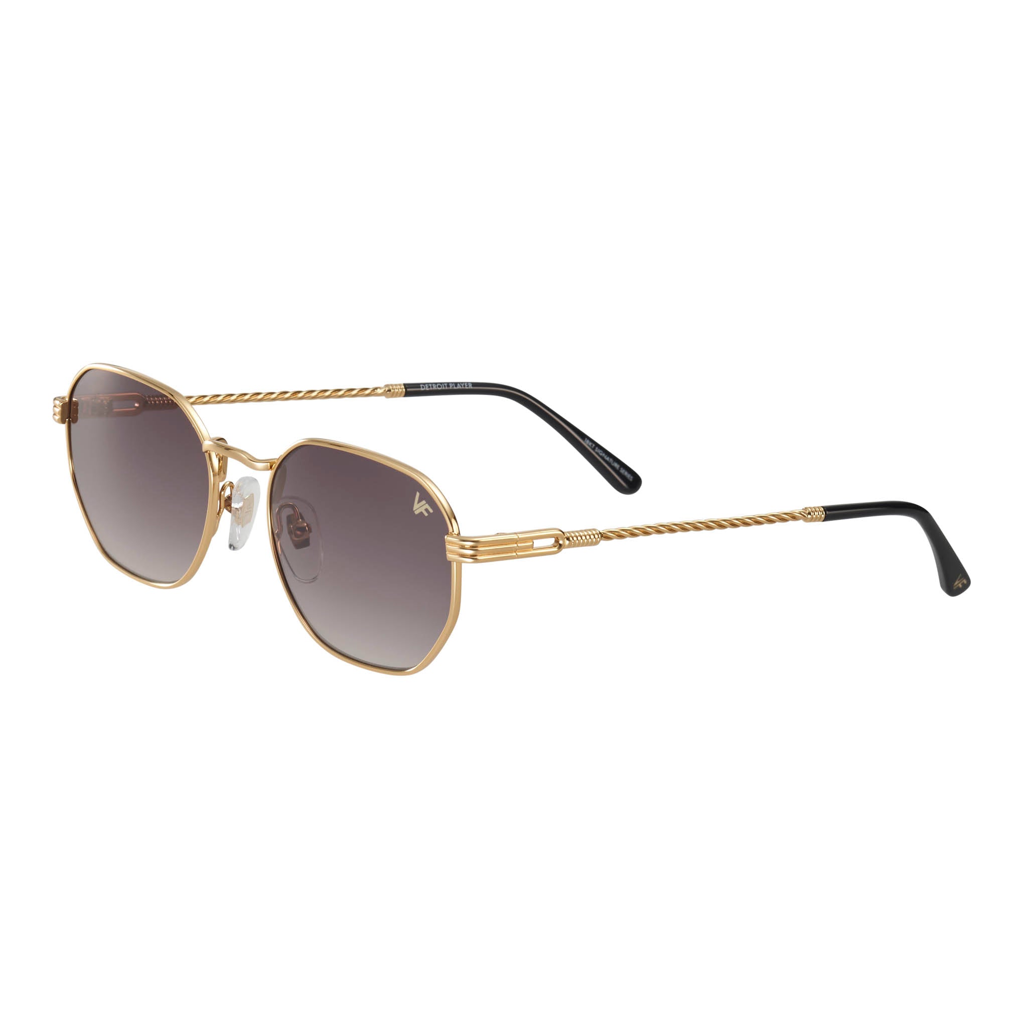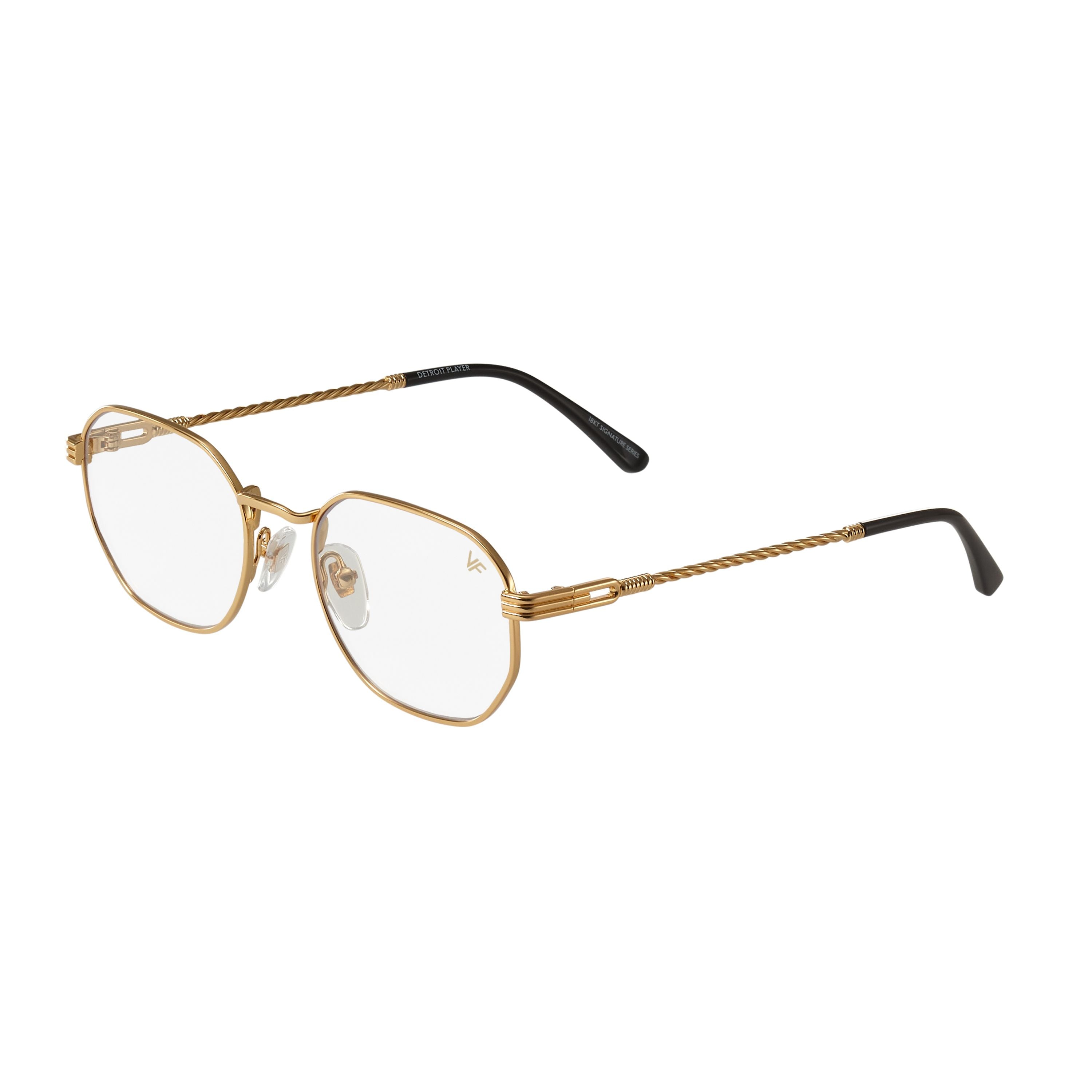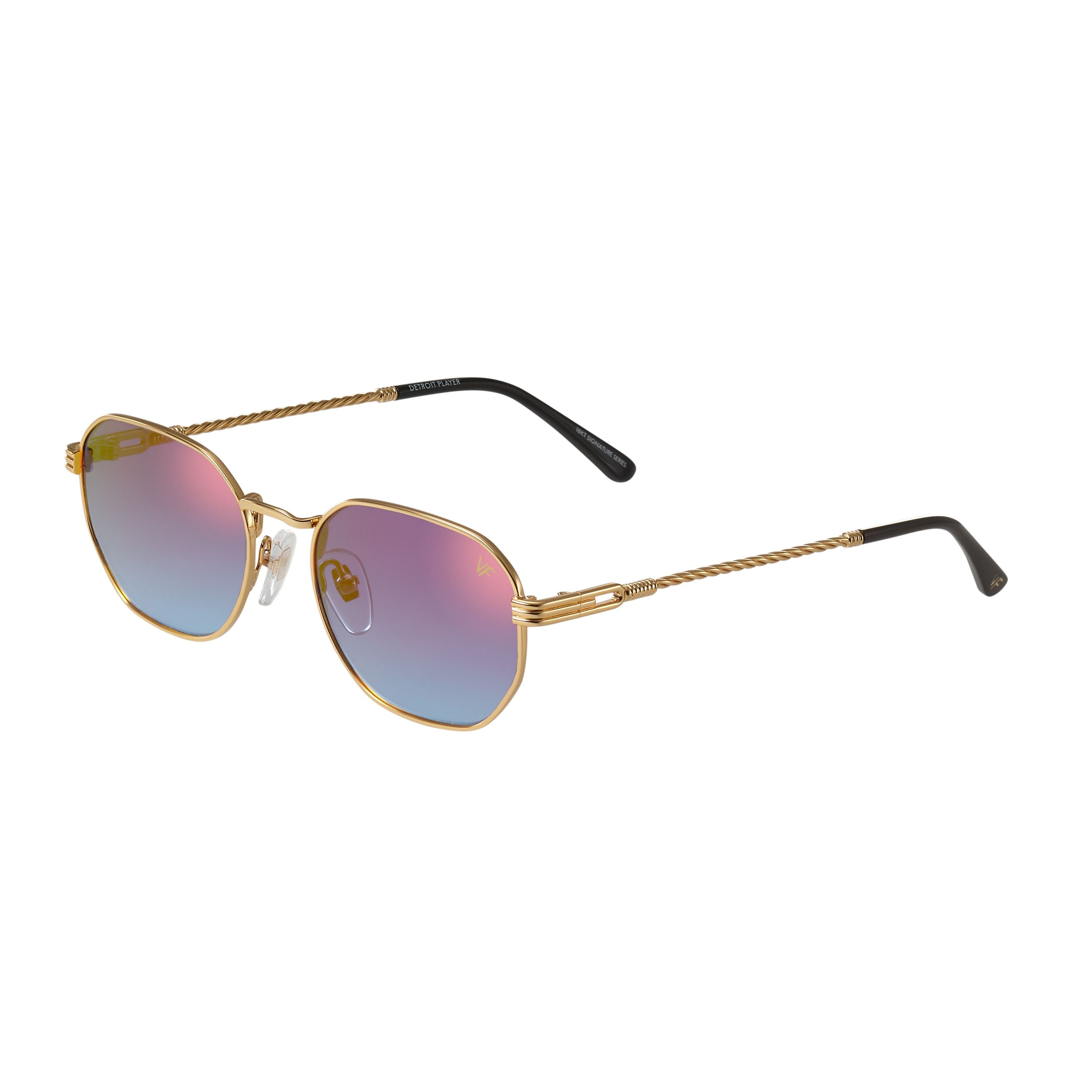 Made using vintage machinery and techniques, the Detroit Player Signature Series features an 18KT yellow gold frame and is available in several lens options. Vintage Frames Company pays homage to its vintage archive by mixing historical fashion references with today's pop culture to create timeless collections of sunglasses and eyewear. The Detroit Player Signature Series is a unisex style and can be worn to elevate any look; from day to night.