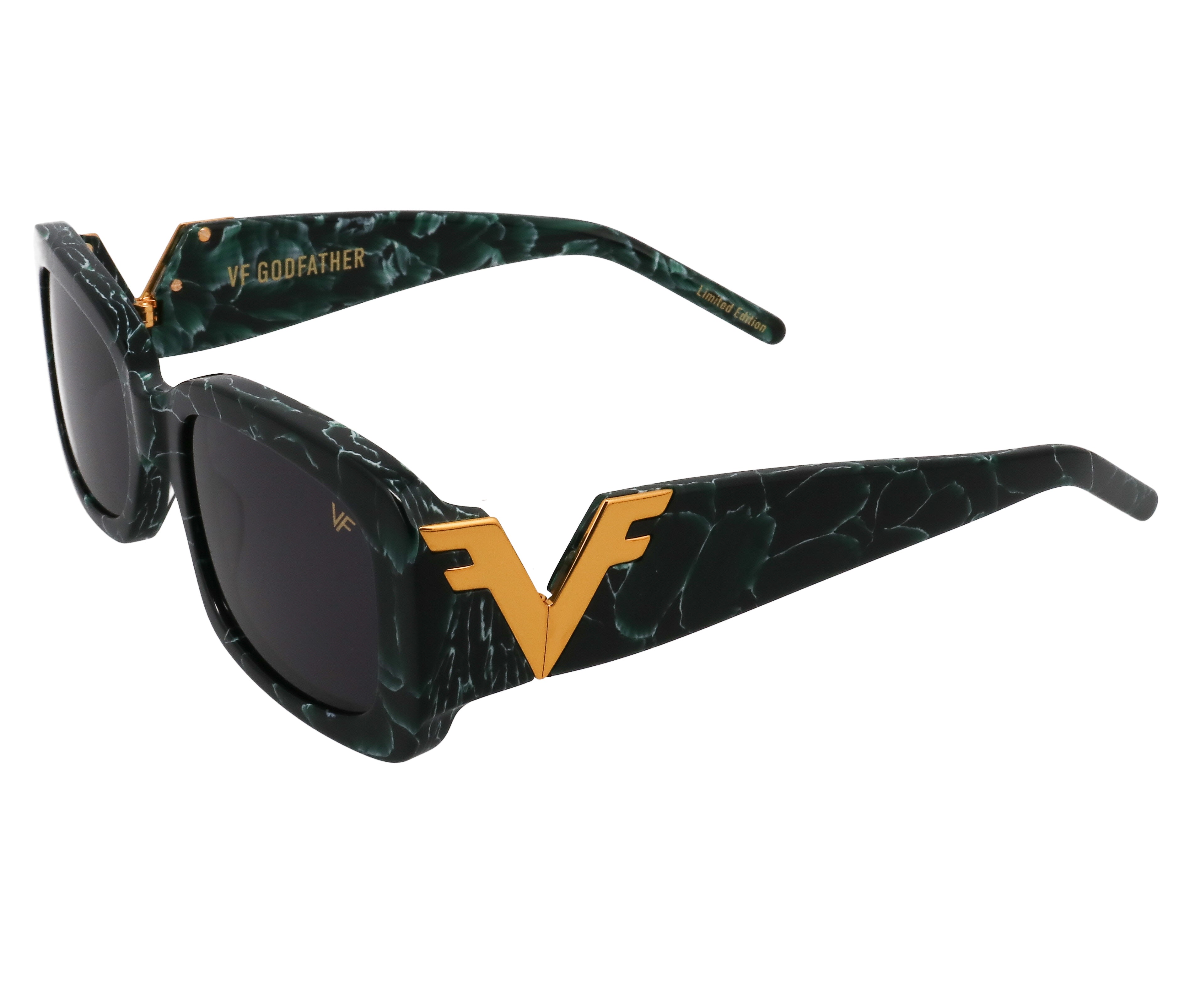 A frame is meant to empower you, it provides a barrier between your eyes and the rest of the world. We constantly strive to make our frames bold in design, but powerful in statement. The sleek acetate lines, combined with the bold cues of 24KT gold, make The Godfather an instant classic in the ever growing Vintage Frames line. Our iconic marble green acetate is finally paired with the classic the jet-black lens leaving an everlasting impression on anyone that comes your way.