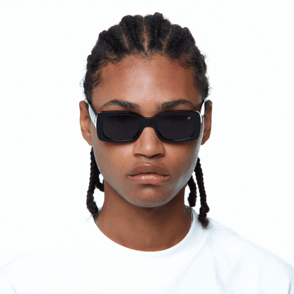 Our VF line takes inspiration from people, places, and objects that move us. Designed in the streets of NYC, the VF Harlem showcases our love for architecture and surroundings. The custom acetate is paired with our very unique lenses. The combination, makes a bold sunglass statement. Our black acetate frames paired with black lenses is a classic staple for any New Yorker's aesthetic.