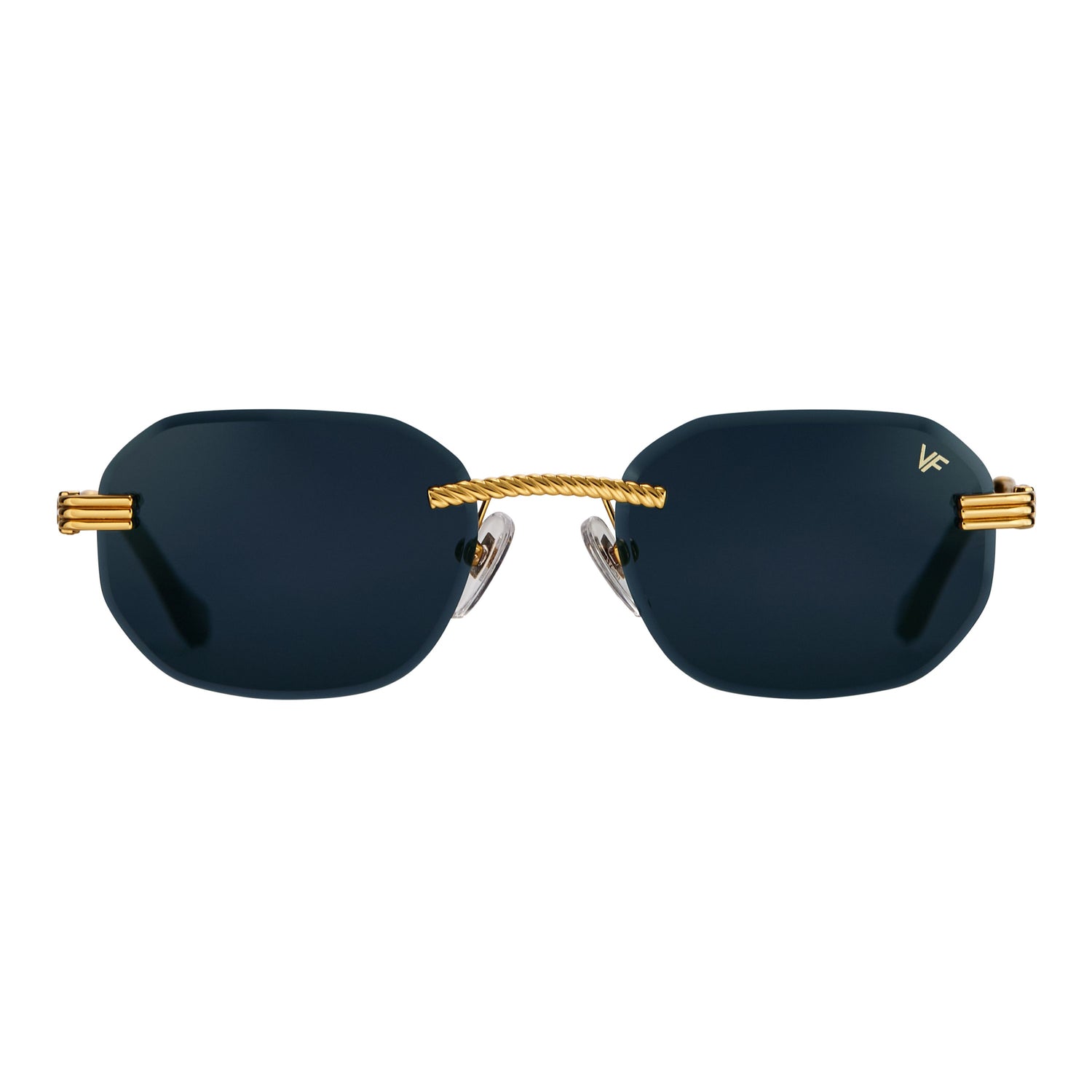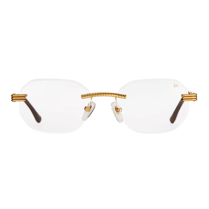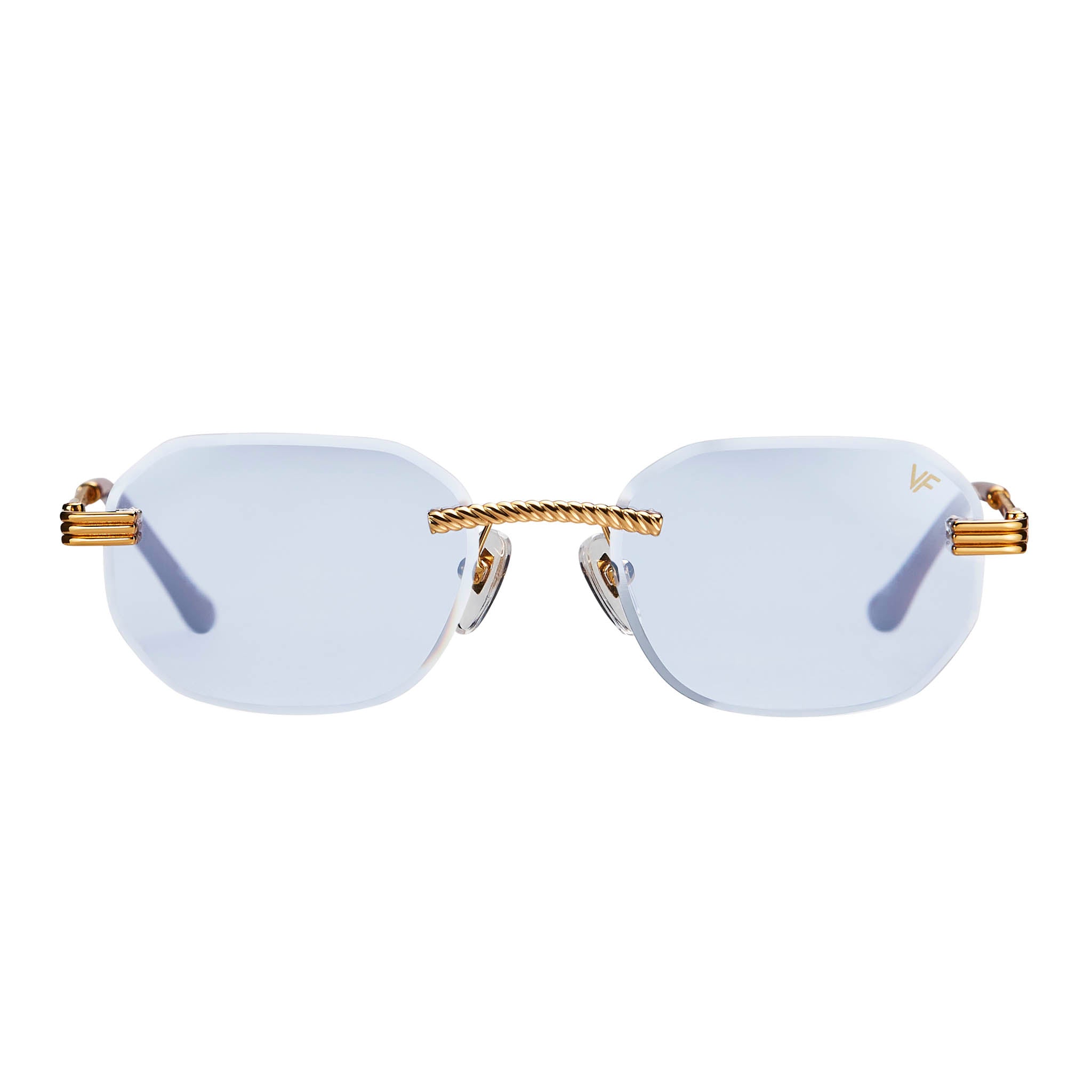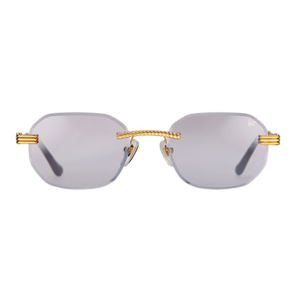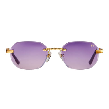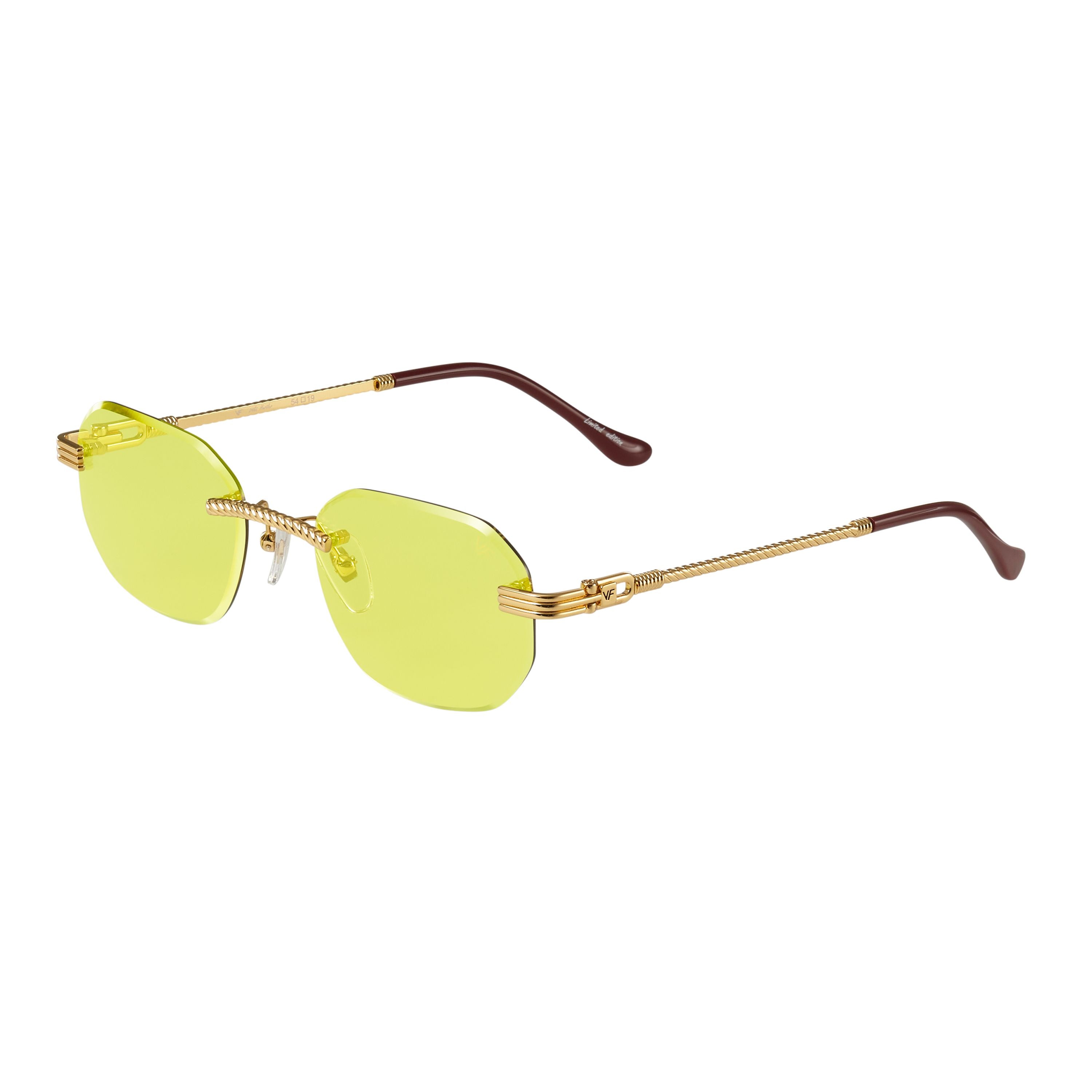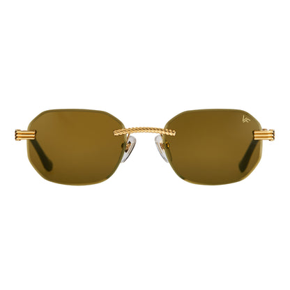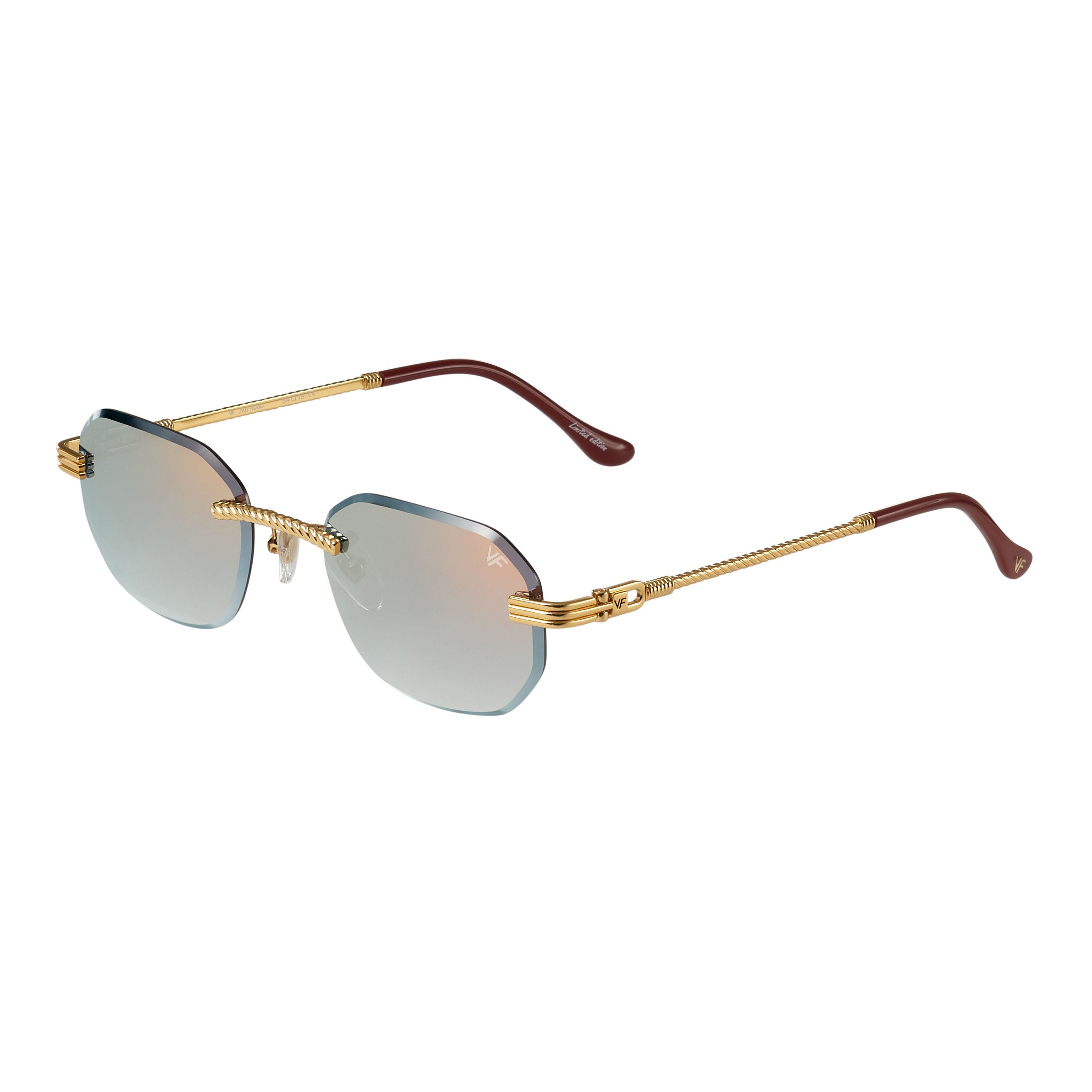 The classic VF hustler silhouette is now available in a rimless style. The Hustler drill mount features 24KT yellow gold hardware and our classic rope detailed arms. Available in an array of our iconic sun lenses and is also available for prescription.