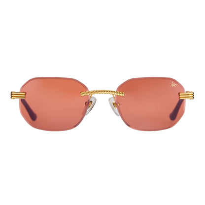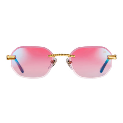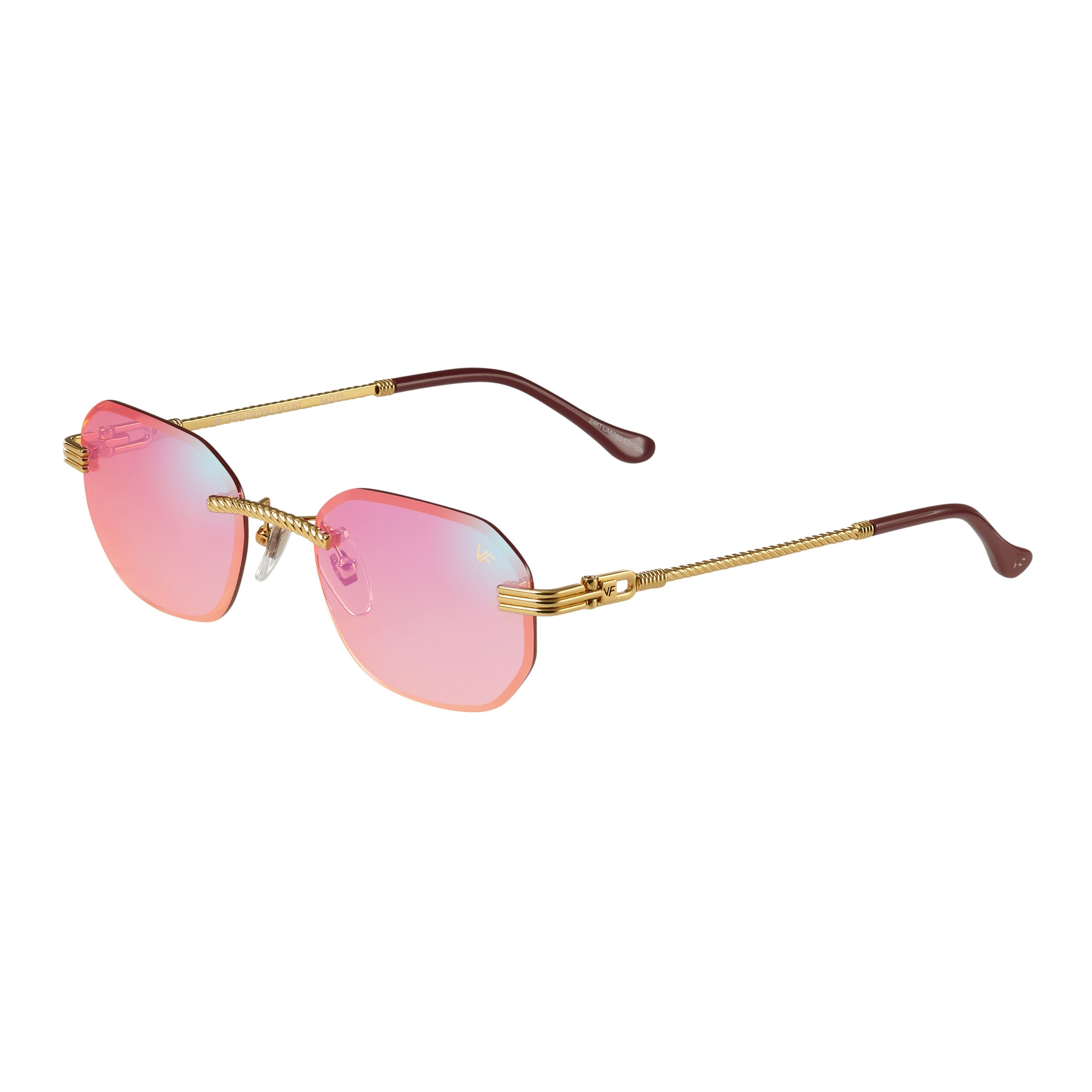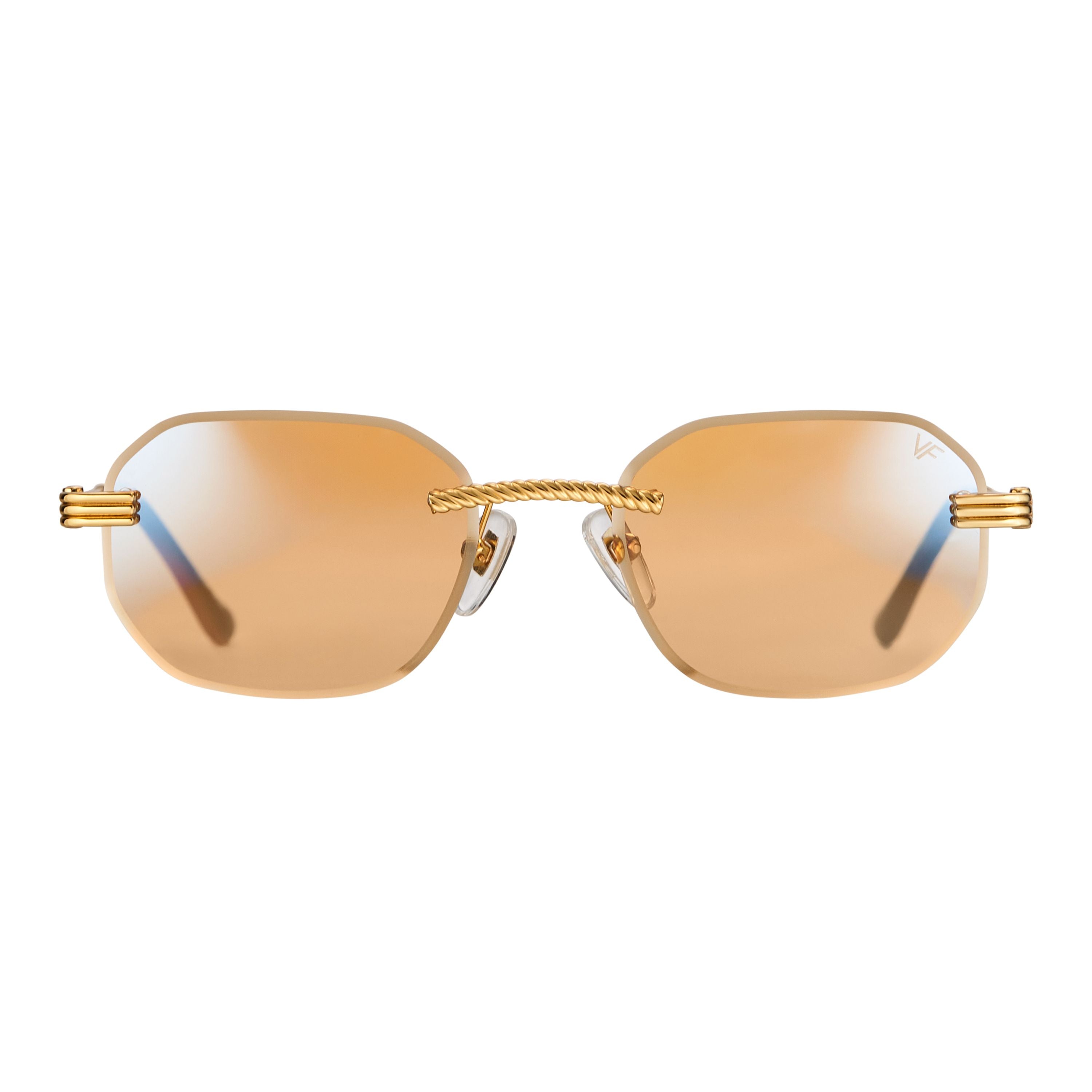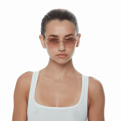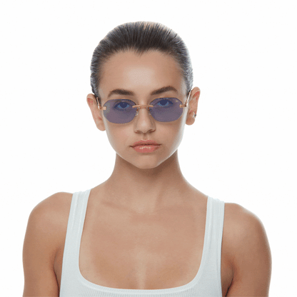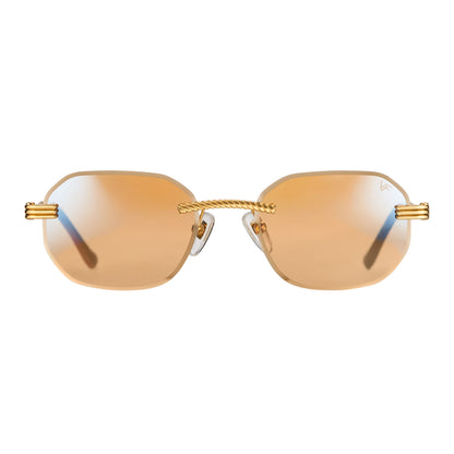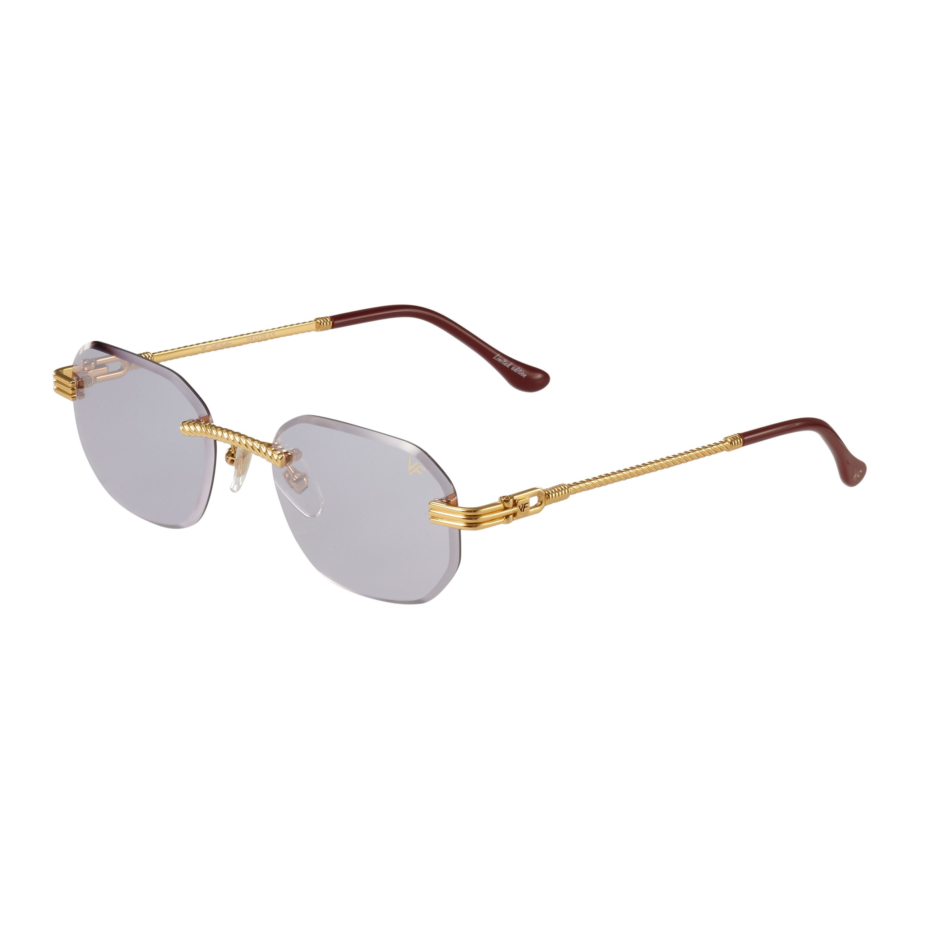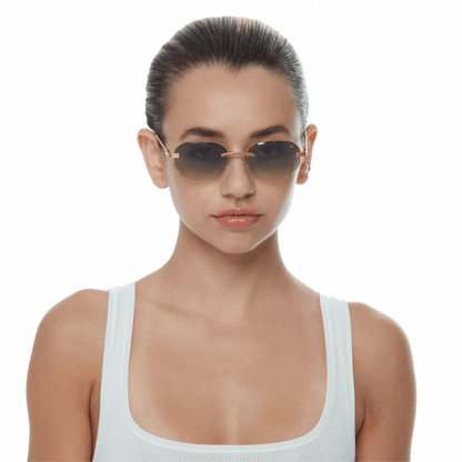 The classic VF hustler silhouette is now available in a rimless style. The Hustler drill mount features 24KT yellow gold hardware and our classic rope detailed arms. Available in an array of our iconic sun lenses and is also available for prescription.