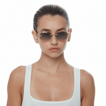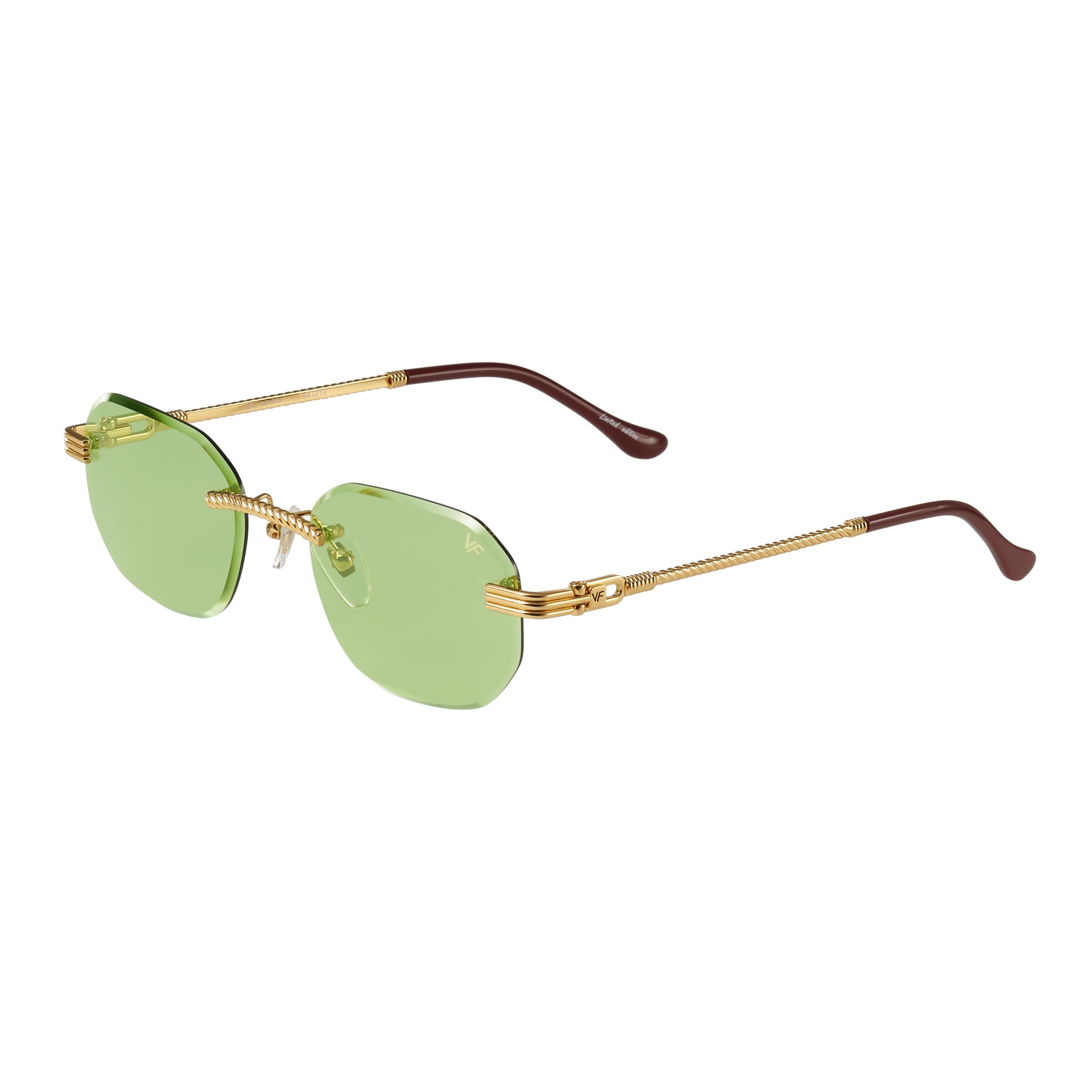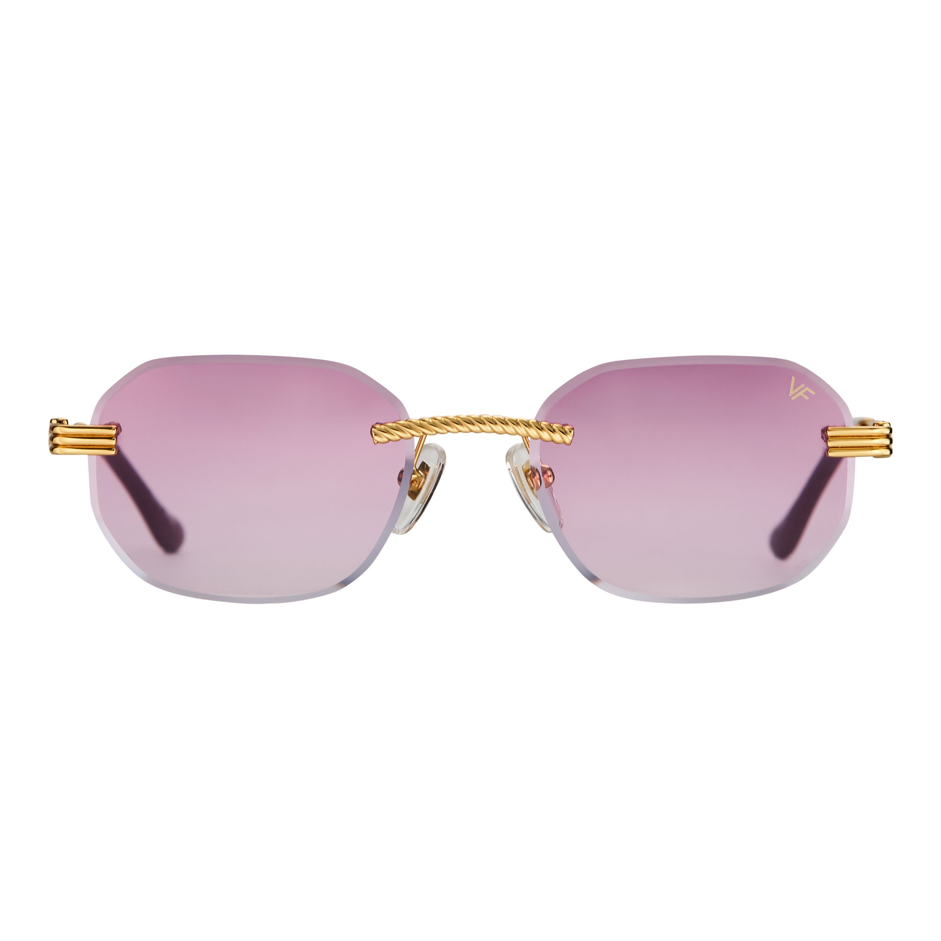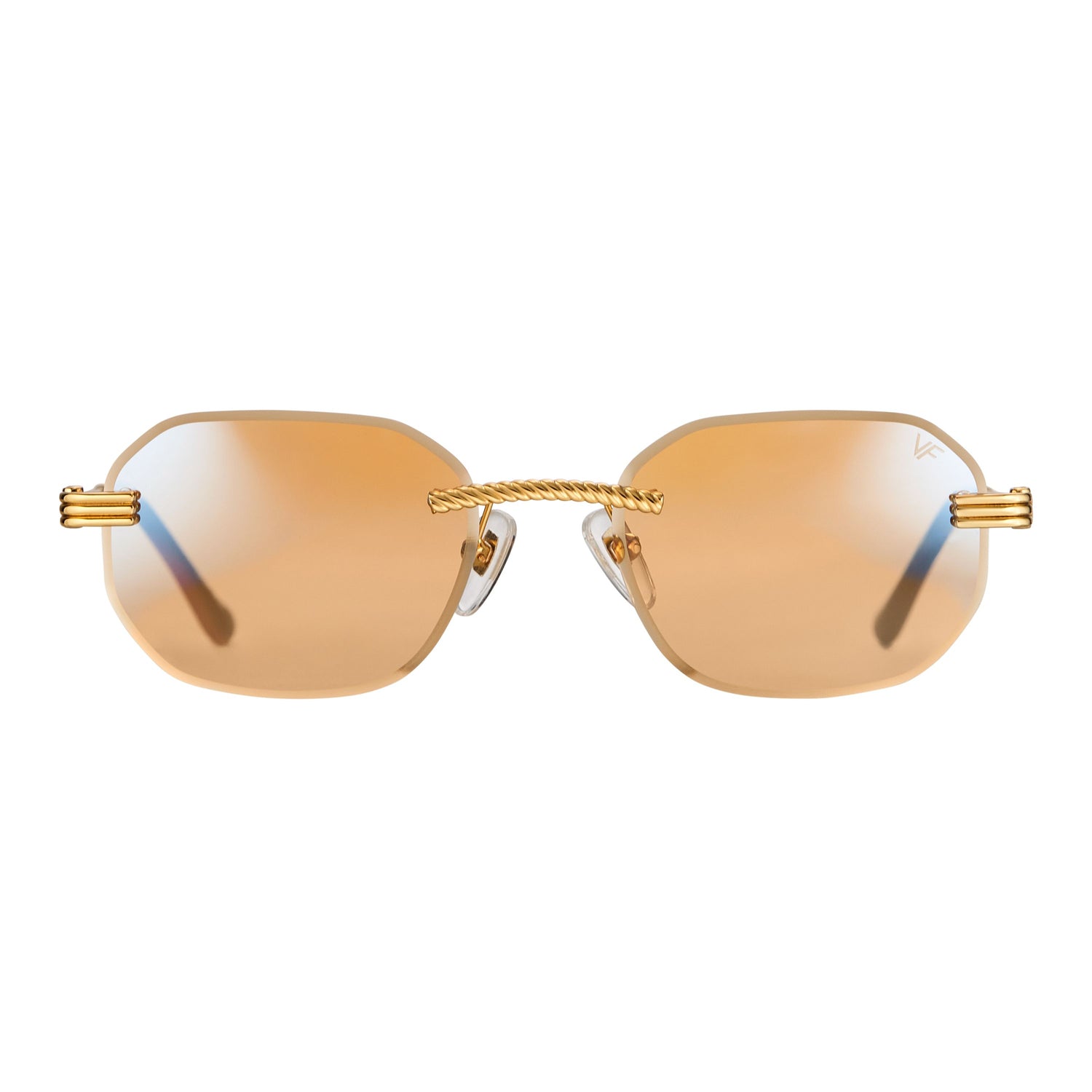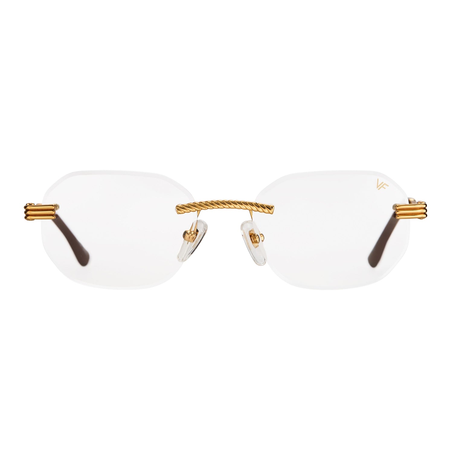 The classic VF hustler silhouette is now available in a rimless style. The Hustler drill mount features 24KT yellow gold hardware and our classic rope detailed arms. Available in an array of our iconic sun lenses and is also available for prescription.
