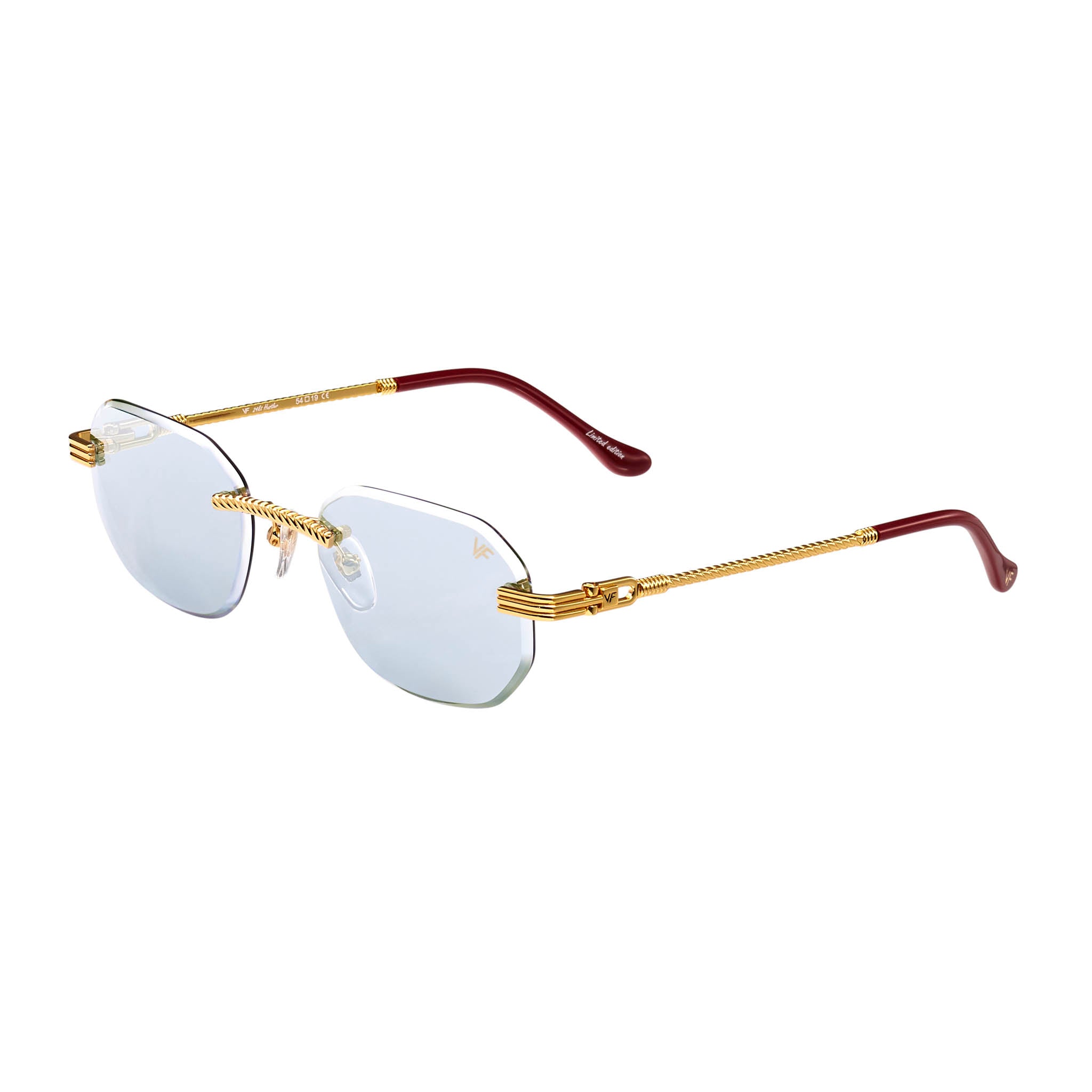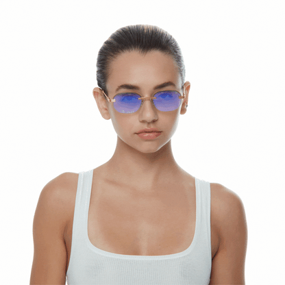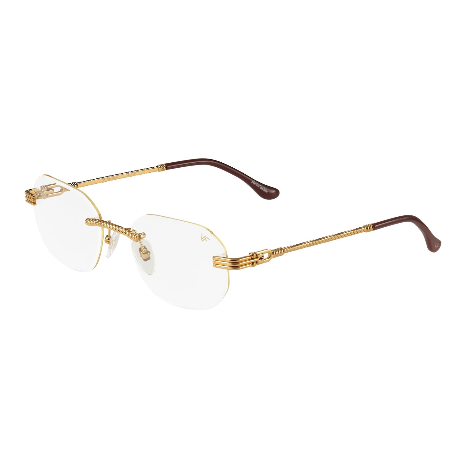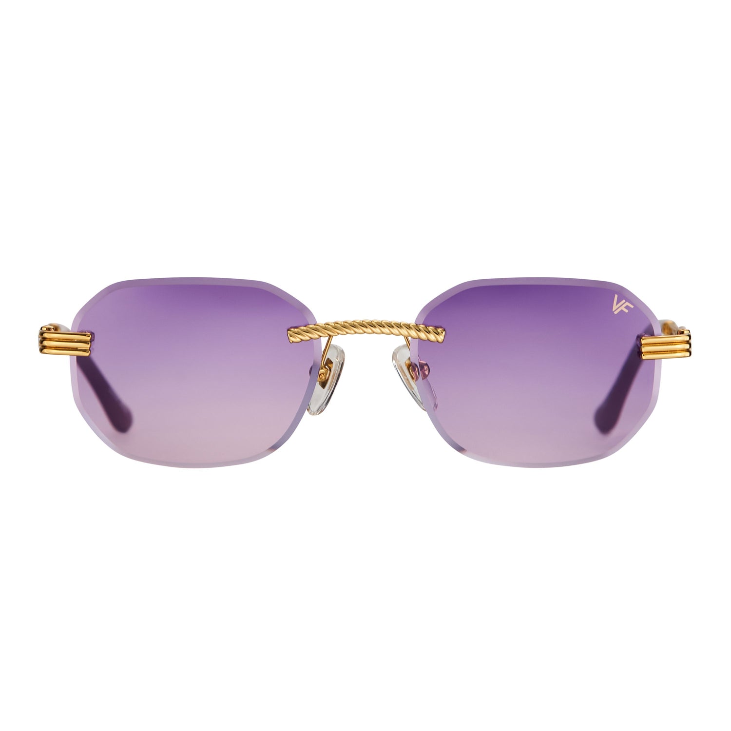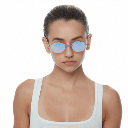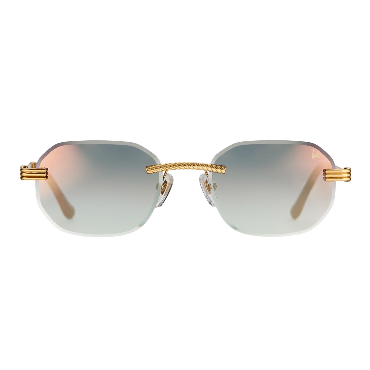 The classic VF hustler silhouette is now available in a rimless style. The Hustler drill mount features 24KT yellow gold hardware and our classic rope detailed arms. Available in an array of our iconic sun lenses and is also available for prescription.