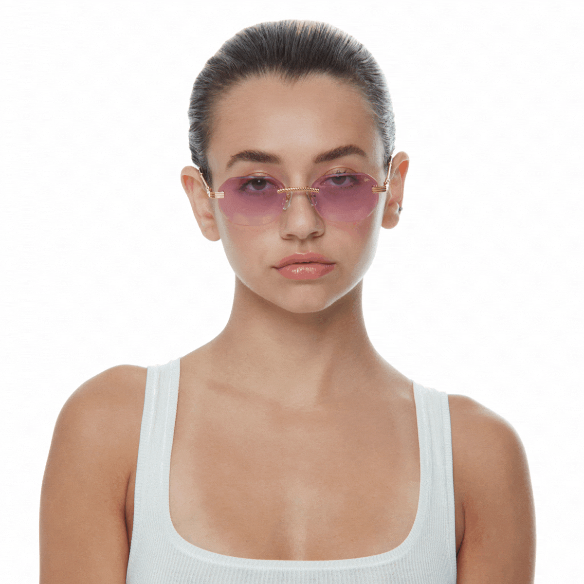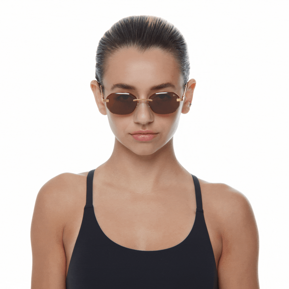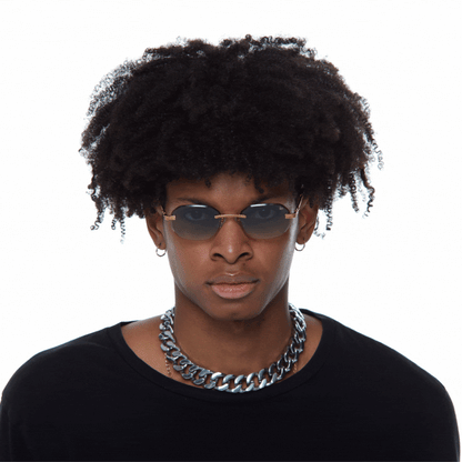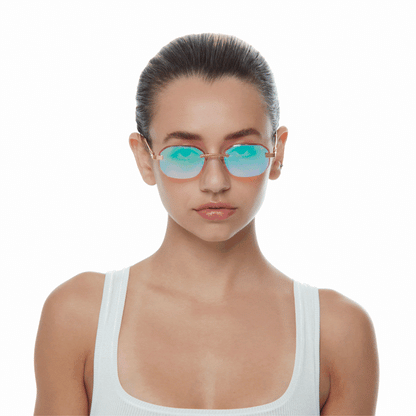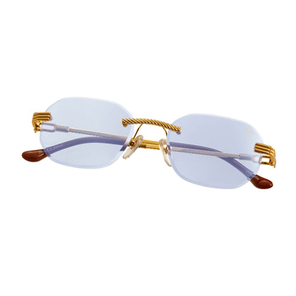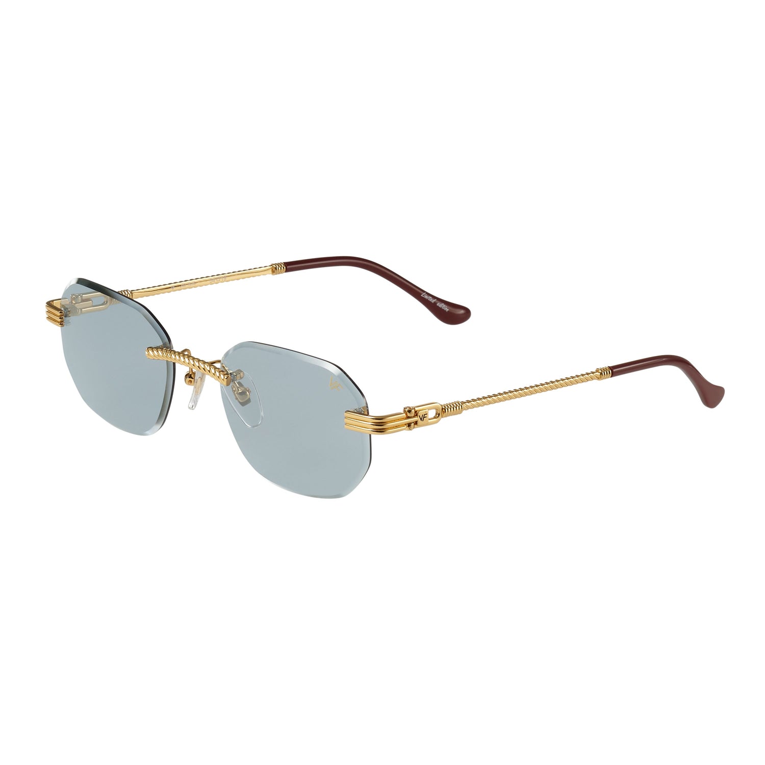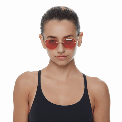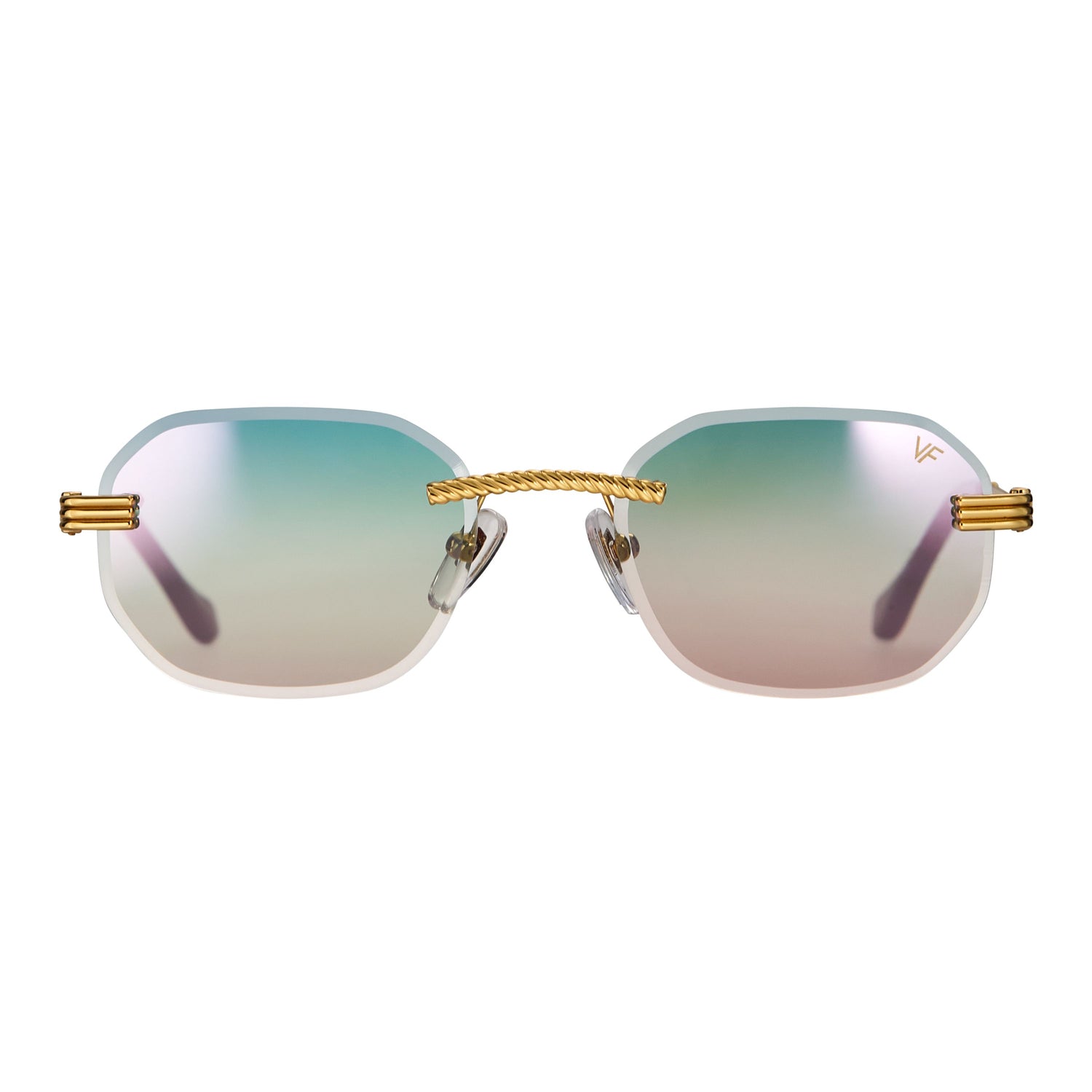 The classic VF hustler silhouette is now available in a rimless style. The Hustler drill mount features 24KT yellow gold hardware and our classic rope detailed arms. Available in an array of our iconic sun lenses and is also available for prescription.