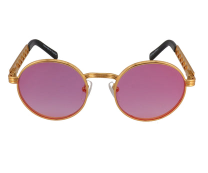 Crisp and rich in design, the VF Jacques Cartier 508 glasses are a refreshing addition to any outfit. The gold bridge-like design on both sides of the Vintage Frames eyewear compliment the powder green lenses to accentuate the character of the person wearing the shades. These bold yet classic round glasses are in a league of their own, and let’s face it, you are too. Match your intricacy with an intricate pair of frames.