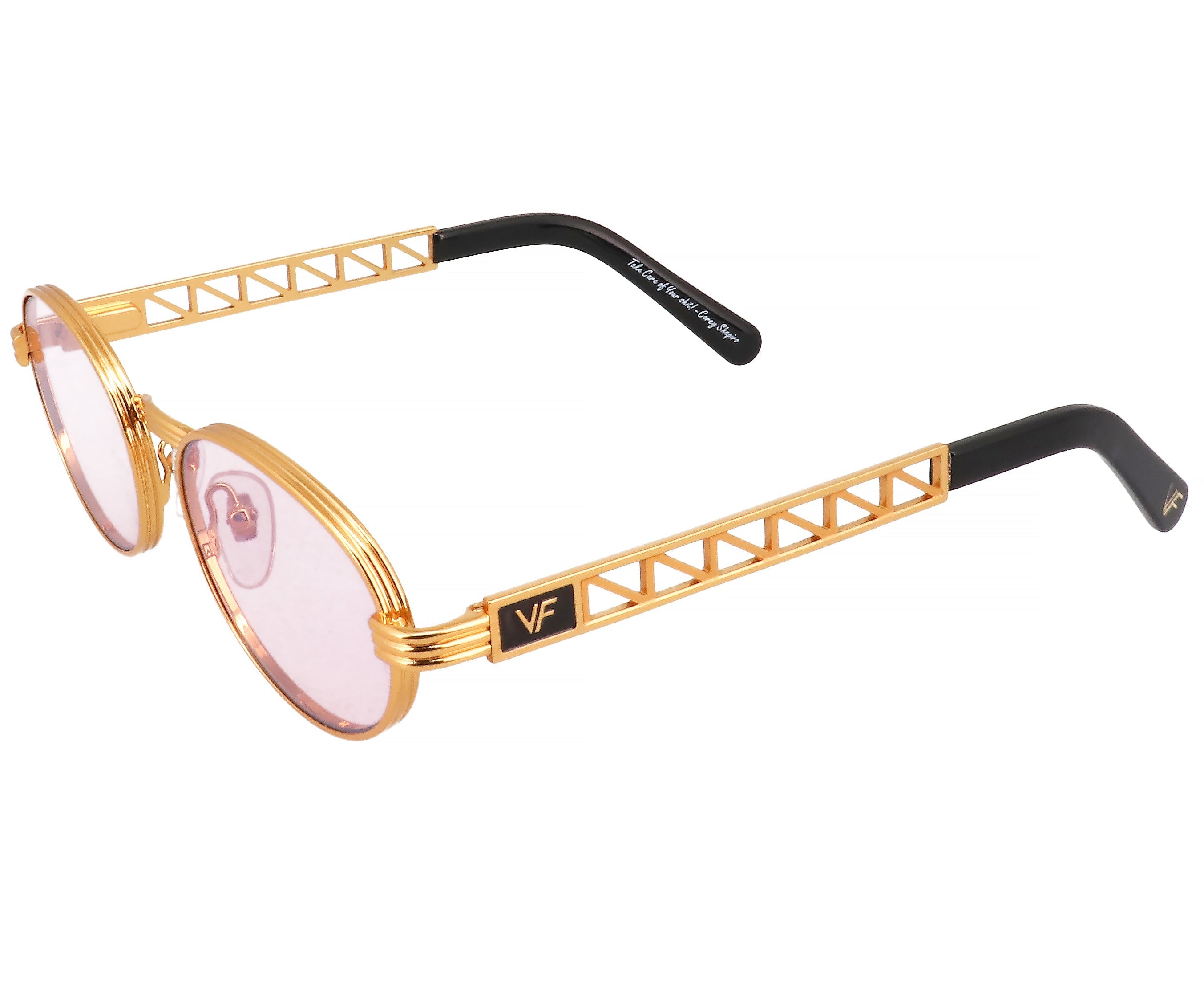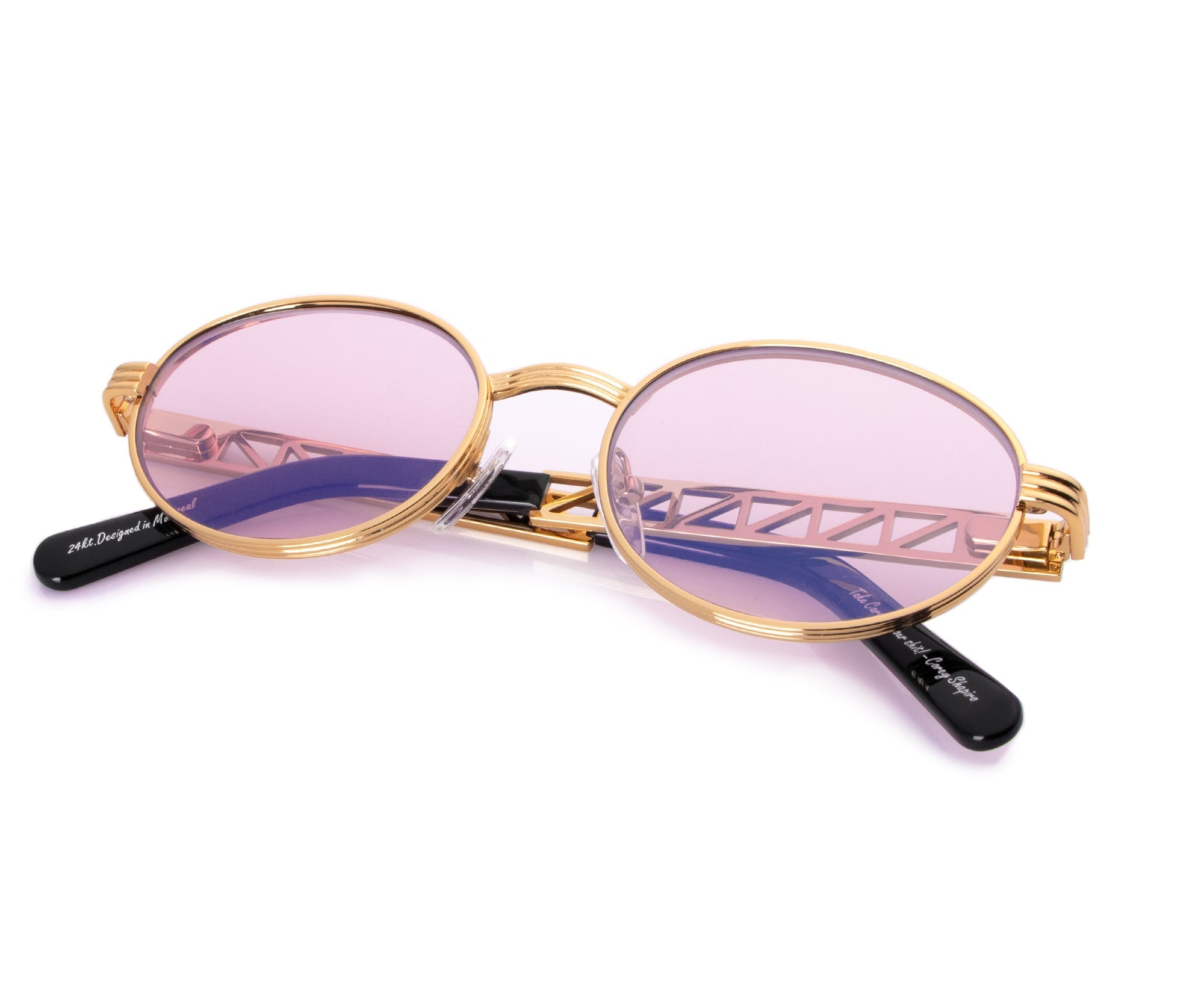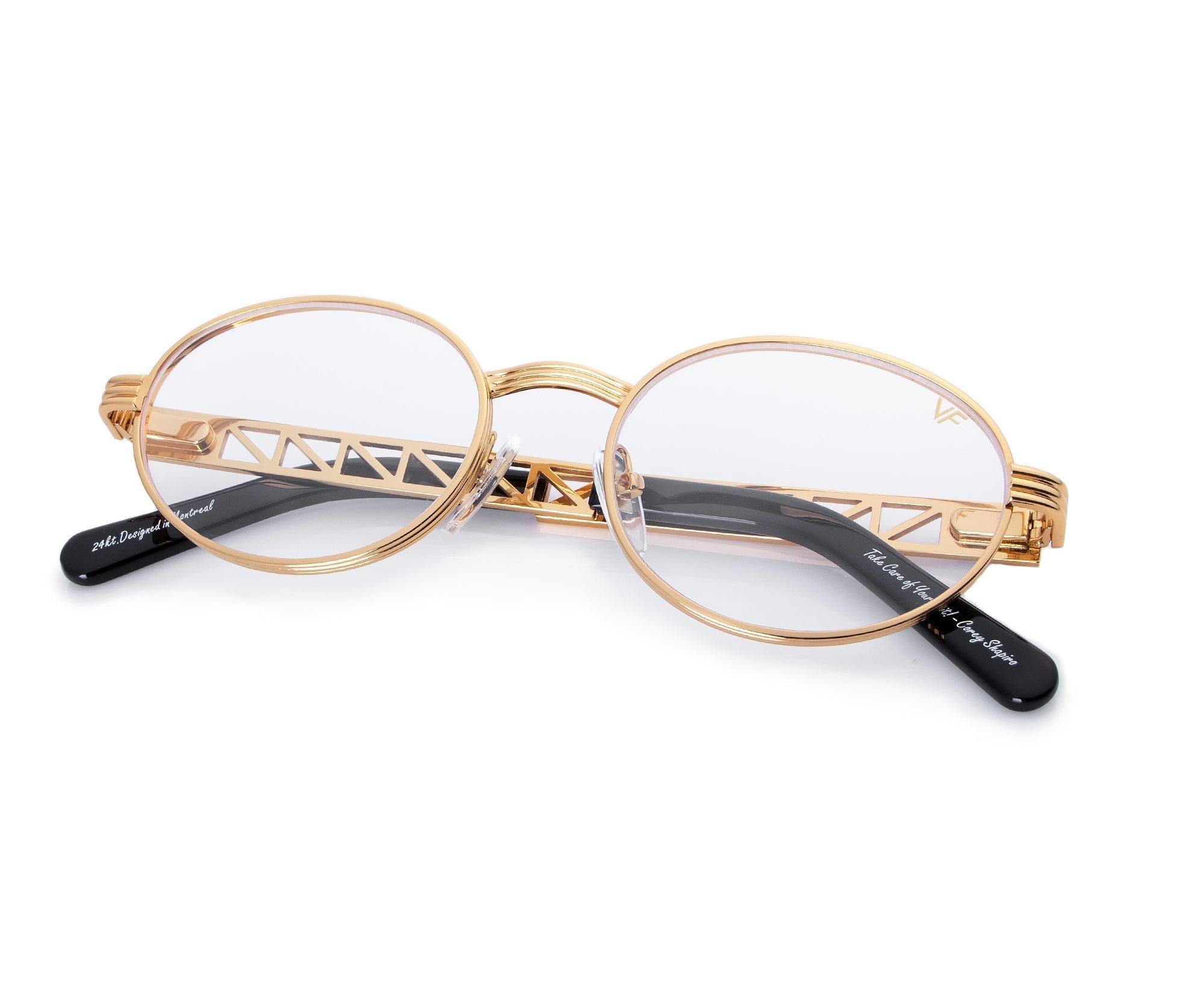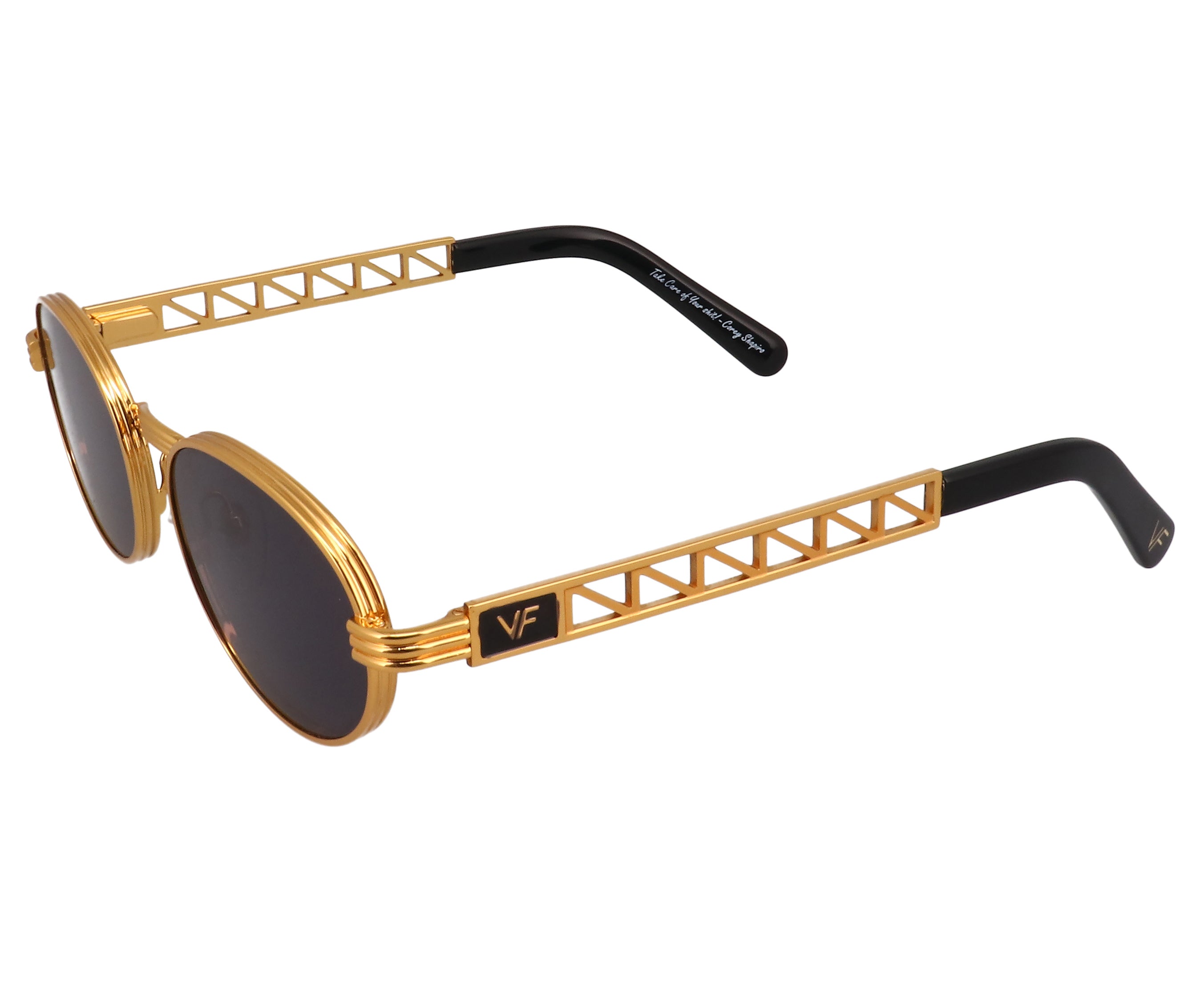 Made using vintage machinery and techniques, the Pac Jacques Cartier Edition features a 24KT yellow gold frame and is available in several lens options. Vintage Frames Company pays homage to its vintage archive by mixing historical fashion references with today's pop culture to create timeless collections of sunglasses and eyewear. The Pac Jacques Cartier Edition is a unisex style and can be worn to elevate any look; from day to night.