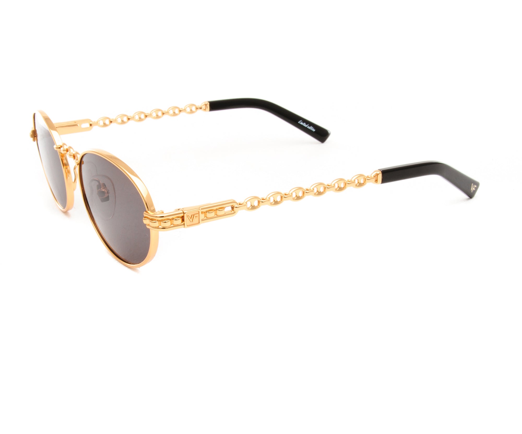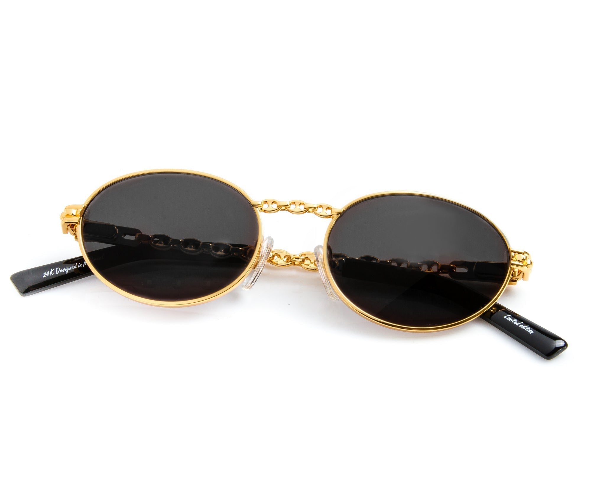 Made using vintage machinery and techniques, the Pac Mariner Edition features a 24KT yellow gold frame and is available in several lens options. Vintage Frames Company pays homage to its vintage archive by mixing historical fashion references with today's pop culture to create timeless collections of sunglasses and eyewear. The Pac Mariner Edition is a unisex style and can be worn to elevate any look; from day to night.