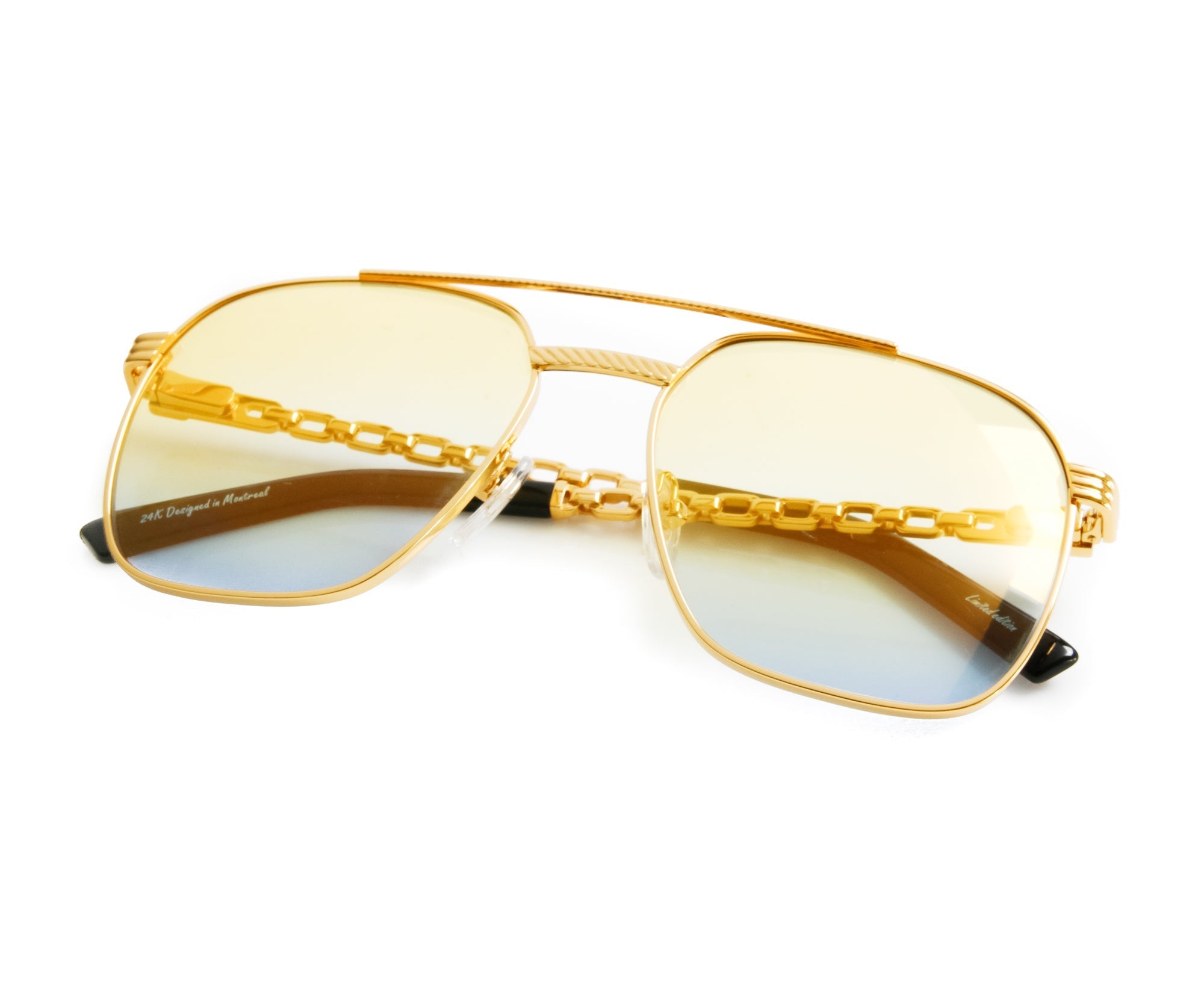 The Narcos Equestrian Edition boasts an intricate 24KT gold plated structure providing more than just the appearance of luxury. The sides of the frames are a testament to Vintage Frames Company’s designs with both sides resembling fine open chain link jewelry.