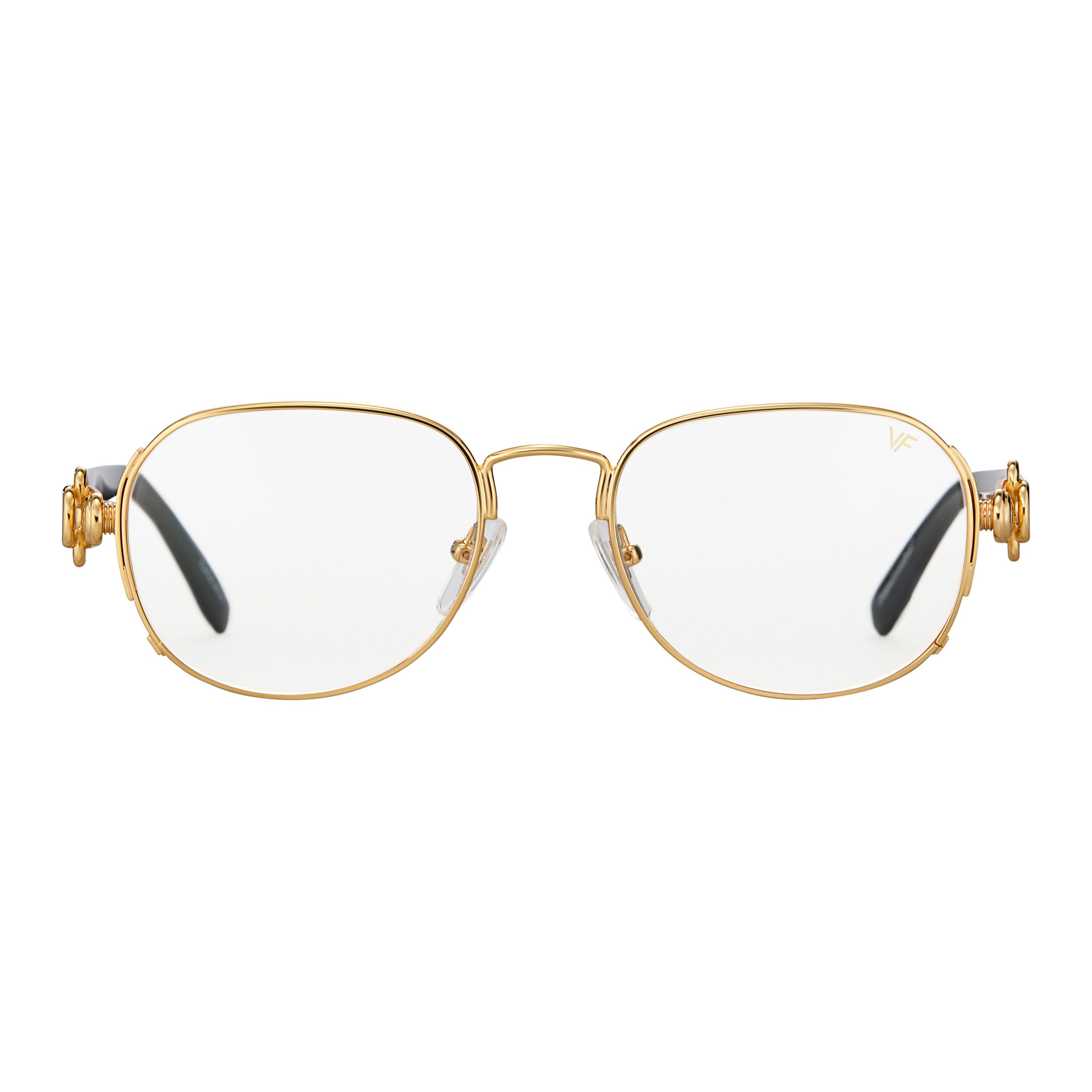 24kt yellow gold plating contrasts with the solid black sides to create a striking piece of eyewear. With ornate gold details on the temples, the VF Notorious has its name for a reason.