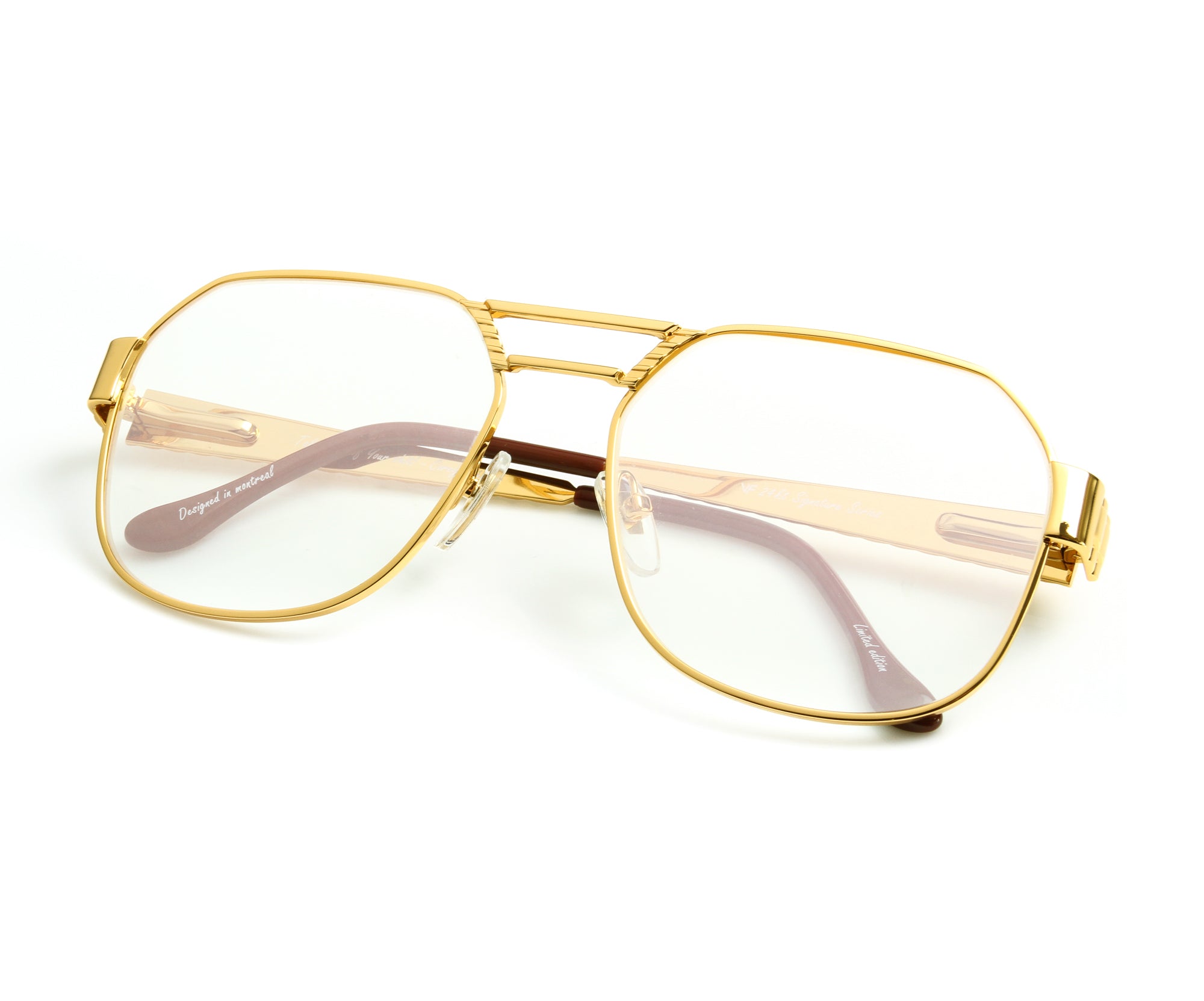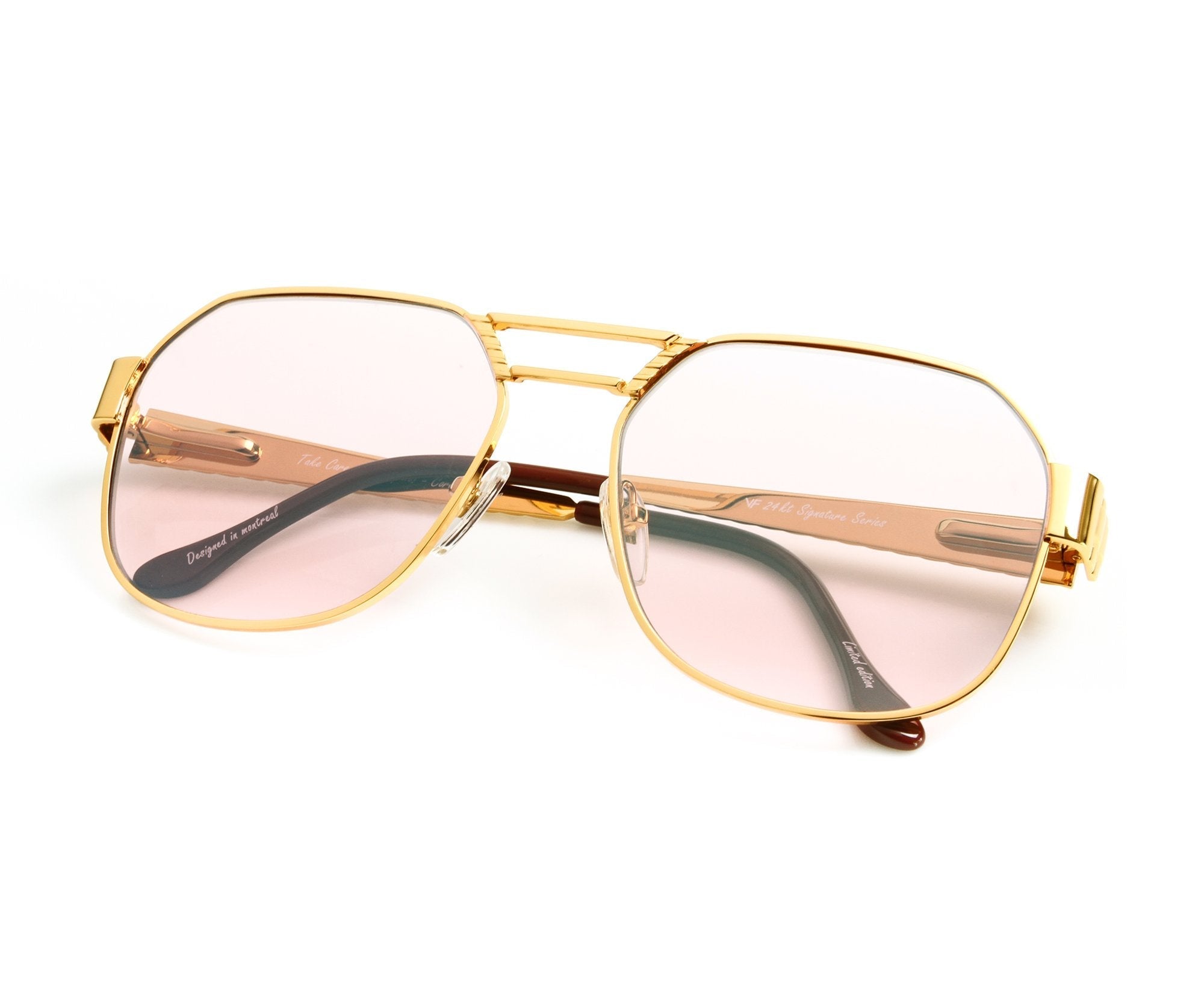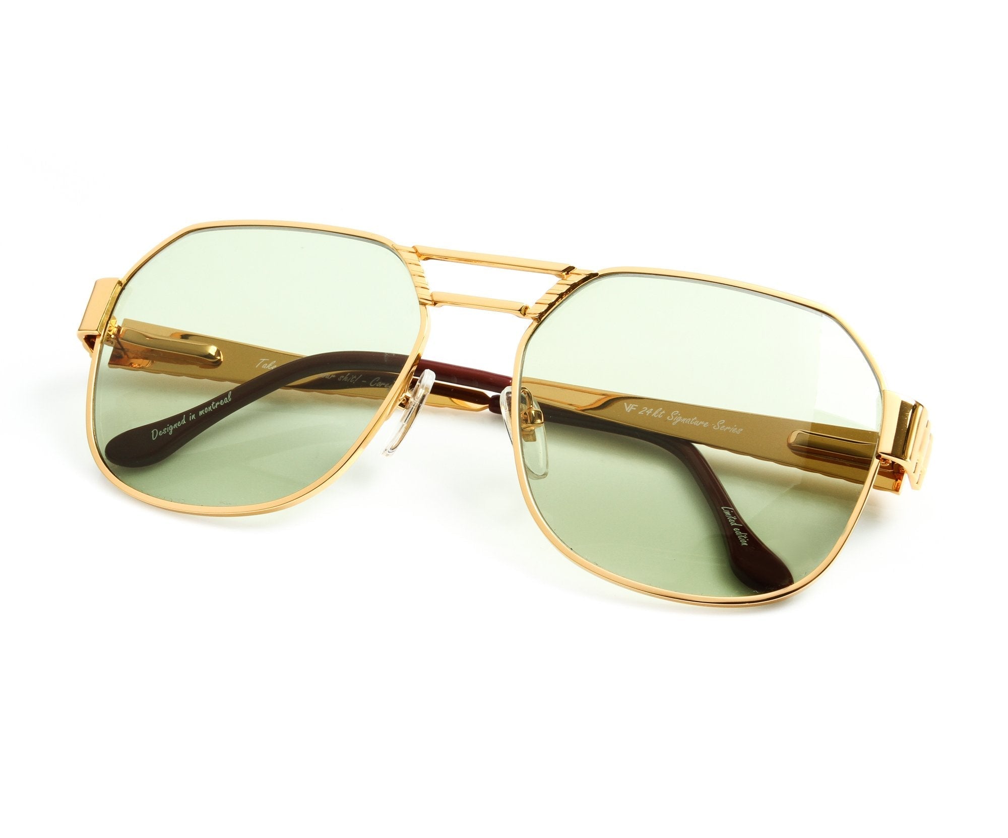 Made using vintage machinery and techniques, the Presidential Masterpiece Edition features a 24KT yellow gold frame and is available in several lens options. Vintage Frames Company pays homage to its vintage archive by mixing historical fashion references with today's pop culture to create timeless collections of sunglasses and eyewear. The Presidential Masterpiece Edition is a unisex style and can be worn to elevate any look; from day to night.