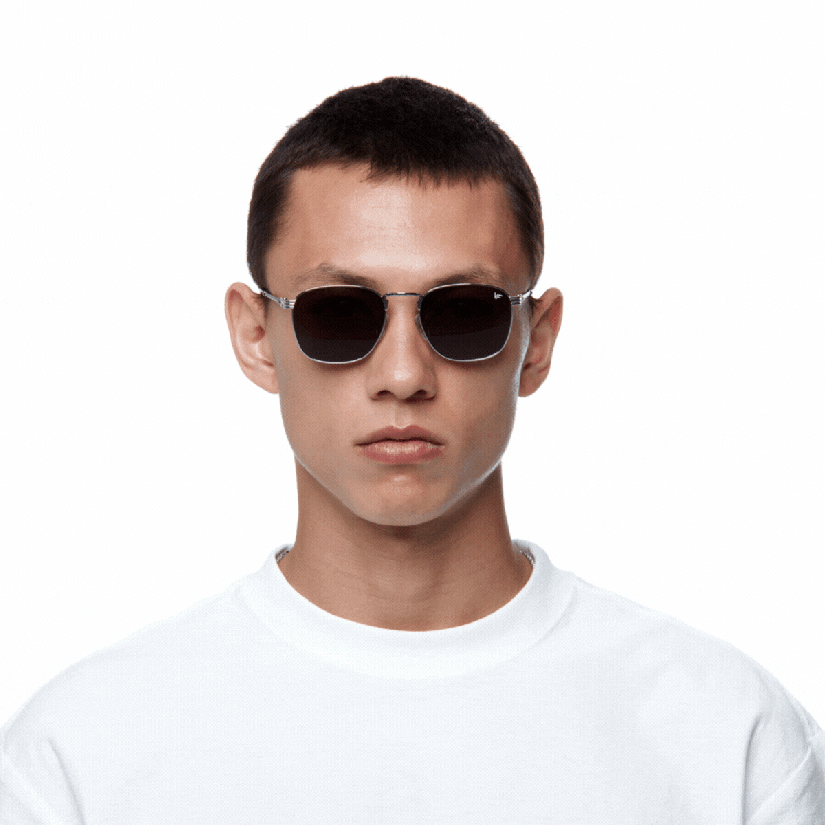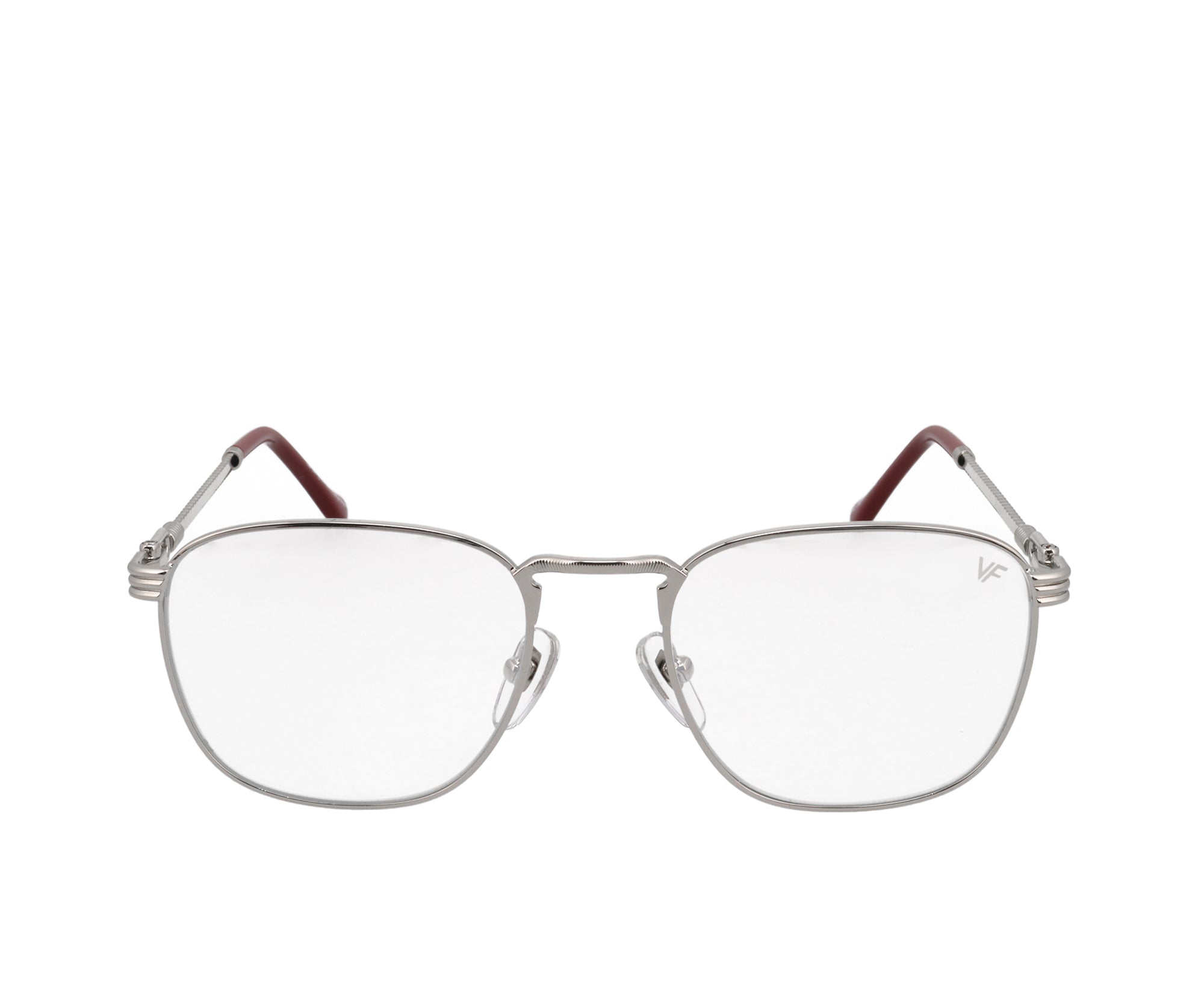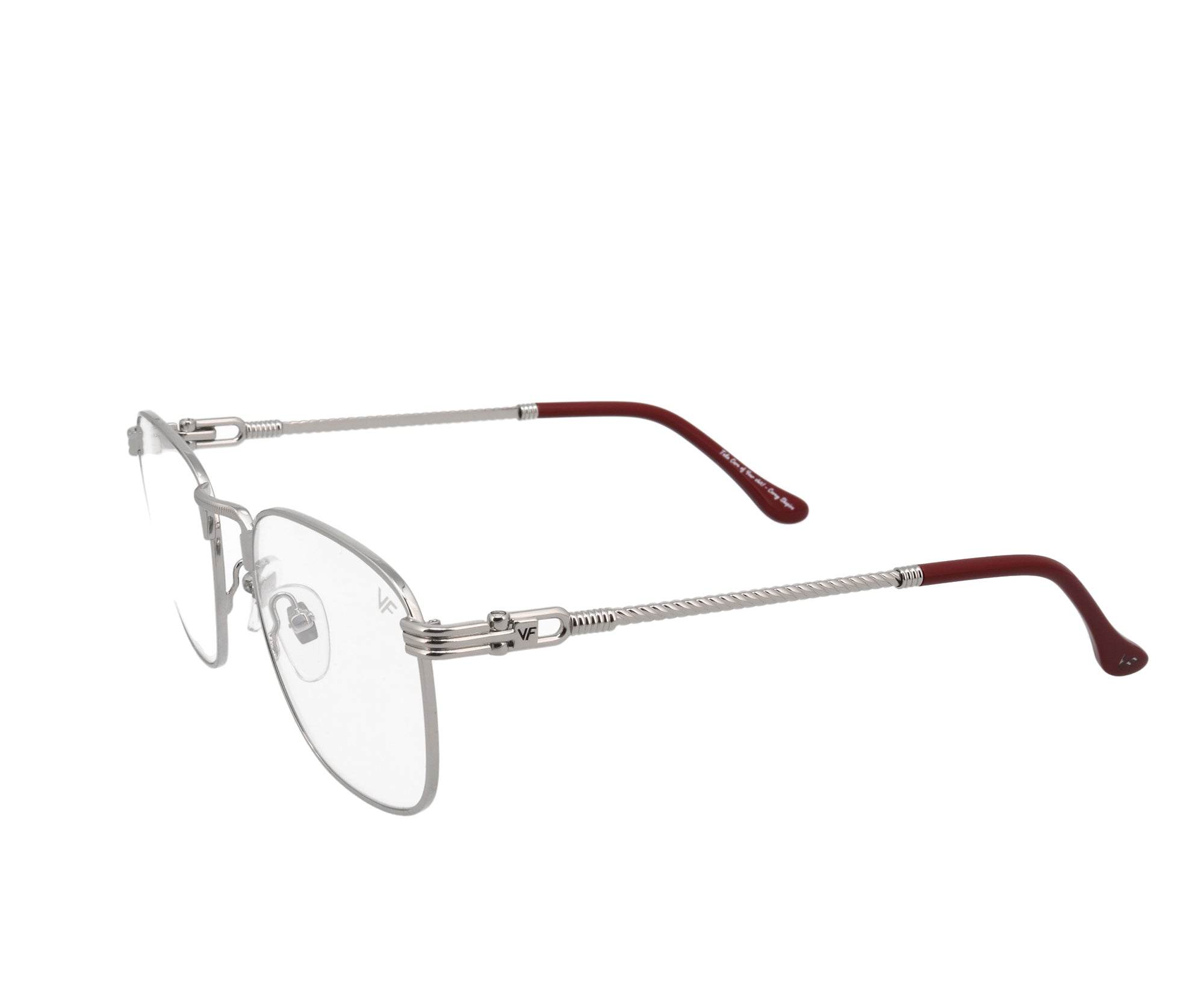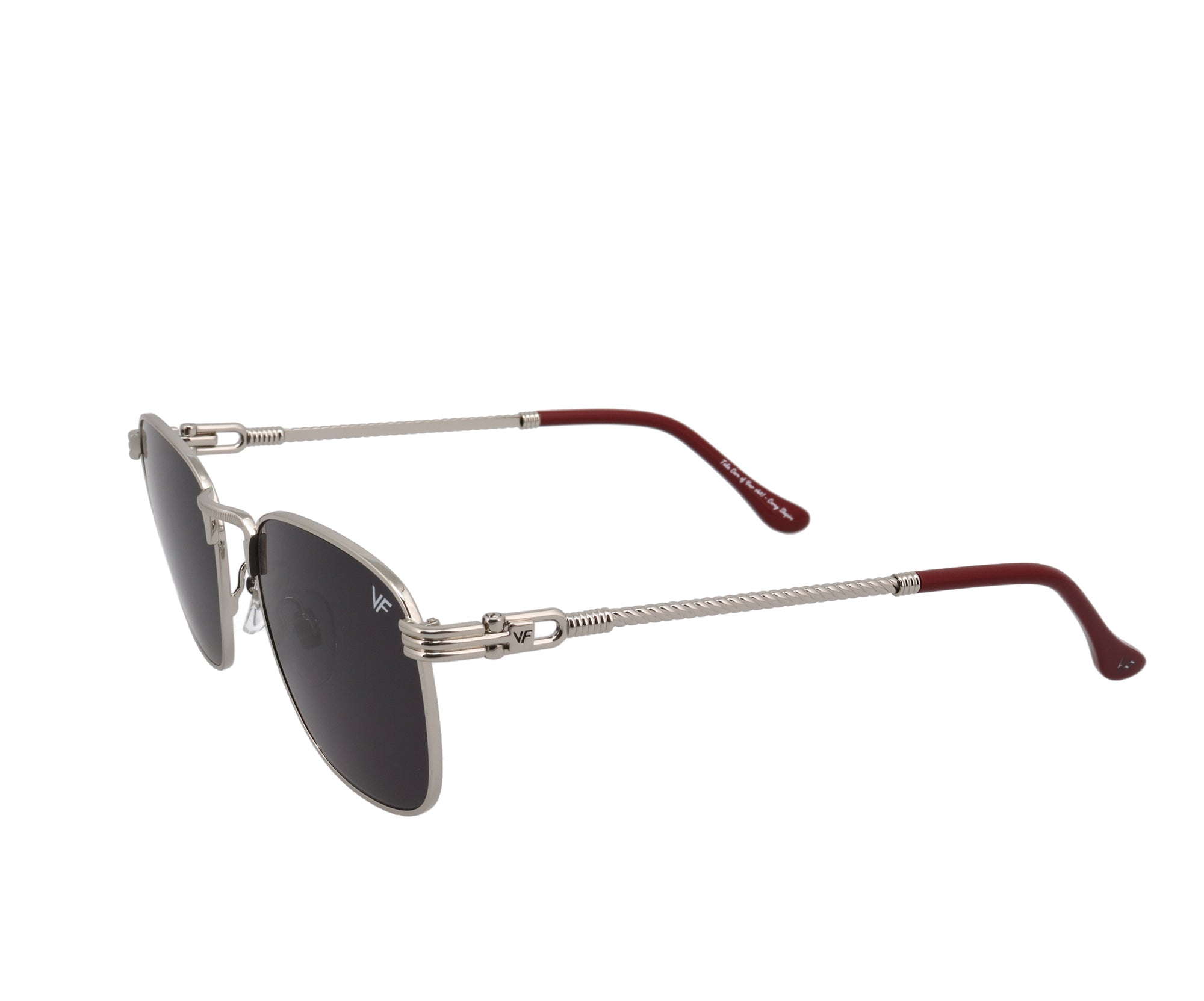 Vintage Frames created a clean and crisp piece of eyewear fit for a rockstar with the VF Pusher 18 KT White Gold. The beauty is in the details with the VF Pusher where a subtle VF logo rests on both sides as well as twisted rope detail in the arms of the classic eyewear.