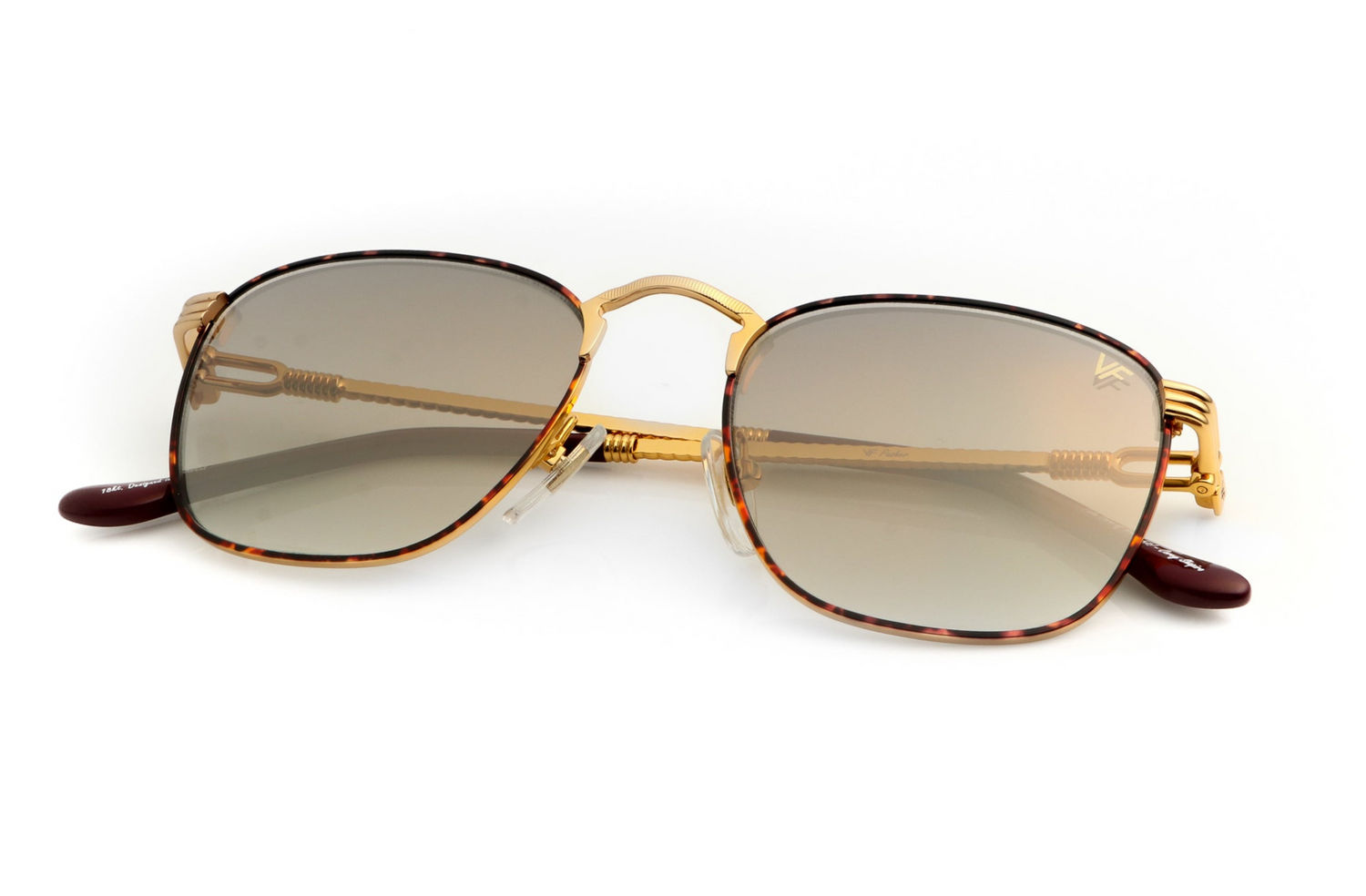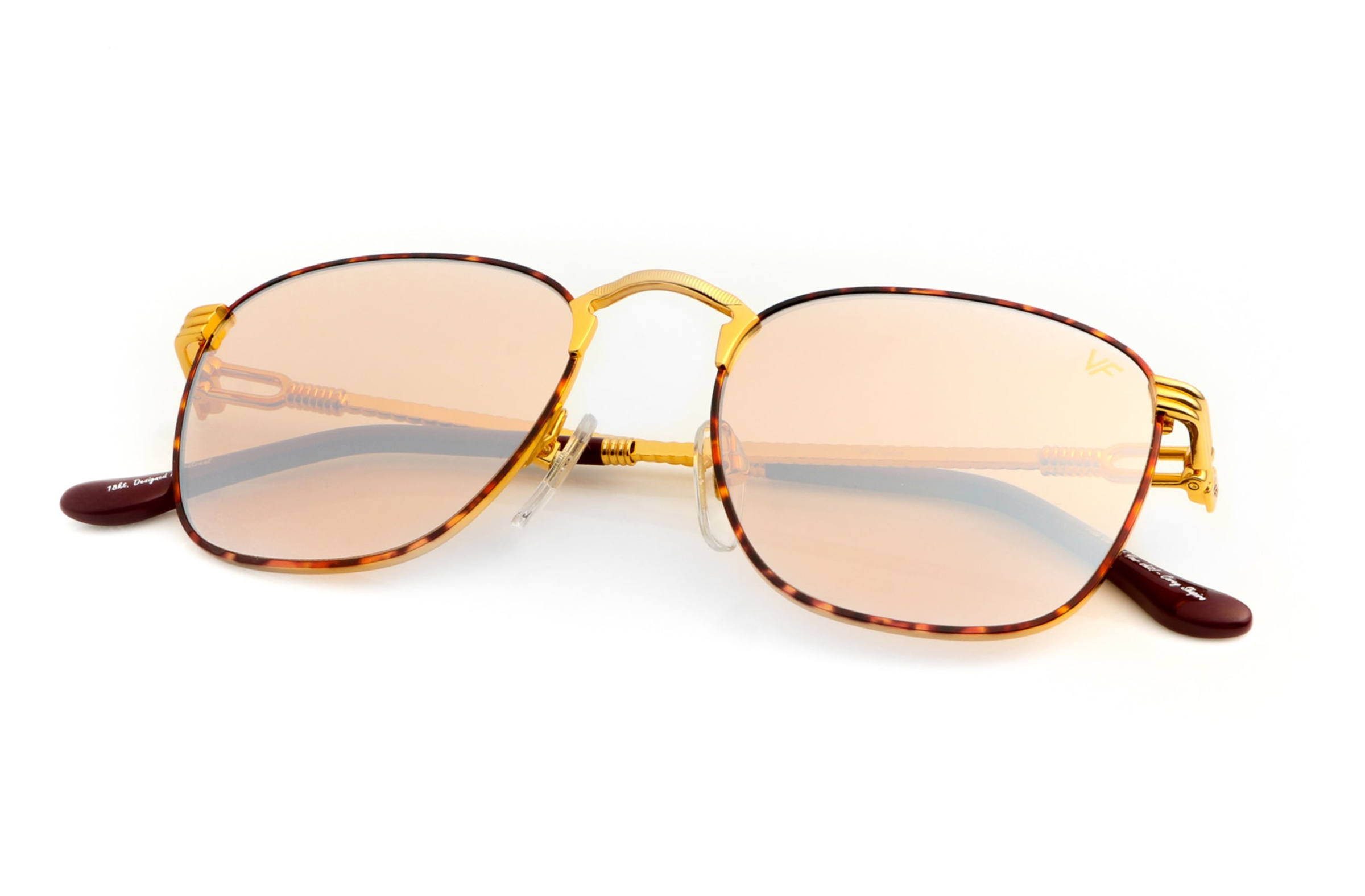 Made using vintage machinery and techniques, the Pusher Tortoise Edition features an 18KT yellow gold frame with a brown tortoise rim and is available in several lens options. Vintage Frames Company pays homage to its vintage archive by mixing historical fashion references with today's pop culture to create timeless collections of sunglasses and eyewear. The Pusher Tortoise Edition is a unisex style and can be worn to elevate any look; from day to night.