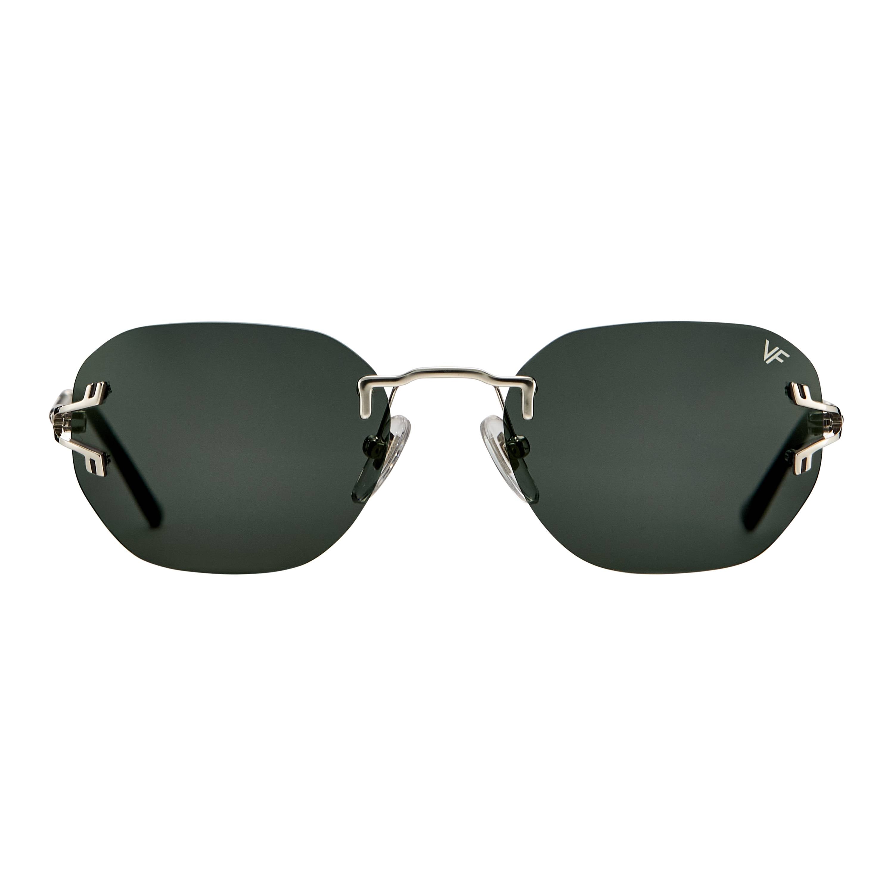 These rimless, rectangular drill mounts are designed to fit many face shapes and sizes. The white gold VF signature on the temples of the sunglasses attribute extra flare. With double thick reinforced lenses, Vintage Frames takes these sunglasses beyond function and straight to the iconic eyewear category.
