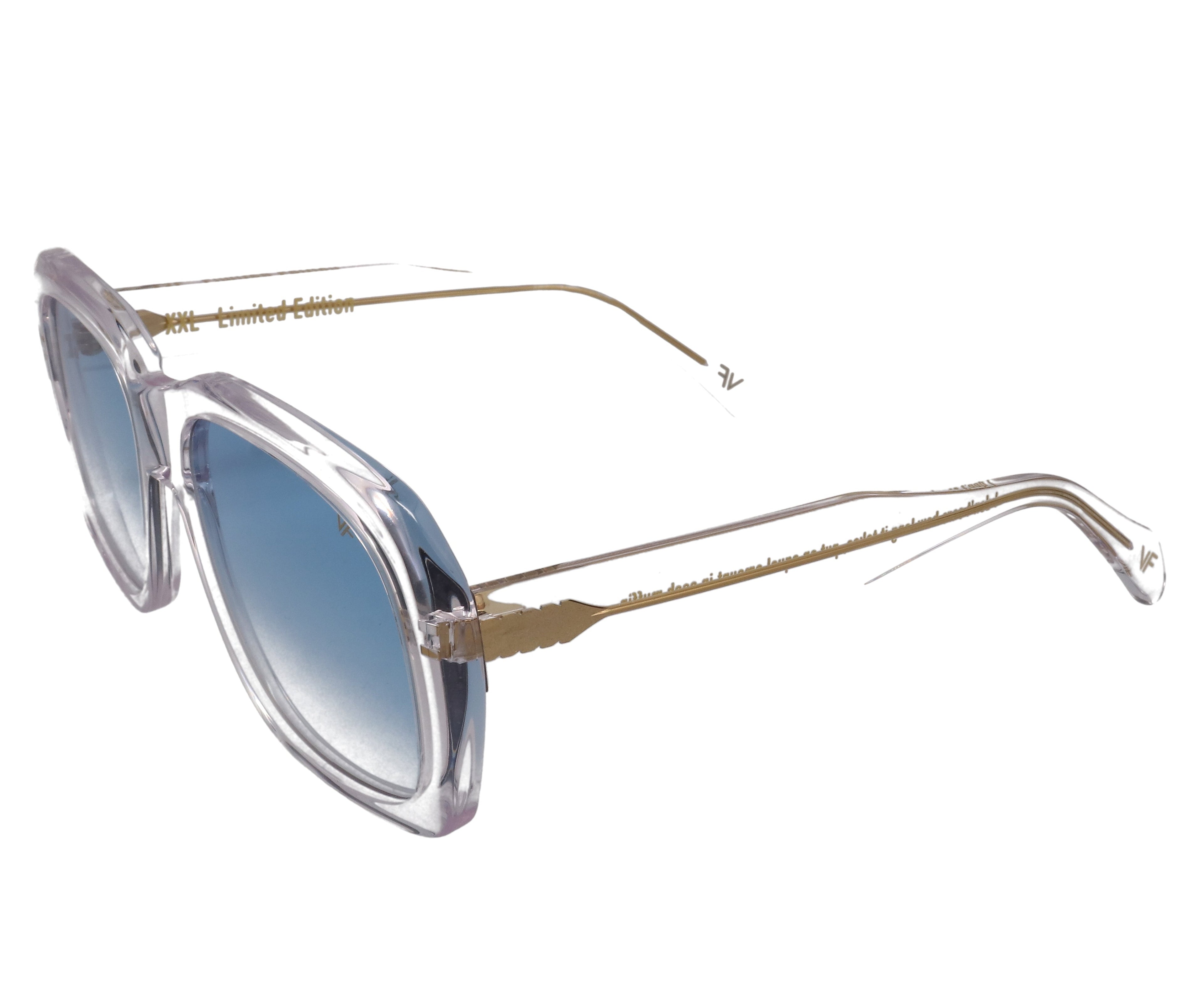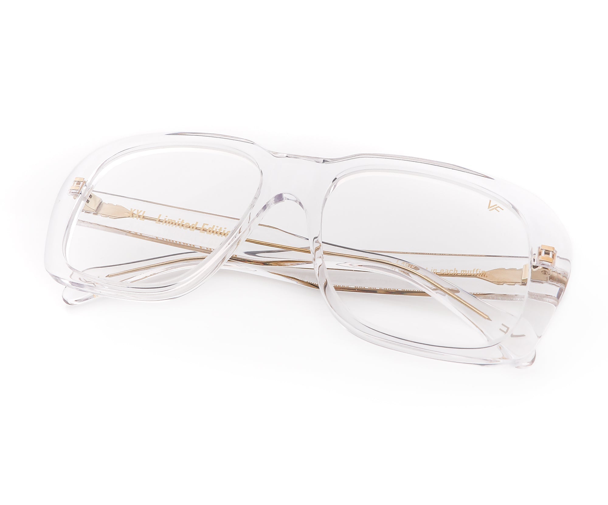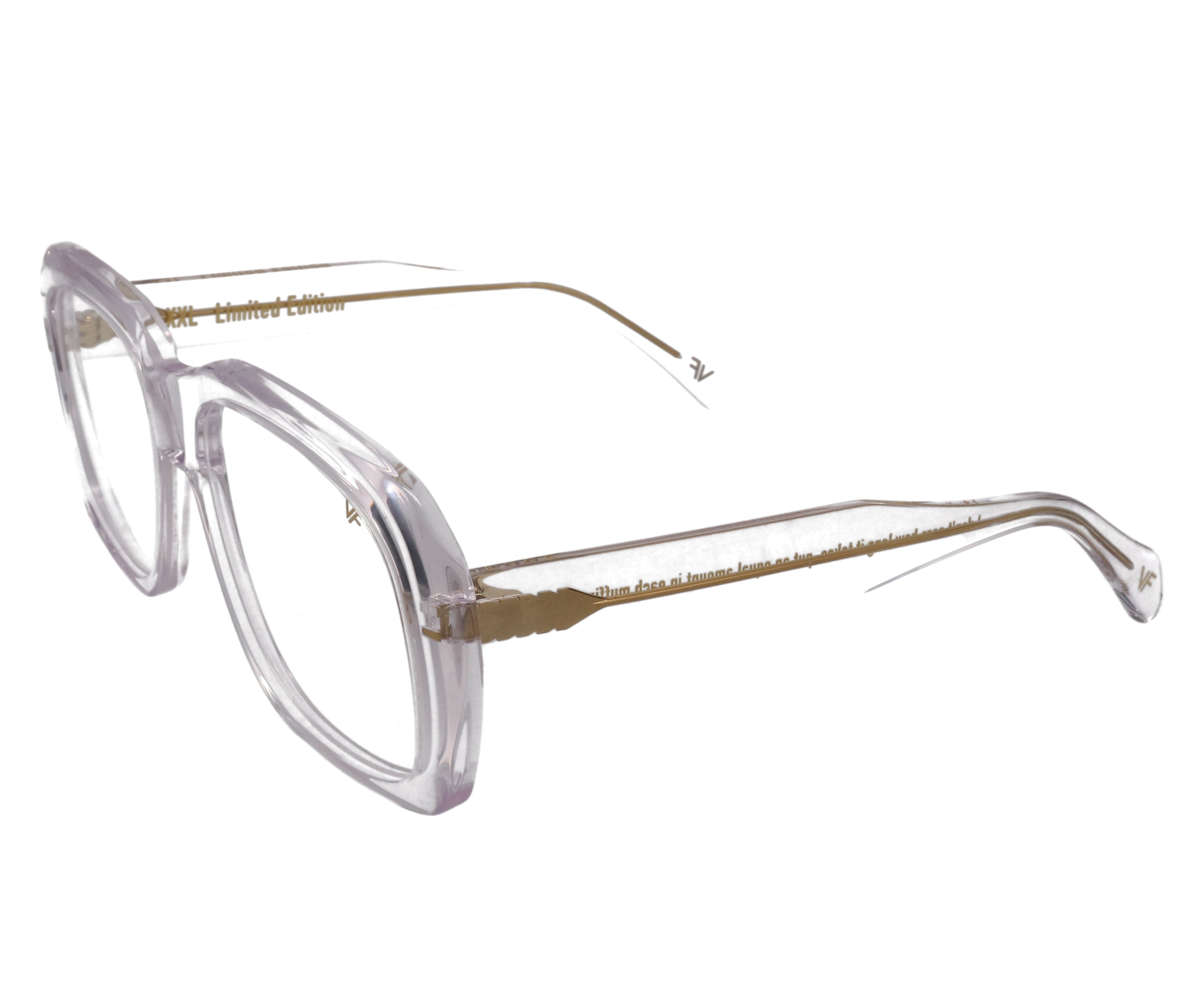 One of the top five most iconic frames ever made, we proudly present to you the VF XXL. The silhouette had become famous from it’s goliath presence of movies like Casino, Ocean’s Eleven, Run Dmc and even in the Blinding Lights After Hours saga. When you put on an XXL you feel the power behind the lens. The clear version has been paired with our Vintage Frames custom hand dipped pastel blue VF lenses.